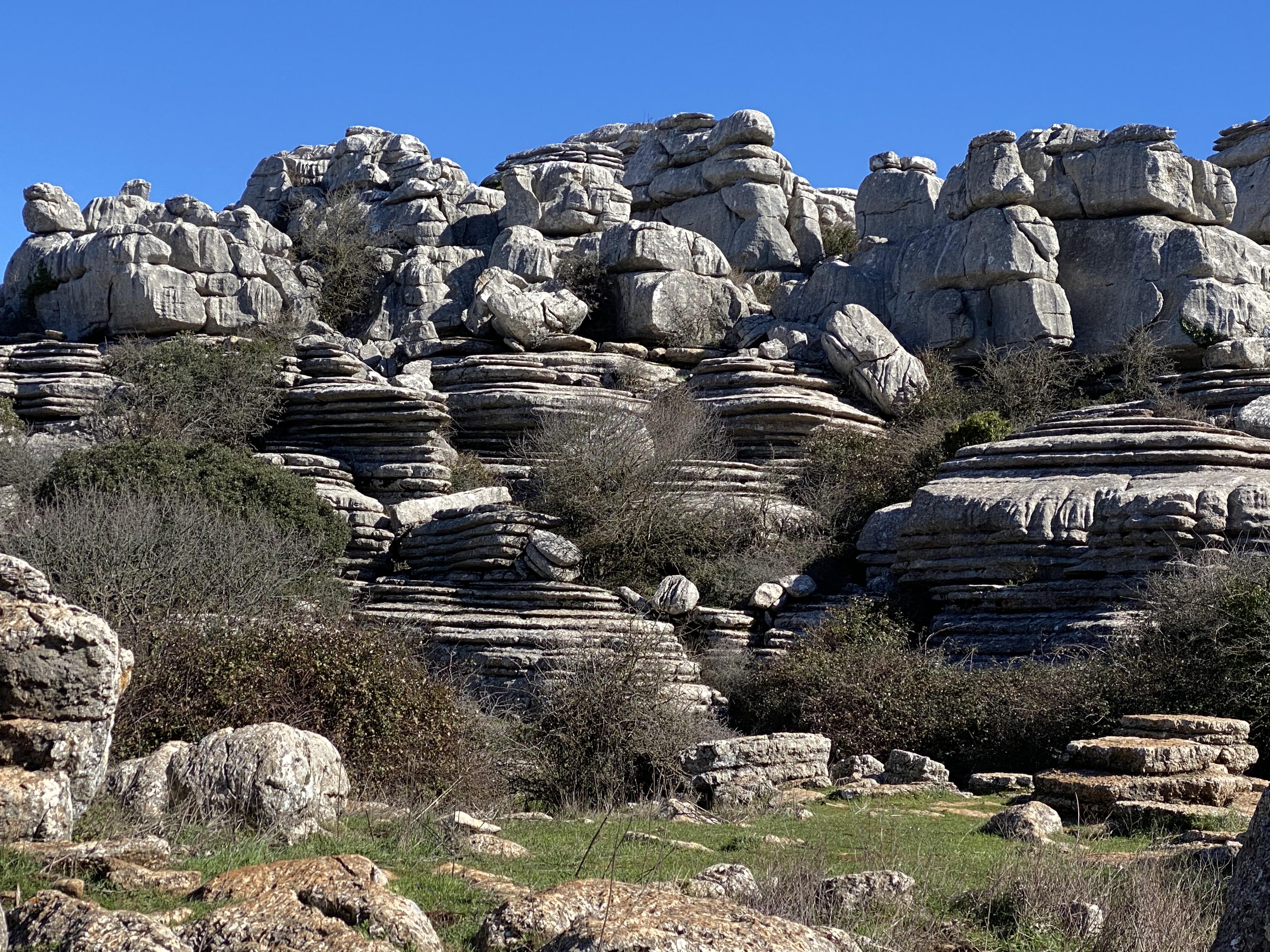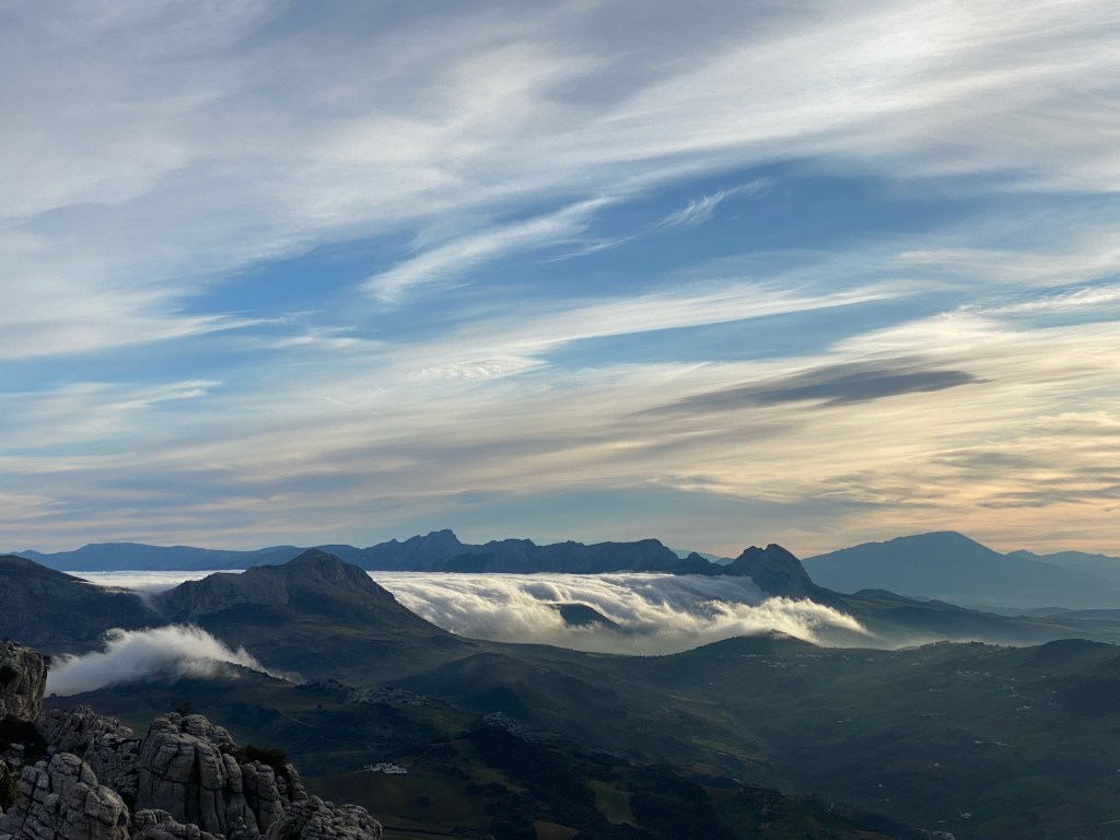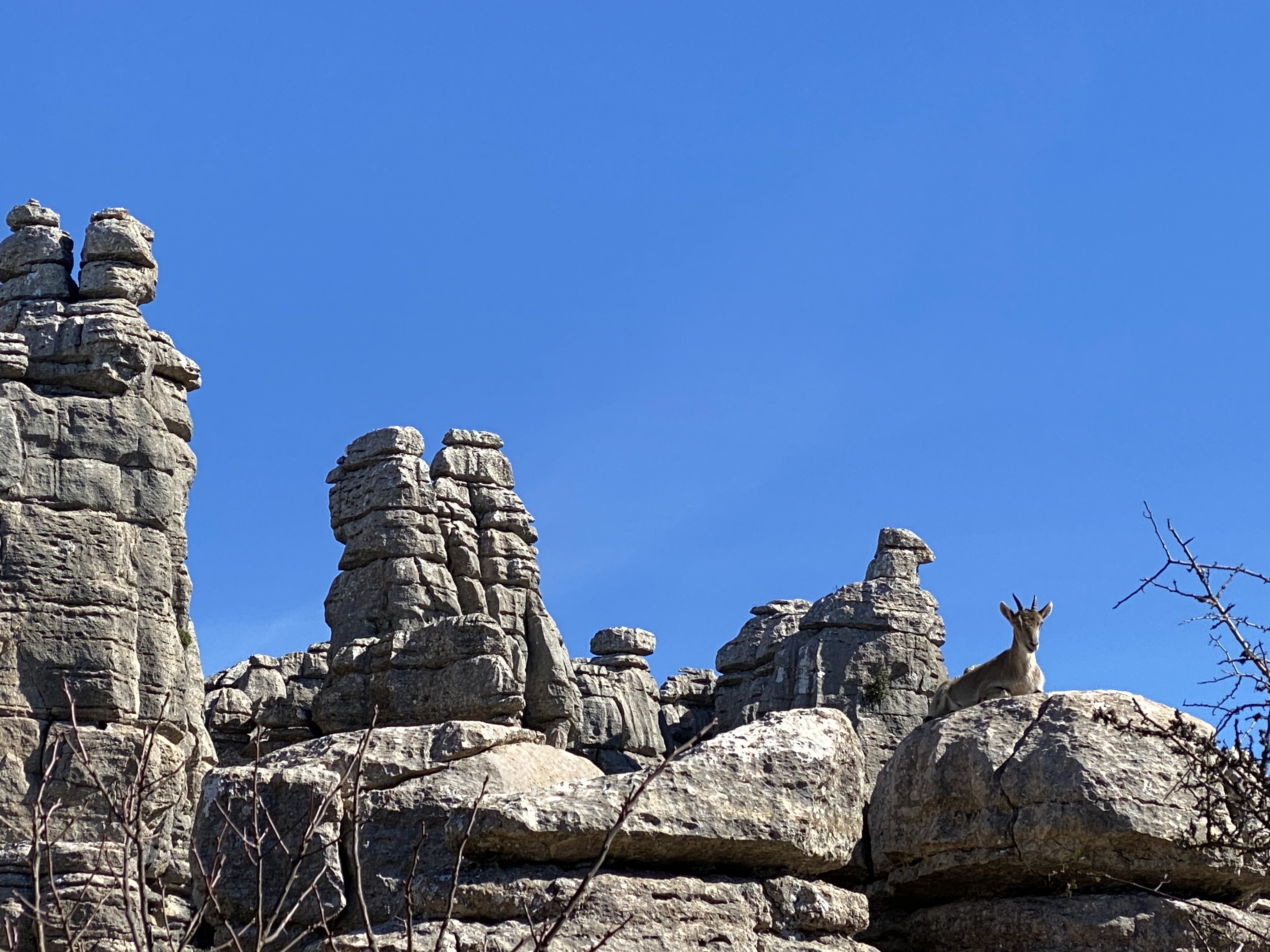 . Also the nature reserve of Torcal de Antequera with its dramatic limestone rock formations. It’s easy to describe it as ‘other worldly’ but it was, towers of weathered stone and formations that looked like stacks of American pancakes. We wild camped up there two nights as there’s some great hiking. Both of us now have knees that feel like we knelt at every alter in town as there was so much boulder climbing. Good fun though as we were metres away from Ibex at times, who were a tad more agile over the rocks than us.