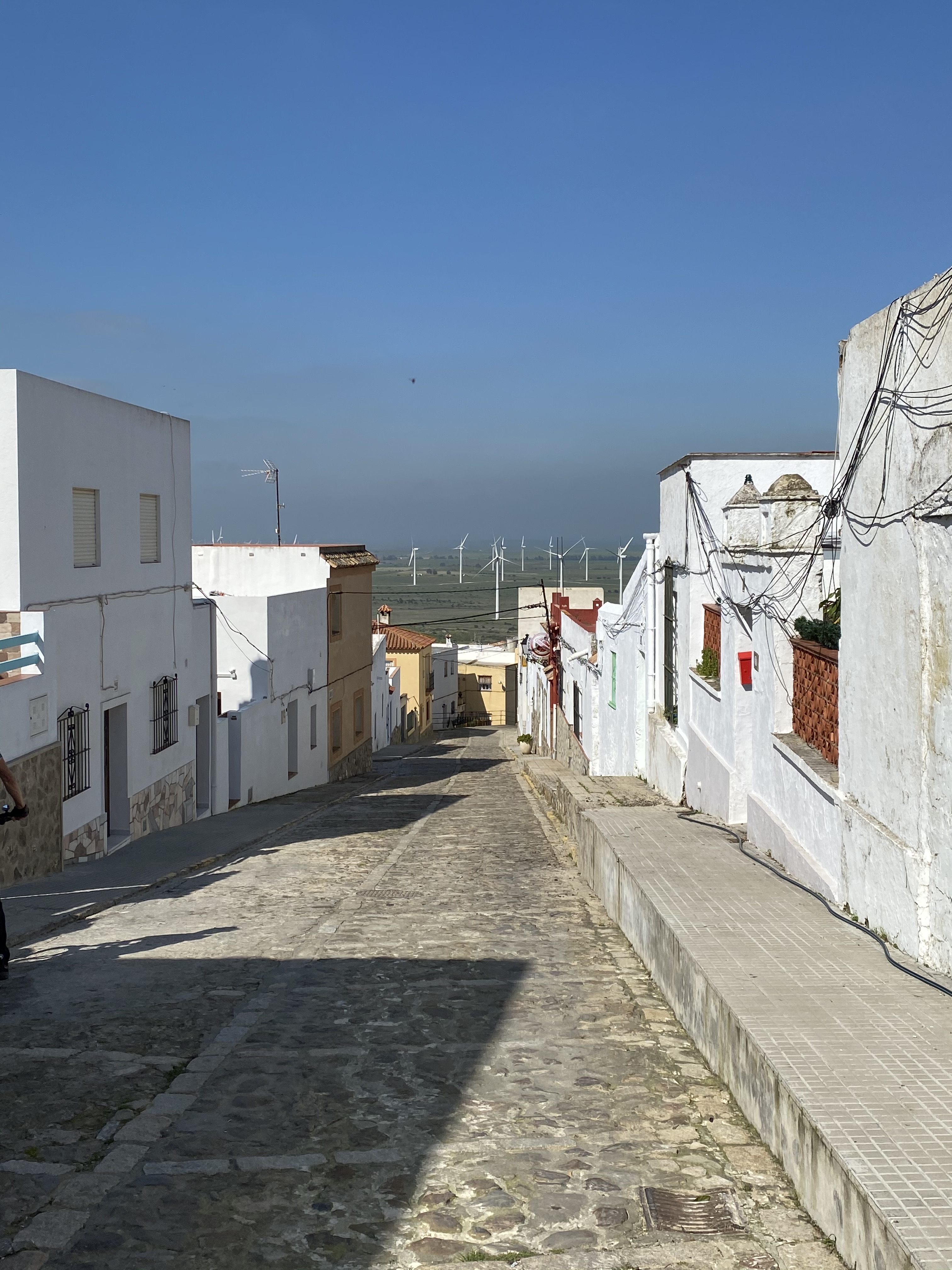 Facinas is very much a working locals kind of town but very pretty nonetheless. It reminded us a bit of Trinidad in Cuba but slightly less shabby and Facinas has road names unlike most streets in Cuba generally (maps weren’t updated after the revolution) Facinas’s streets were similarly all cobble stone, high curb with tiny colourful houses. Several tiny bars are scattered around and there’s an oversized for the town, sports complex (possibly Olympic money funded) The church at the top of the town was understated and charming.