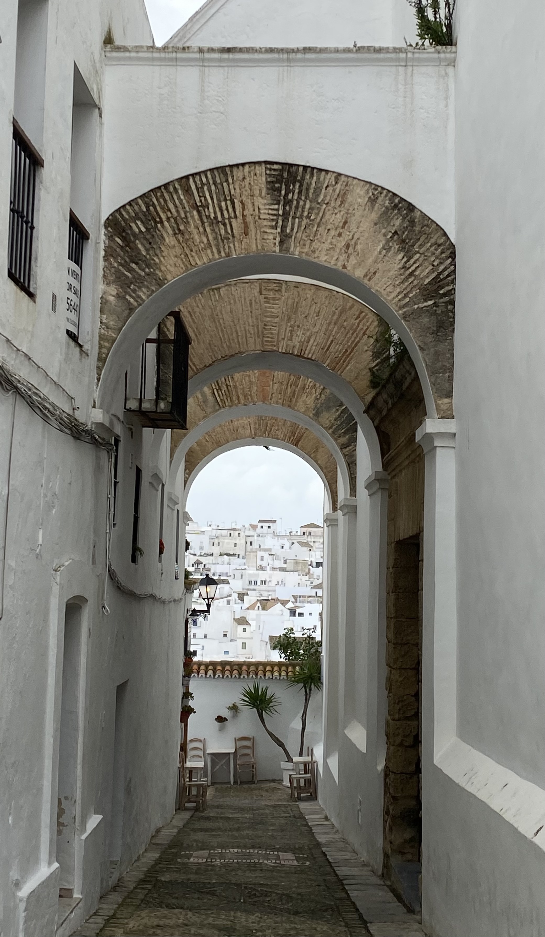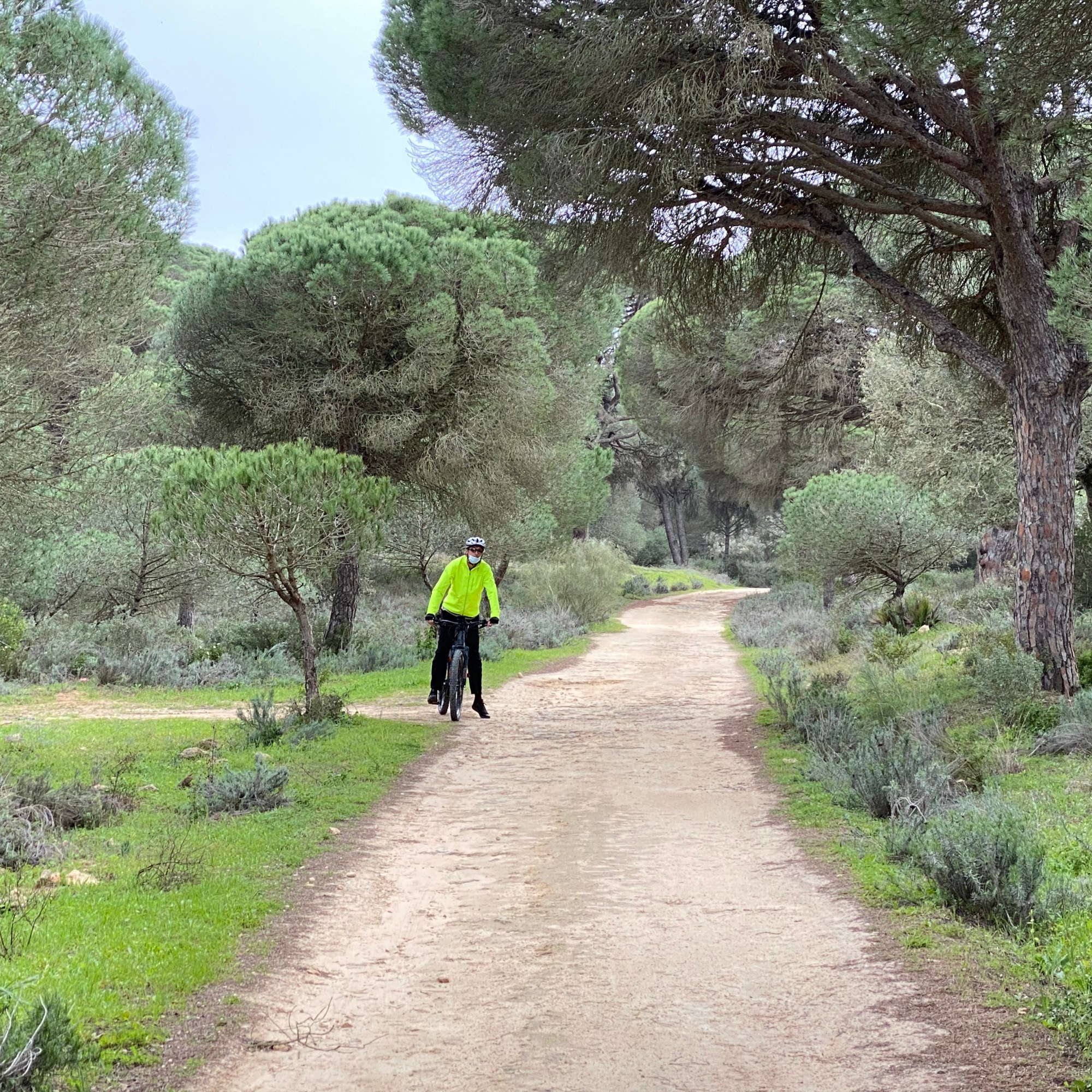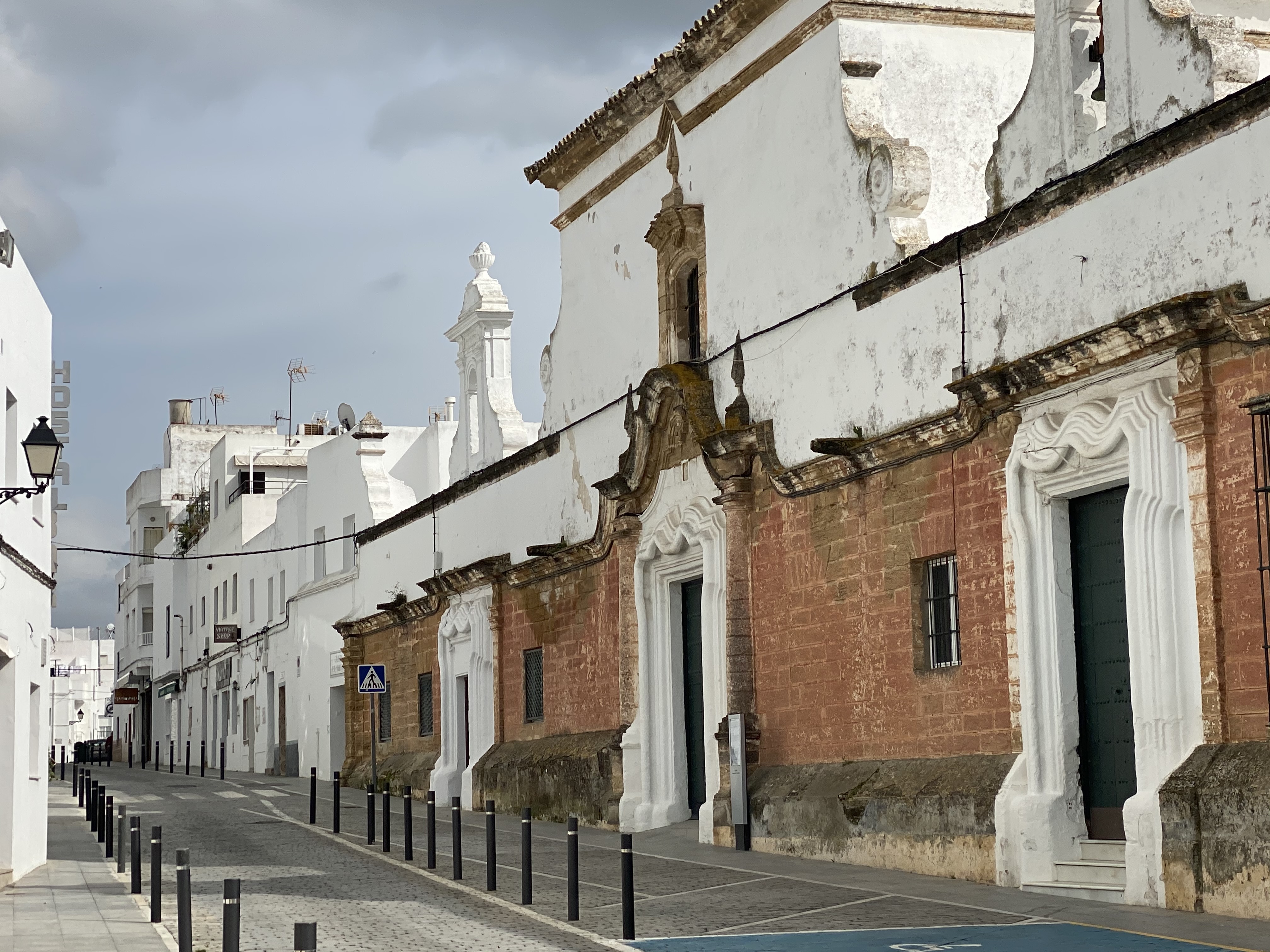 Not sure it was there in Nelson’s day but we found a shack that did great street food, surprisingly a first on this trip. A veggie breakfast later and we were ready for an epic, or in my case, cycling proficiency stage 2. A steep climb took us to a National Park inland from Los Canos de Meca. Riding through the trees was fun until we got to a section called “Pista de la Cuesta de los Arrumbales” which became somewhat sandy, so it wasn’t mud this time that we were covered in. The translation by the way is “Track Slope of the Wrinkles” according to my app, not sure about wrinkles, more like cellulite! Anyway, we pushed on through and made it up a gorgeous town called Vejer de la Frontera. A hilltop town, high up with intact Castle Walls, white Moorish style buildings, several ancient churches and convents and lots of cafes! Looking at the architecture, you can see the stages of styles and cultural influences. It has panoramic views of agriculture and various groves. It also still has an annual “running of the bulls” (glad we didn’t see that!) Had very typical Andalucian tiles everywhere including a super fountain. This place is no doubt on a tourist route in season, and it should be, its lovely and vibrant.