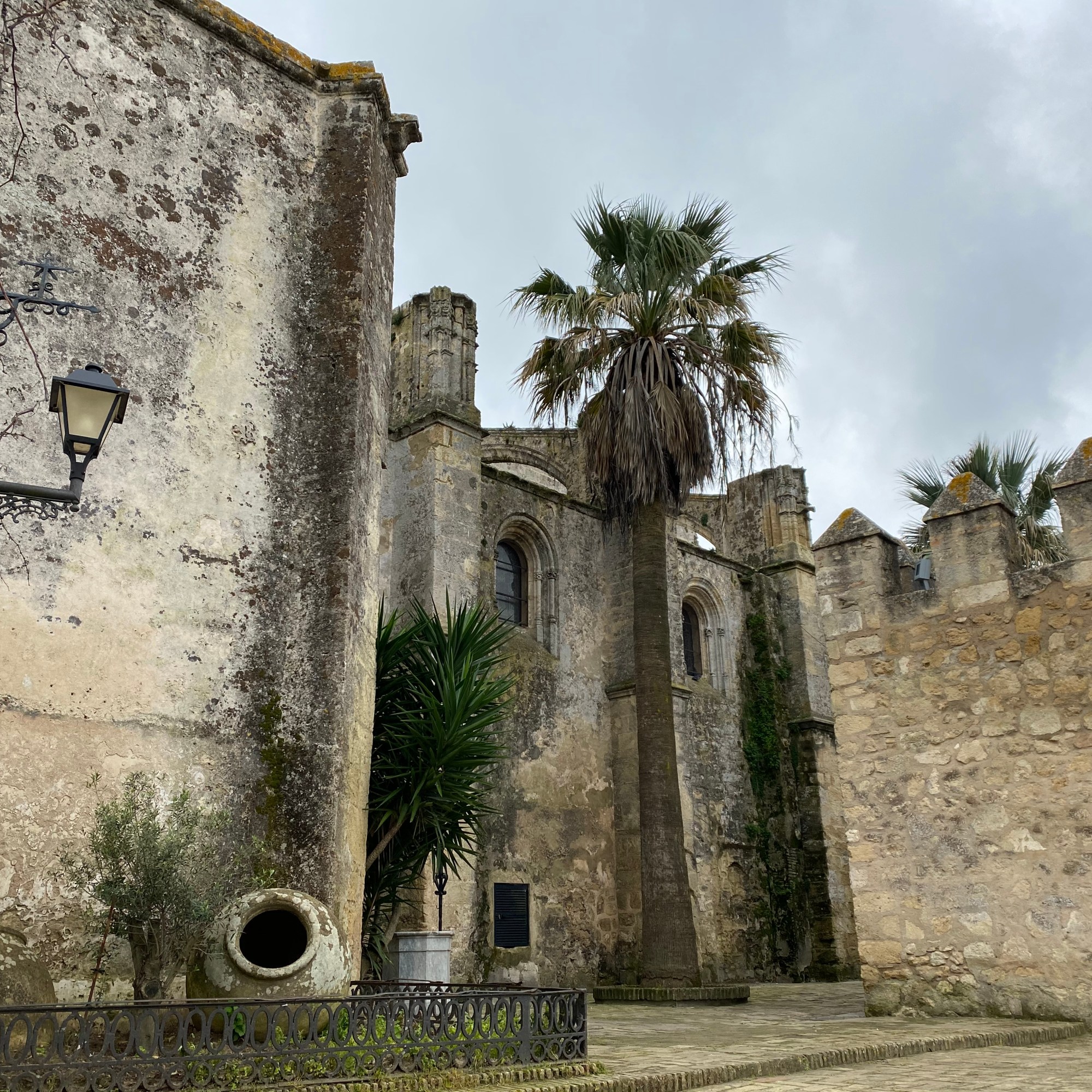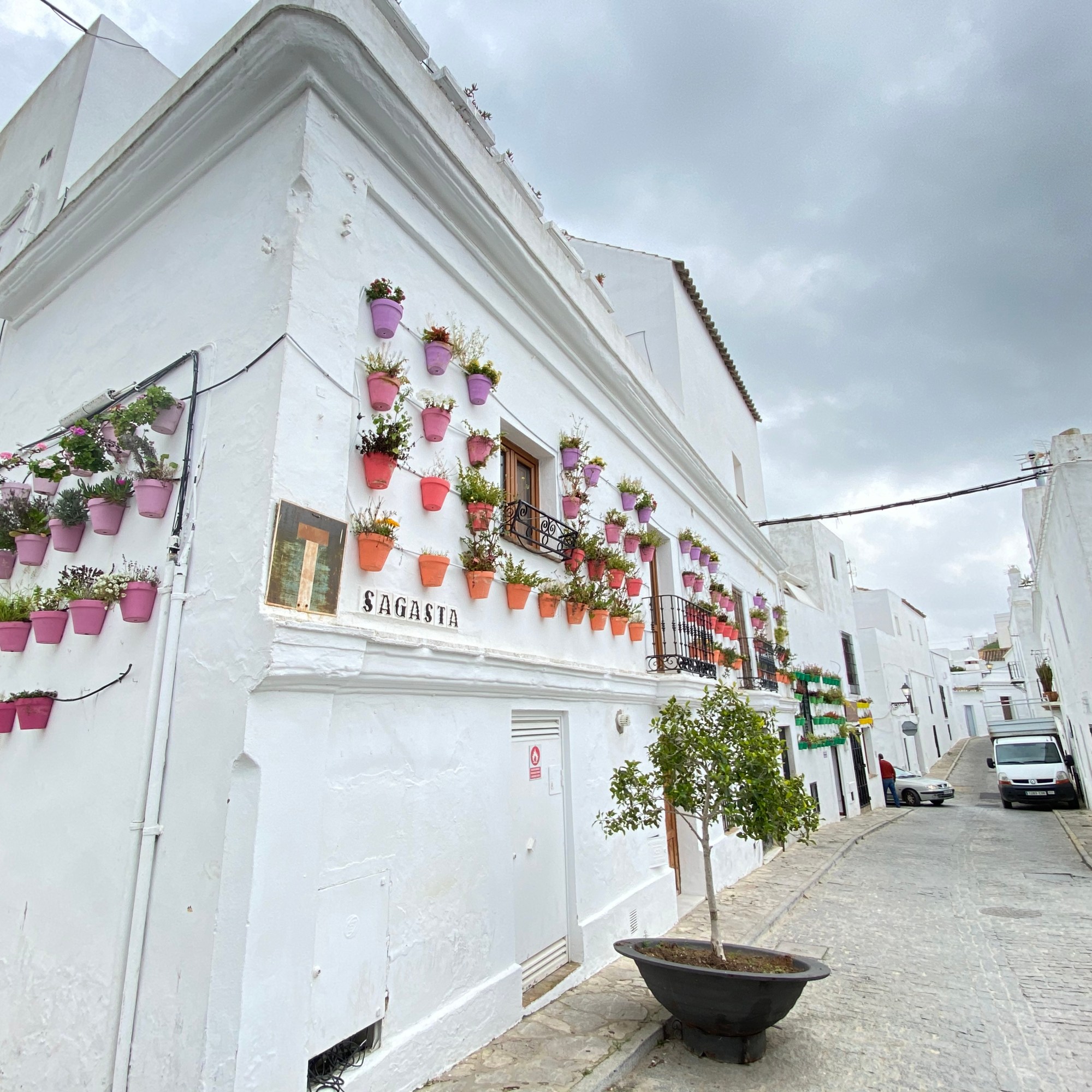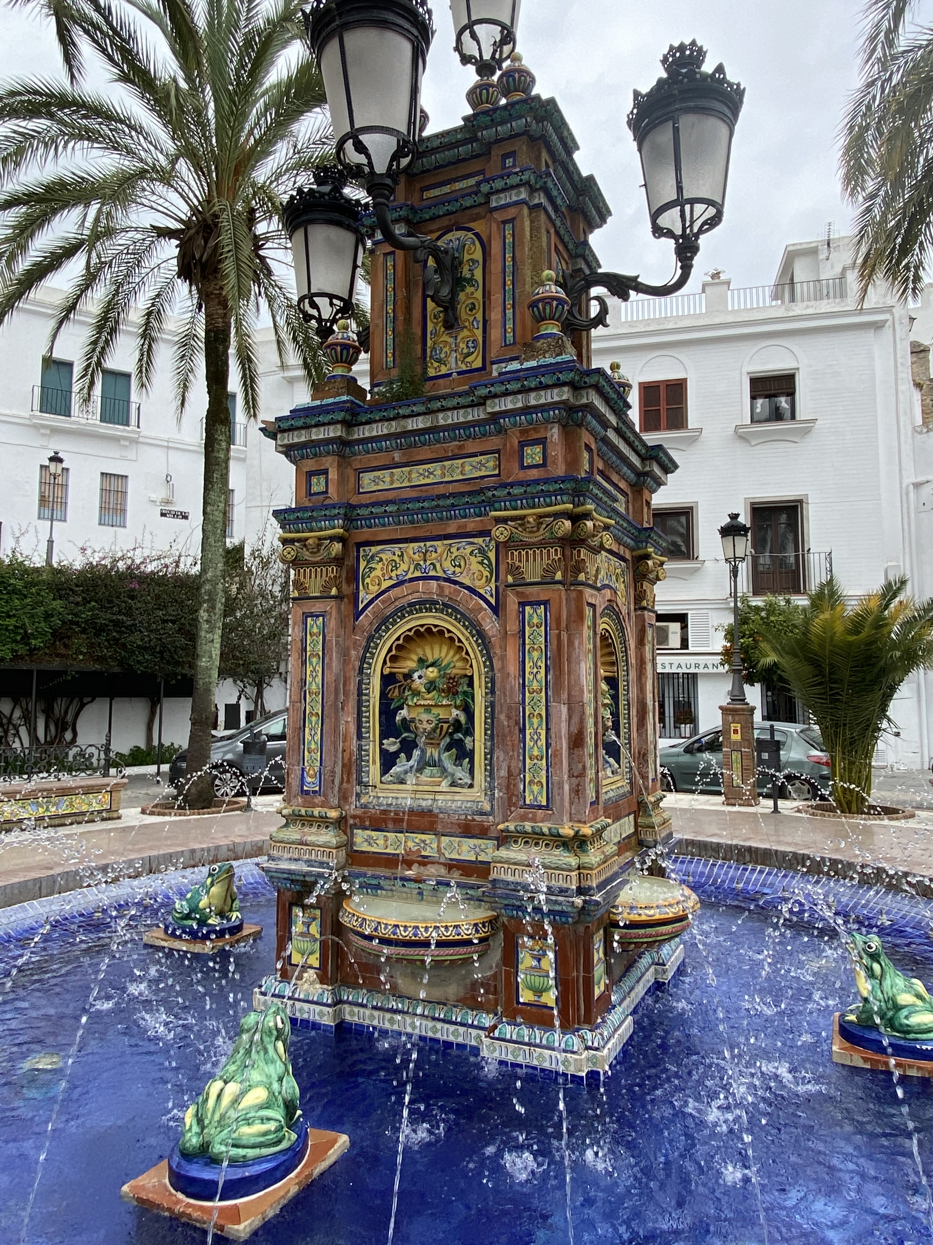 Not sure it was there in Nelson’s day but we found a shack that did great street food, surprisingly a first on this trip. A veggie breakfast later and we were ready for an epic, or in my case, cycling proficiency stage 2. A steep climb took us to a National Park inland from Los Canos de Meca. Riding through the trees was fun until we got to a section called “Pista de la Cuesta de los Arrumbales” which became somewhat sandy, so it wasn’t mud this time that we were covered in. The translation by the way is “Track Slope of the Wrinkles” according to my app, not sure about wrinkles, more like cellulite! Anyway, we pushed on through and made it up a gorgeous town called Vejer de la Frontera. A hilltop town, high up with intact Castle Walls, white Moorish style buildings, several ancient churches and convents and lots of cafes! Looking at the architecture, you can see the stages of styles and cultural influences. It has panoramic views of agriculture and various groves. It also still has an annual “running of the bulls” (glad we didn’t see that!) Had very typical Andalucian tiles everywhere including a super fountain. This place is no doubt on a tourist route in season, and it should be, its lovely and vibrant.