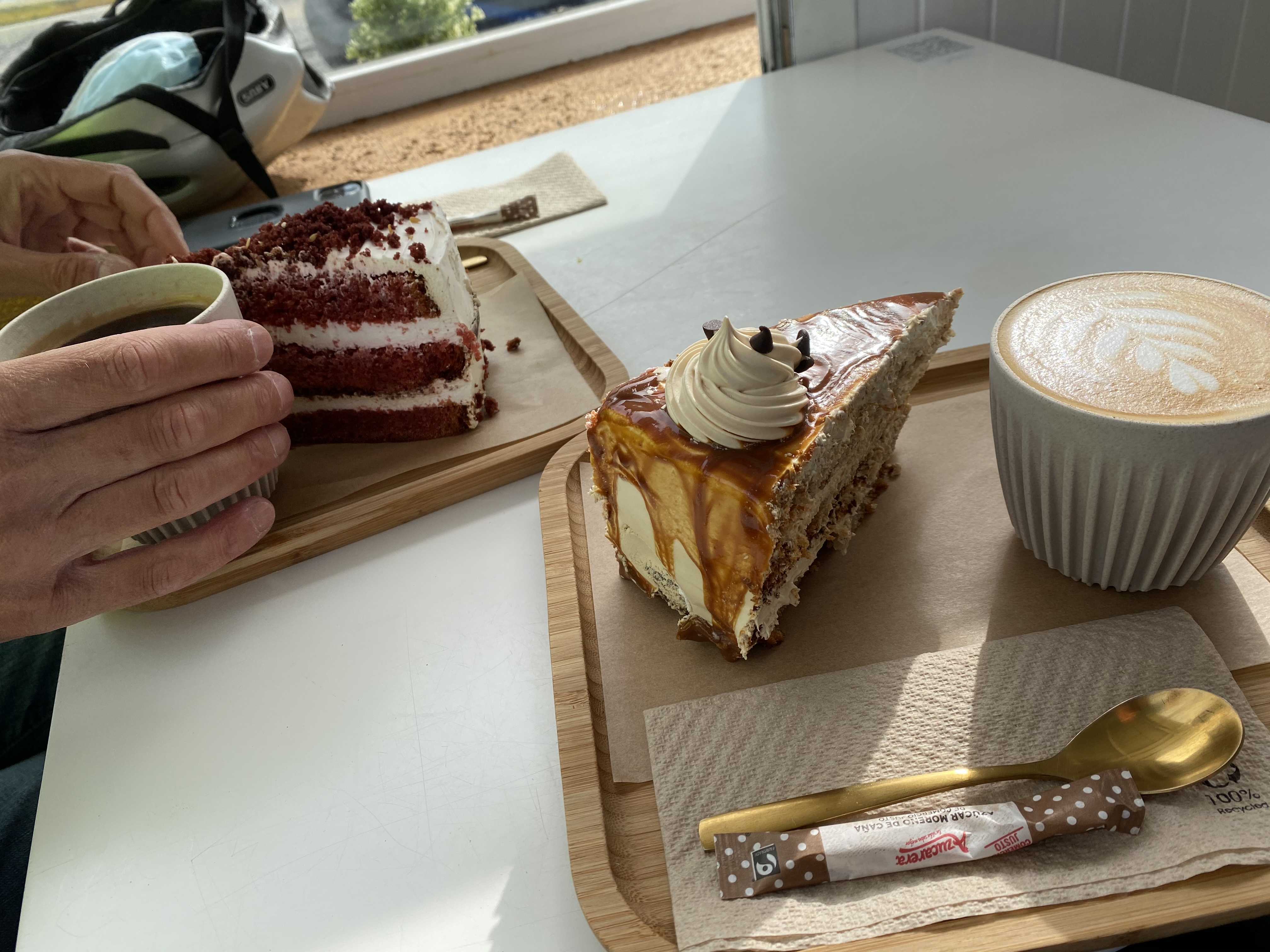 Another ride out, this time further West was to a workaday town called Conil but it was a super ride (and flat!) and it had a lovely old town. There’s nothing there particularly of note, the architecture has a fair amount of Moorish influence though, but given it was the weekend, there was a locals buzz at the old town bars, we joined in, naturally! We rode back along the beach road rather than €3.7m cycle track funded by the EU (€0.25m/km) All along the route were locals out for lunch and drinks at the plethora of bars and restaurants behind the sand at Playa del Palmar, combined with lots of kites and boards. Its a stretch of sand that no doubt is jam packed in season, with everything there to cater for it. Funnily enough we found cake… When we finally arrived back we were just in line for an early supper at Los Pinos, the local, Jigsaw had a treat as I took some tuna home for her. She posted on Insta after eating a big chunk in about 10 seconds. Anyhow, time to move on from waking up to birdsong in the tree canopy and explore Cadiz. I won’t be going to the local dentist anytime soon though…