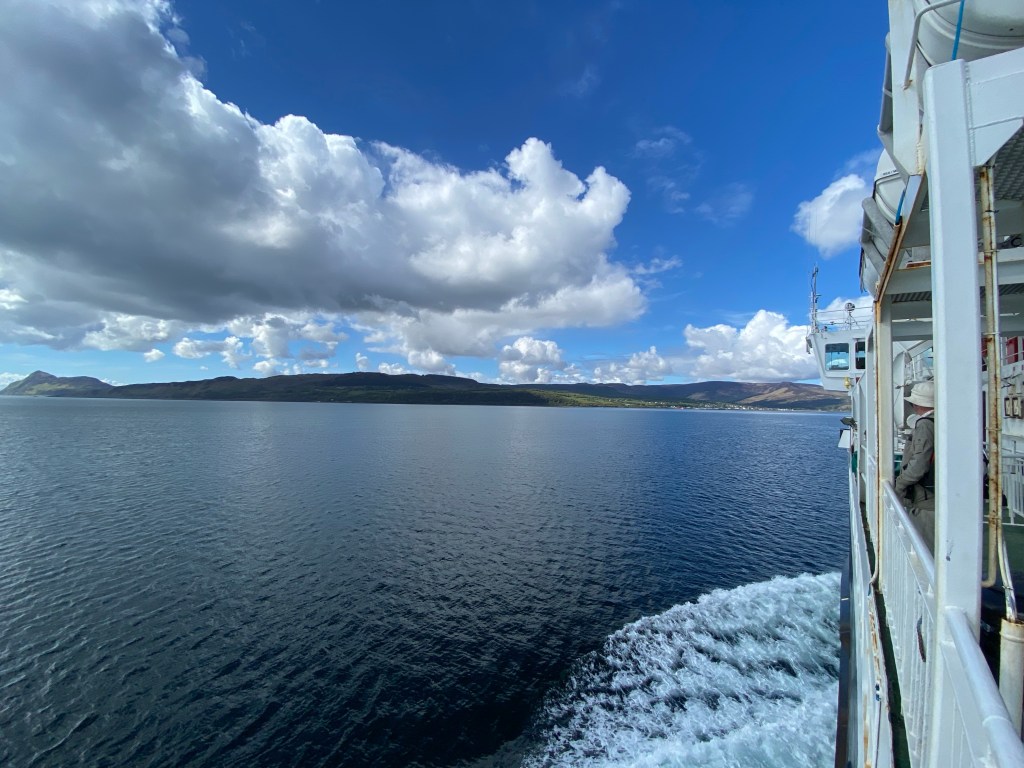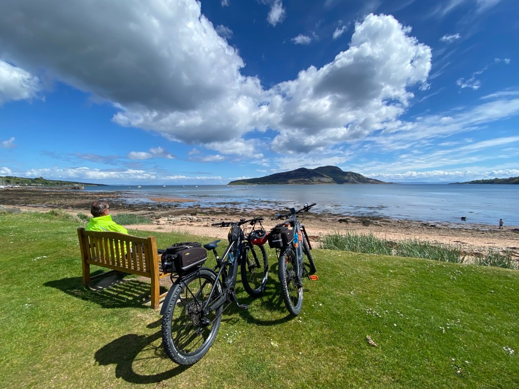 An early start for the ferry across to Arran and believe it or not, we were sitting on deck in glorious sunshine! We were first onboard, probably due to size and the furry one settled in for 50 mins of car alarms going off on the vehicle deck. Poor thing I hear you say! We had a short drive to our first camping stop at Lamlash so got set up and the bikes out. It’s been a while… I don’t know who coined the phrase “muscle memory” but it’s a lie, I discovered pretty quickly that my Victoria Pendleton thighs seem to have amnesia!