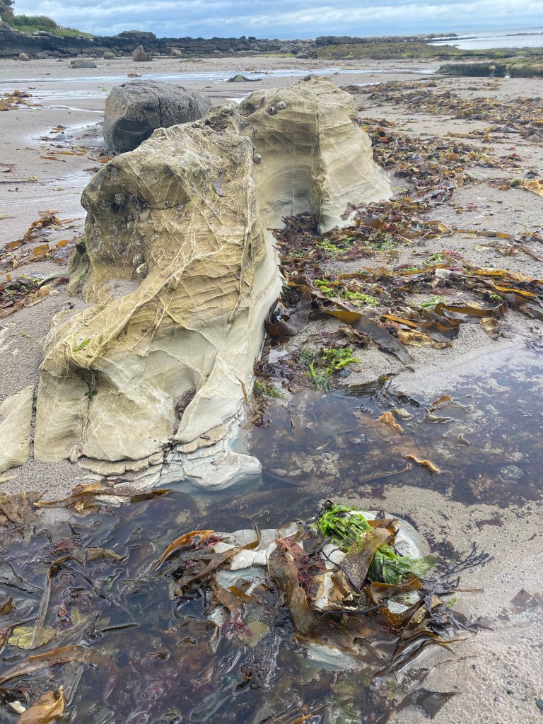 Unusually for Scotland, the weather turned so we explored in the van, up to Lochranza Distillery for some “Arran Gold” for Helen and I. The route up the North East coastline was different to the more pretty South. The northern part of Arran is like the Northern part of Scotland, more rugged, steeper peaks and wilder. The rain brings the colours out in their glory, the rustic bracken, vivid greens shaping the remote landscape. The following day, Jigsaw took Nick for another walk on the beach briefly before we headed out ourselves. The storms had washed up an incredible array of seaweeds that looked like ribbons of multicoloured pasta. Lots of birds feeding on the shoreline, Gannets, Oystercatchers and several geese to name a few. Afterwards we rode out again to Whiting Bay and took an impromptu decision to explore The Giants Graves. Big mistake! We had been heading up a reasonably challenging path only to discover that the Giants had built their own steps too which were not rideable so we had to push the bikes up, e-bikes are heavy! Being honest, I’m not sure the Graves were worth it but the ride back down was a blast through the pine forests! 18km that felt like 100!