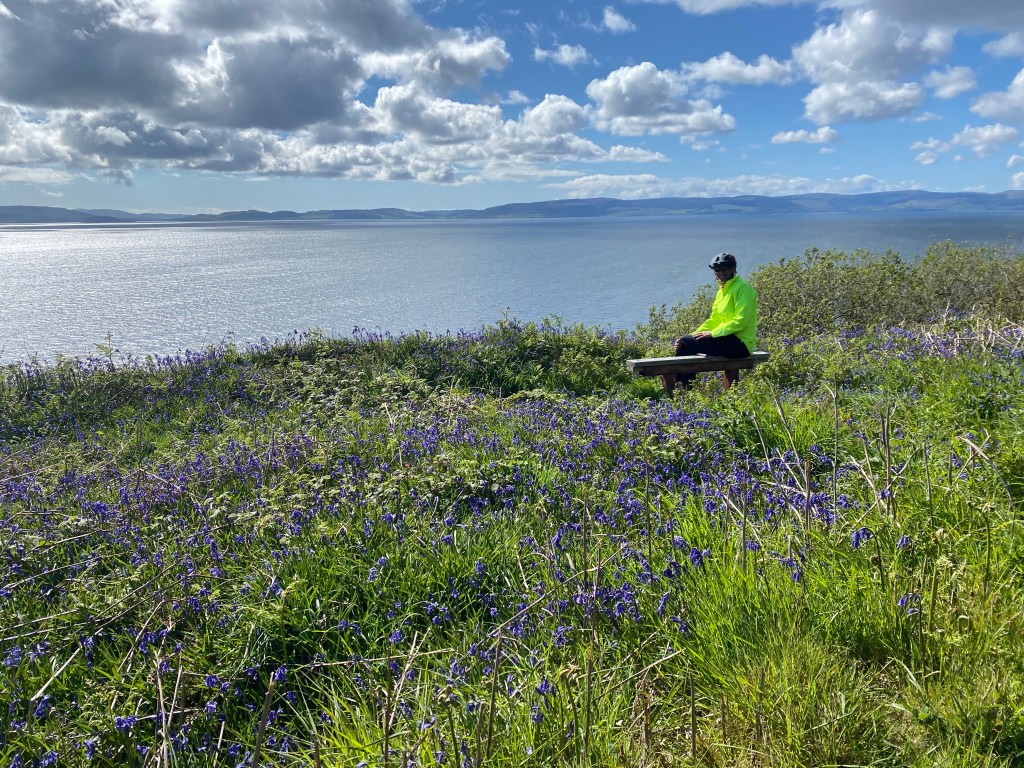 We headed off from Lamlash, after a quick lunch by the water, north following the road and hills through Brodick to eventually turn off onto a track towards Glen Rosa and the magnificent Goat Fell in the distance. The sounds of a cuckoo and the rippling water and occasional waterfalls (not bike falls this time!) were part of a majestic ride where the expansive colour mix of trees, bracken and wild flowers were sublime. 31km later, back at the van, we longed for the hot showers and even though we’d been a tad ambitious, we’d done it and it was so worth it!