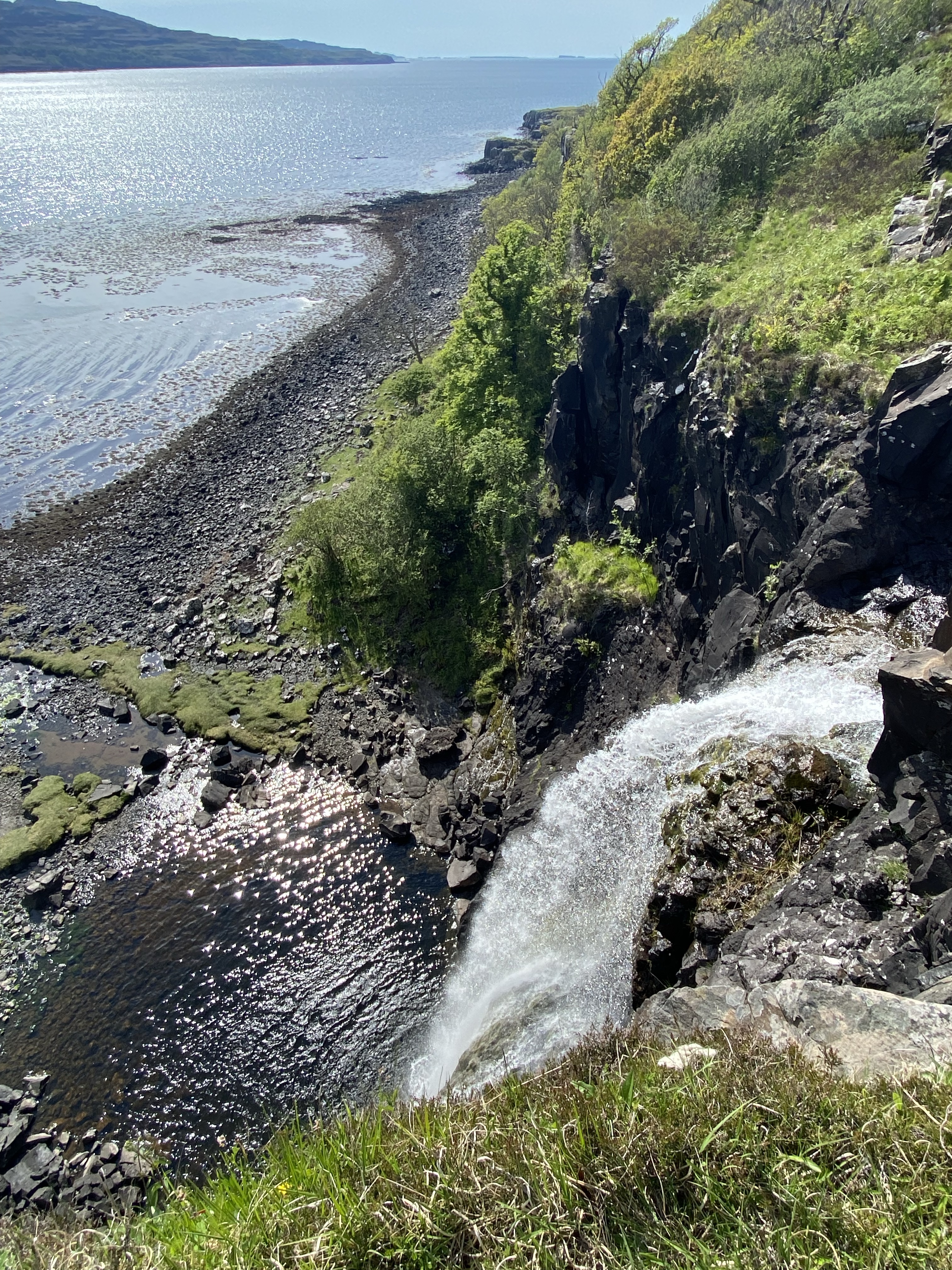 Everywhere on a bike involves hills (Victoria has her mind back in the game!) A very long ride took us out through a charming village called Dervaig, where there’s an unusual church with a rounded, minaret shaped tower, over into the inner heart of the northern part of the island. Stunning vistas over forests, farmland and general nothingness, it was easy to just gaze. Our only company were cuckoo’s, that we eventually saw. We stumbled upon The Fank, an unusually placed sculpture in the middle of nowhere, from where we also saw a buzzard being divebombed over Loch Frisa. We ended up at Croig (NNW of the island) for our lunch baps waterside, watching lapwings attack a jackdaw, before heading back on a route that can be described as tortuous for the legs but mesmeric for the eyes. It was basically a direct cross of the island. We deserved our chippy tea when we arrived home!