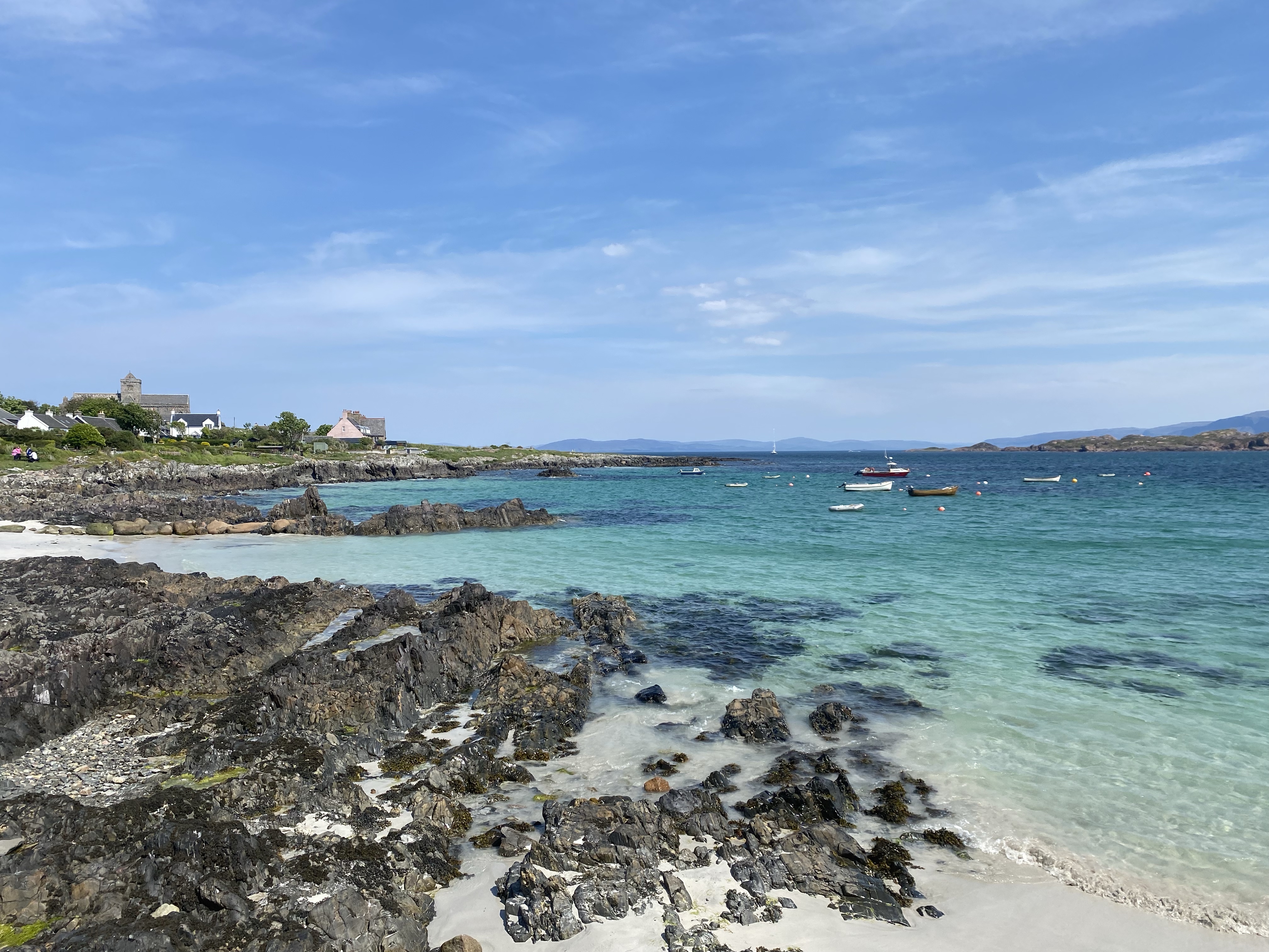 Another highlight was a bus trip, well not any old bus trip, an M&S bus trip…. along the Ross of Mull to the tiny island of Iona (the last bit involved foot passenger ferry obvs!) It was bus trip that Cliff Richard would have been proud of, following the northern edges of the peninsula along Loch Scridain, all the way to the tip. Our top deck front row seats gave us the splendours and changes of scenery as we went, the bluebells among the bracken, seals on the shore line and foreboding mountains above it all. Iona itself was a tiny gem, famous for its Abbey. Iona isn’t dramatic, quite desolate in fact and its only a half hour walk to the stunning northern beach but it feels magical in an ethereal way, the stuff of Celtic tales.