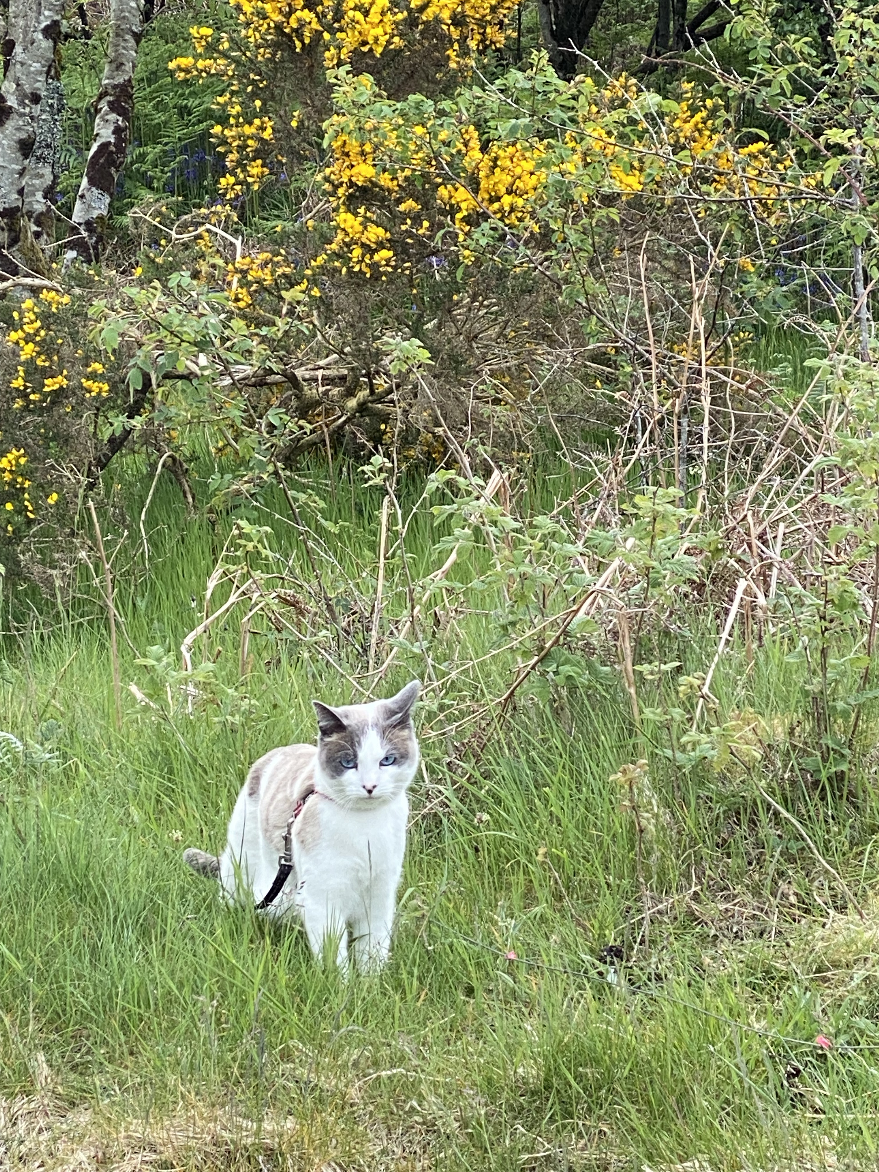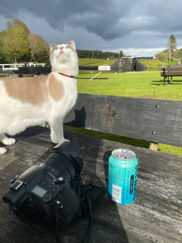 What about Jigsaw, you ask?! She’s been quite active, she’s taken us for a few walks onto beaches and grasslands, found herself some great spots for bird watching and mousing and thankfully hasn’t caught anything. She’s ever so popular, so many people interact with her but she doesn’t always behave herself, that’s cat teenagers for you! As you see below, she even wanted to leave home! I heard one chap at a site saying “hello gorgeous” but it wasn’t me he was talking to, it was Jigsaw…. deflated, I realised that female cats haven’t taken to social media to say they are offended by male compliments yet! Anyway, get this, Motorhome Monthly Magazine have asked us to write an article about full timing with a cat…. there’s time yet folks, fame beckons (well for the furry one at least!)