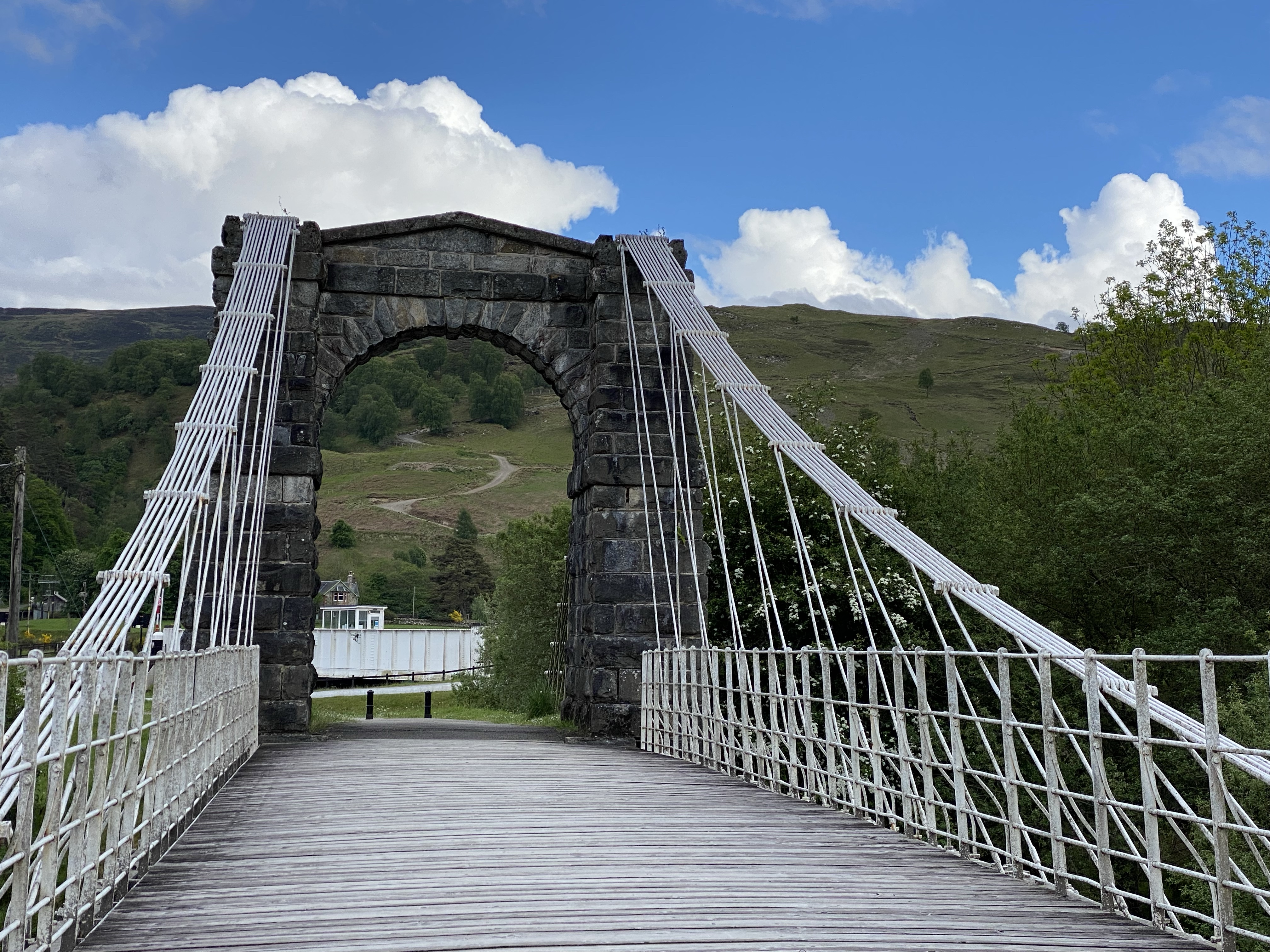 We meandered our way along the spectacular Great Glen. Given the weather it was all the more dramatic and moody, the mountains either side coming closer one minute then opening up into flat glaciated plains the next. Mainly agriculture and farming further along, it is a route that calms the soul for its splendour. We followed Loch Lochy, arriving at The Bridge of Oich. Yes, someone once upon a time had some fun naming these, Loch Lochy and Loch Ness are connected by the River Oich! It’s a tad different to the Bridge of Sighs although we did, a really pretty spot to park up at with the river Oich on one side of us and the Caledonian Canal on the other. In all seriousness the Bridge of Oich was designed by an ex brewer from Bath! It’s still standing (!) and is a patented, taper design for stability (so the sign said!) Also, geeks that we are, the swing bridge over the canal in action was pretty cool too!