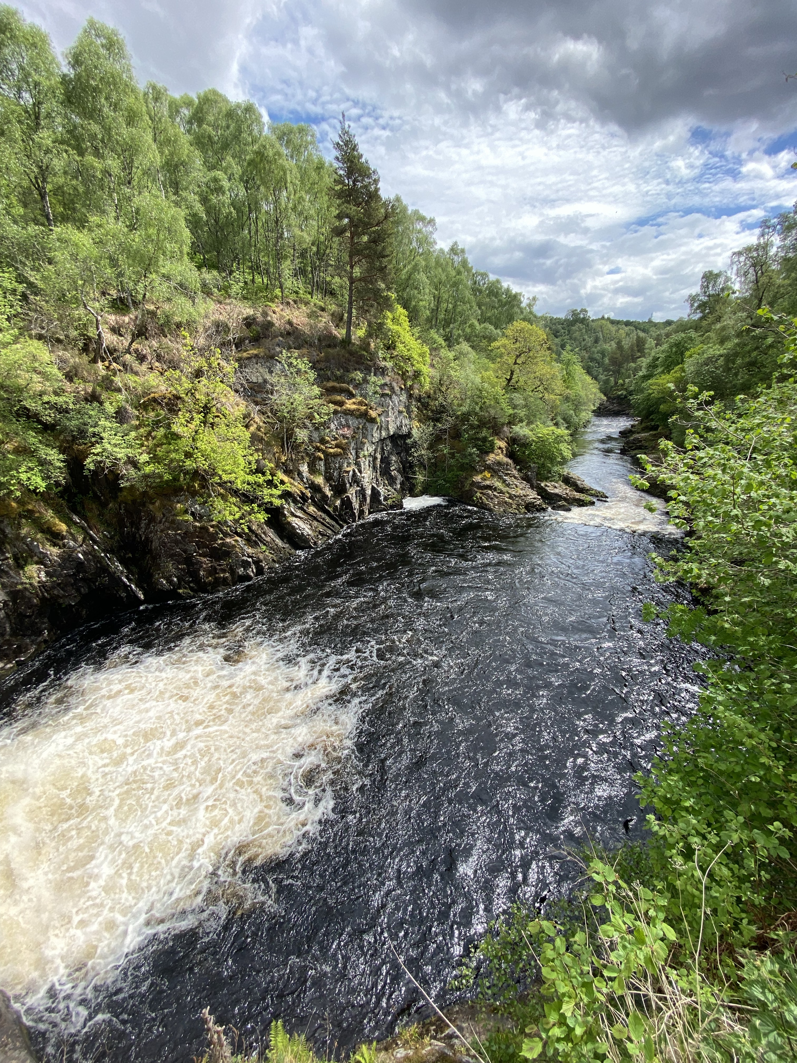 This area is well known for mountain biking and salmon, so we headed out for a ride in Balblair forest on the marked trails. We were not daft enough to go for the one called Rock Hard, a black run, but a more sedate one that wouldn’t have me end up in A&E. We were on our own in the forest and it was serenely quiet, just the whispers of fairies among the moss carpets and the usual cuckoo. I didn’t ever think I’d ever comment on the beauty of a tree stump but I did! Nearby are the Falls of Shin where Salmon leap up the waterfalls for the annual spawning. Yes, we were lucky, even though it’s very early season we did see leaps (video posted) it’s an addictive watch to be honest.