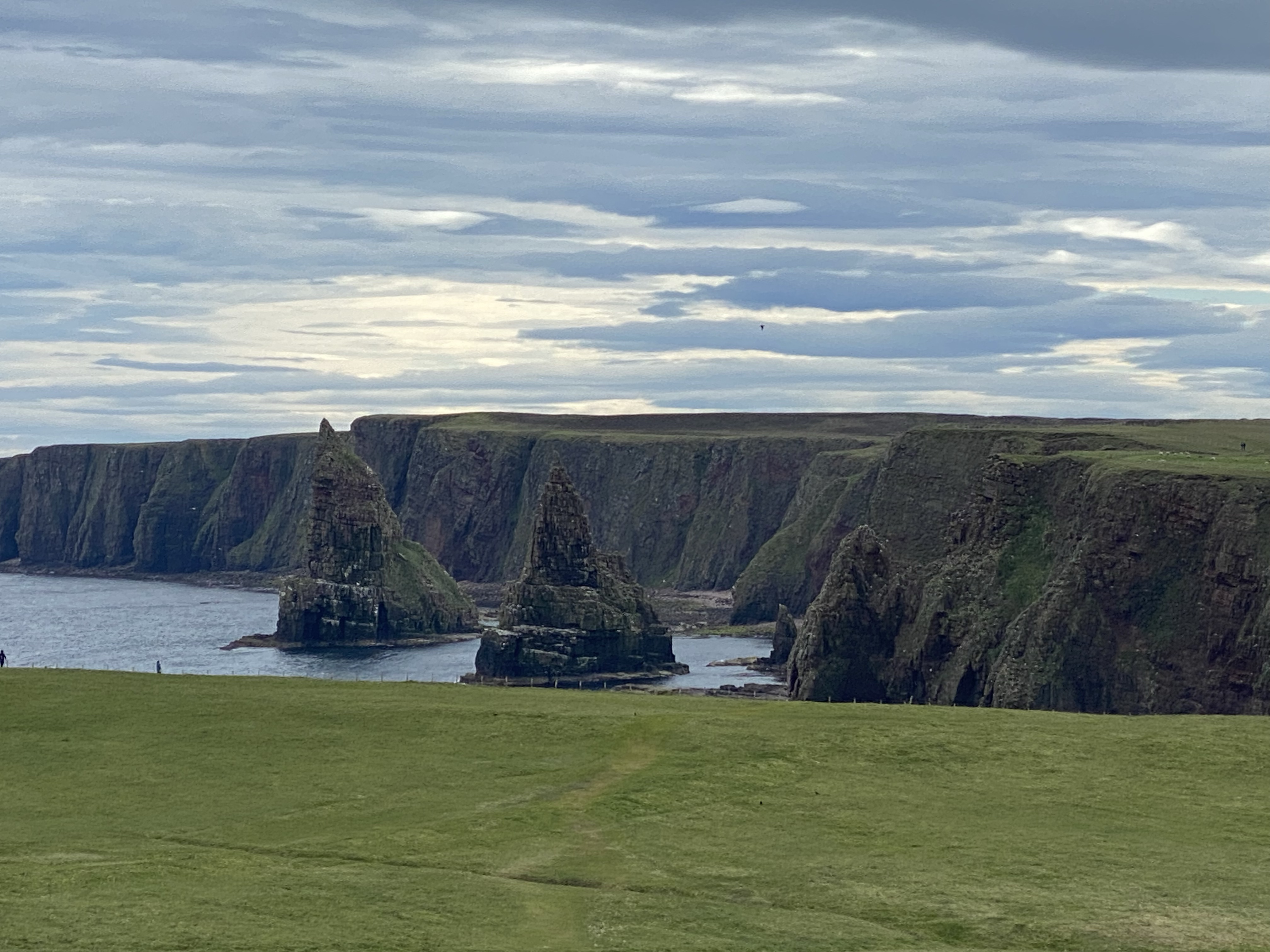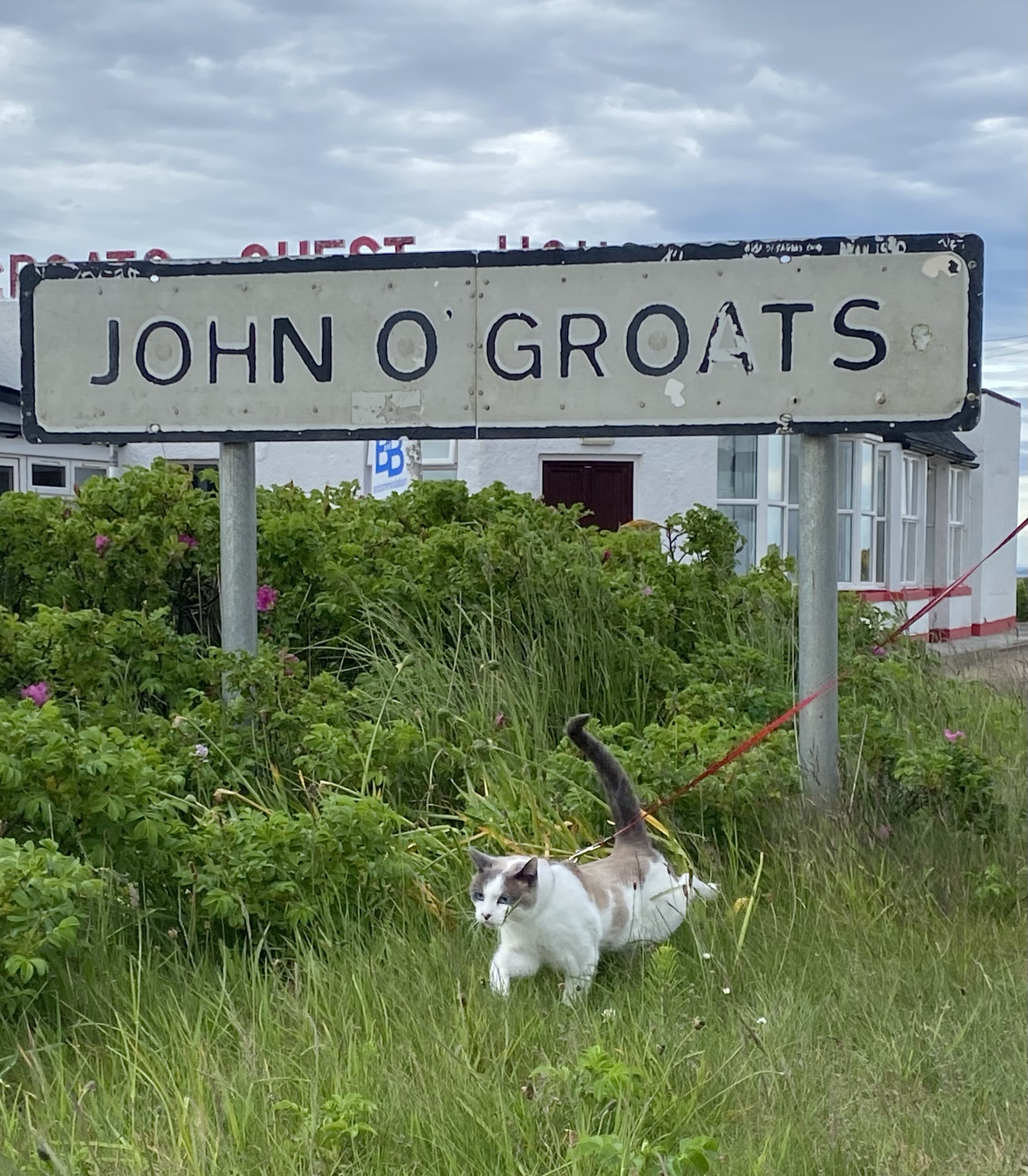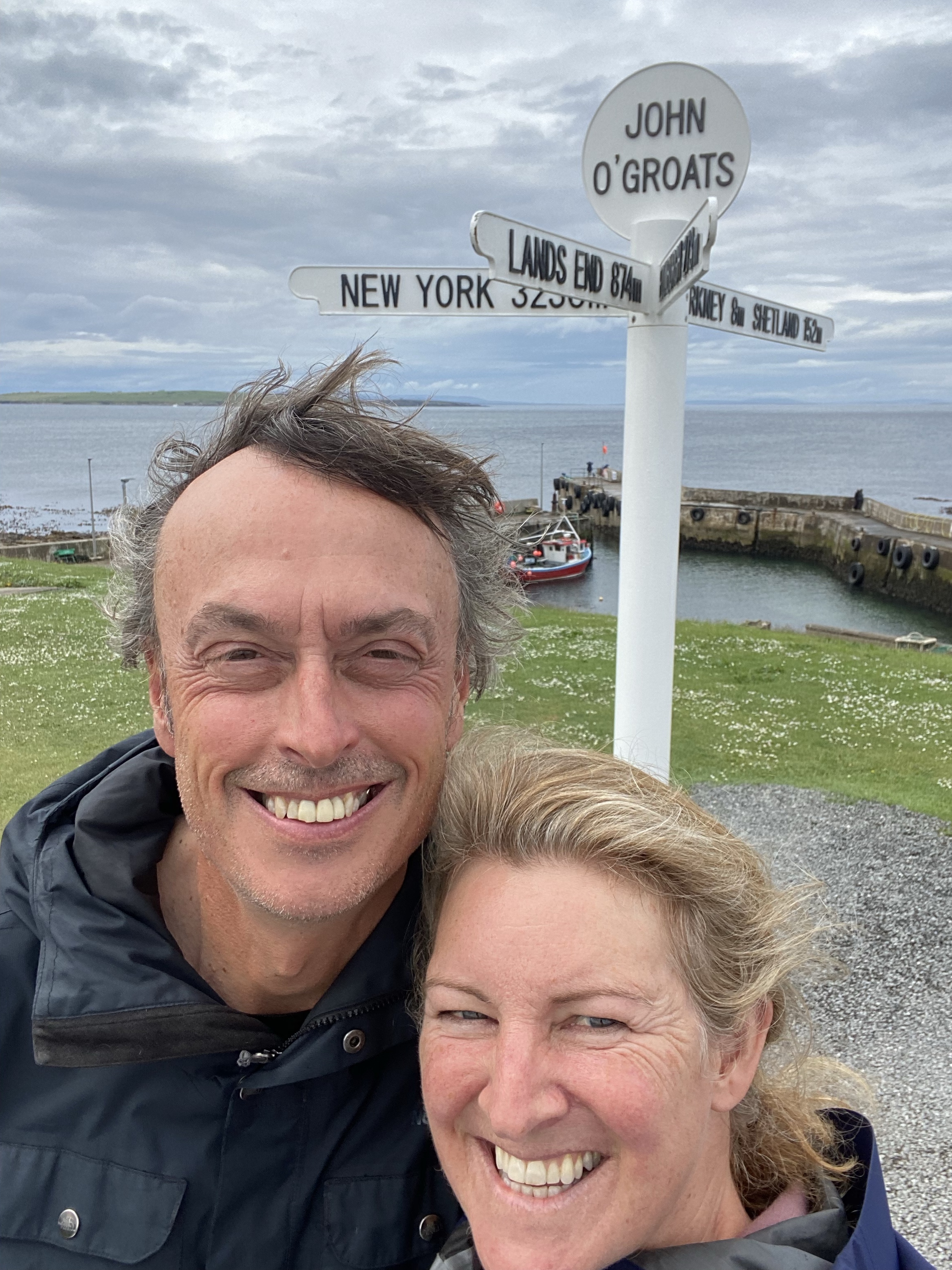 Dornoch is a lovely, if somewhat gentrified town, likely due to a ‘Royal’ golf course and a championship one at that. It did tickle us, the fact that the route to where we parked took us across the third fairway (can you imagine the site of that on BBC coverage!) and yes, there were blokes on it 😀 The reason we went wasn’t golf but that it’s a spectacular nature reserve, all around Loch Fleet so we were treated to red kites, numerous ducks, basking seals, a lone dunnet but still the red squirrel evaded us. After that we headed to John o’Groats, just because we could, and why not! Not a great deal there other than the selfie signpost but there is a fab cliff edge walk where there’s nesting guillemots and gulls in their thousands, and a lone puffin (pleased to spot that!) Nearby is Duncansby Head, a spectacularly wild spot, a tad ‘north’ of Jo’G…. mmm, have we been had? We overnighted at a tiny, unspoilt harbour called Latheronwheel overlooking sea stacks. It was built for the herring boom in 1840. Jigsaw had a good walk around the harbour walls without getting into trouble although she did appear to want to give rock climbing a go!