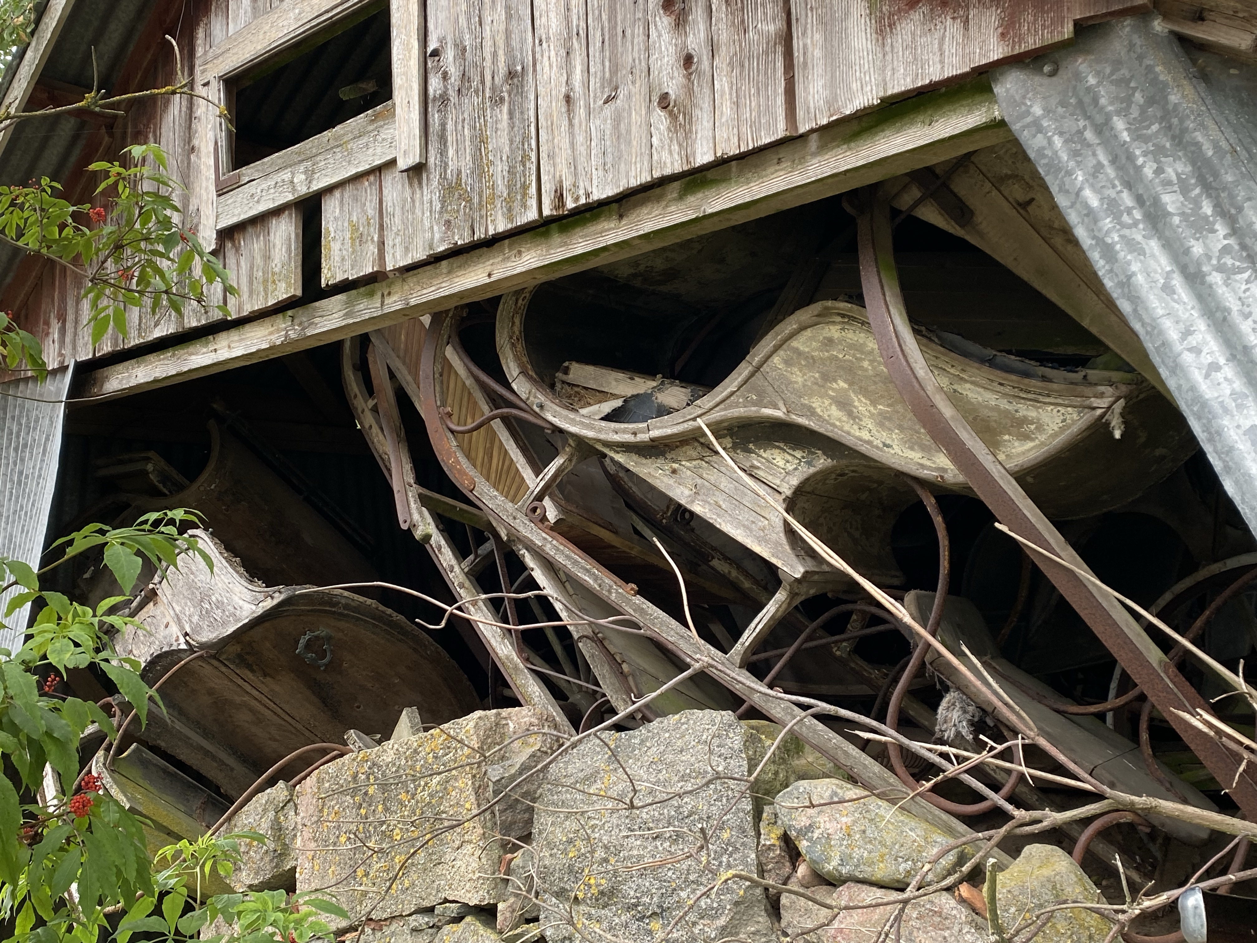 Anyhow, what a beautiful bridge, well actually the first half was a tunnel; but having crossed without seeing any dead bodies, some stunning views and only a cursory passport check at the toll booth we were quick to ‘get outa Dodge’. Our first stop, north of Malmo, was at a Stallplat farmhouse in the middle of nowhere (to settle our nerves!) Very quiet and charming with super views. A paradise for Jigsaw to stare at blades of grass for hours. A morning wander and we stumbled upon a dilapidated shed full of old sleighs and carriages. Clearly abandoned, it was a sad sight seeing fairy-tale like eeriness. The pictures don’t evoke the charm of the aged splendour, decaying before us. (apparently if you tap on an image in a montage it opens each individually if you want detail!)