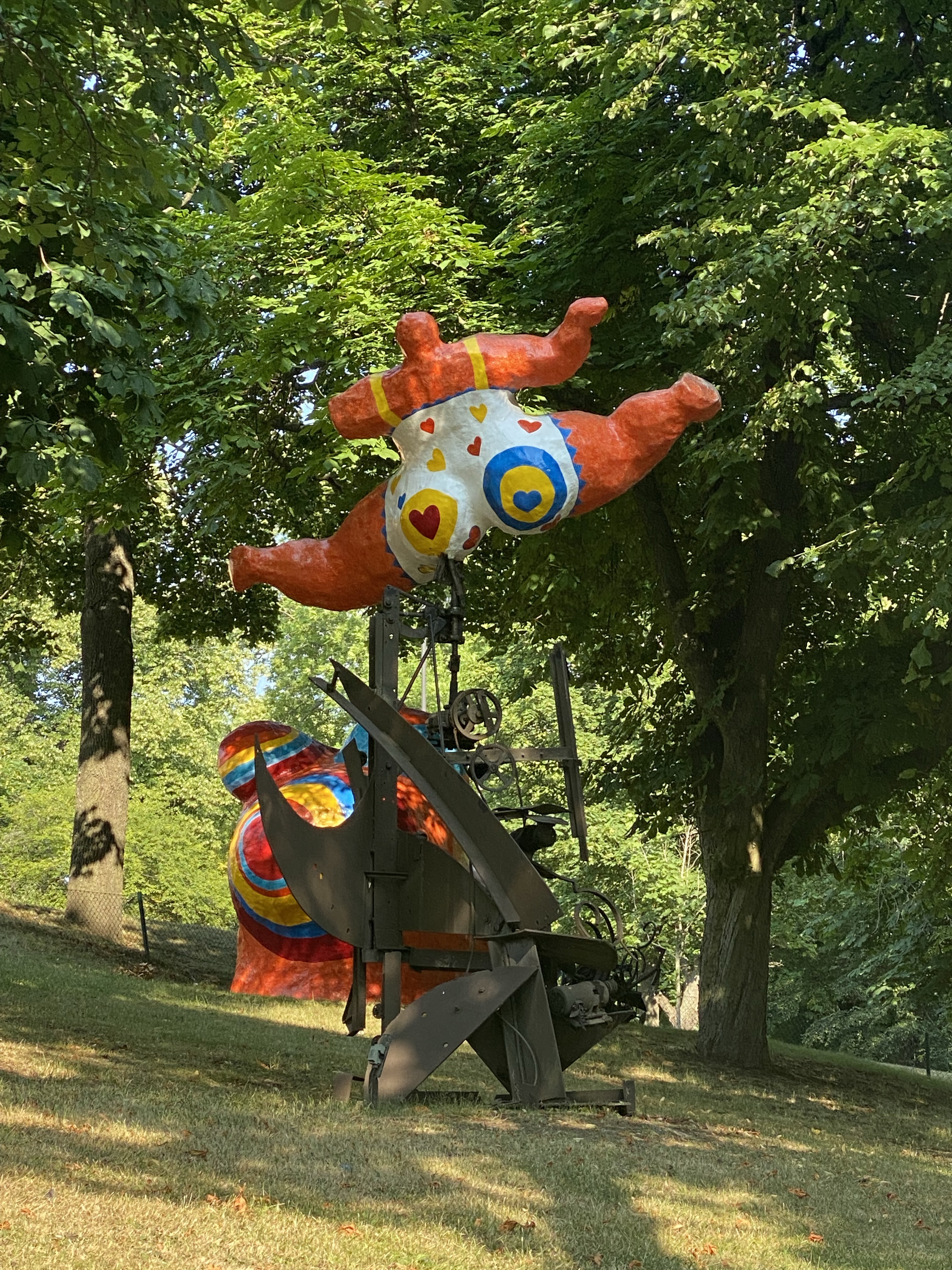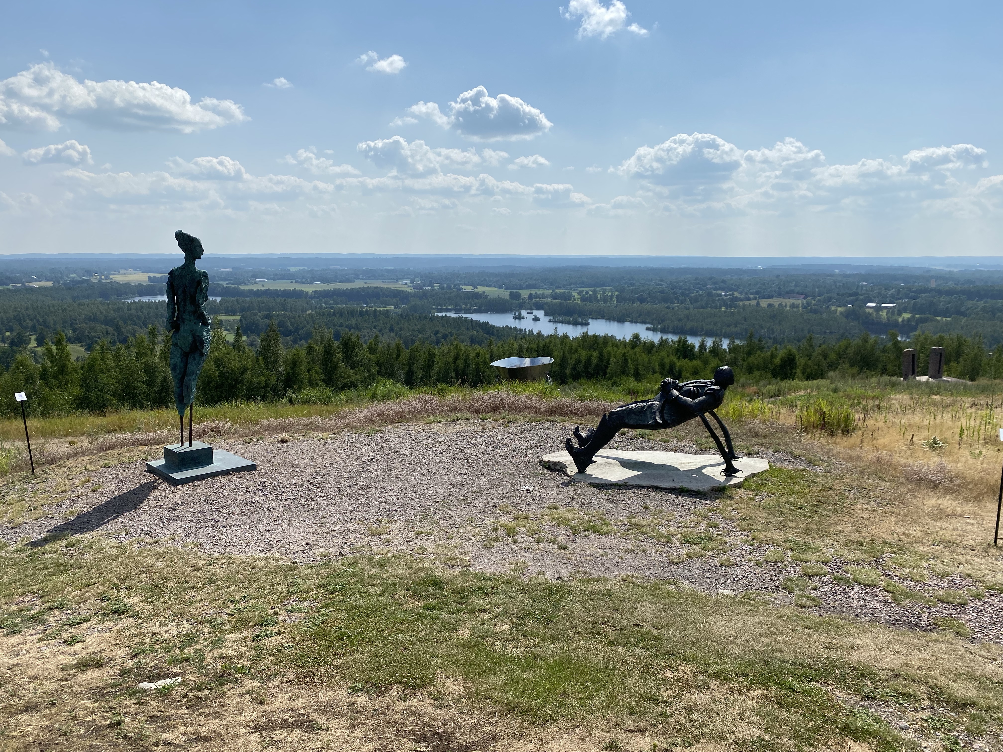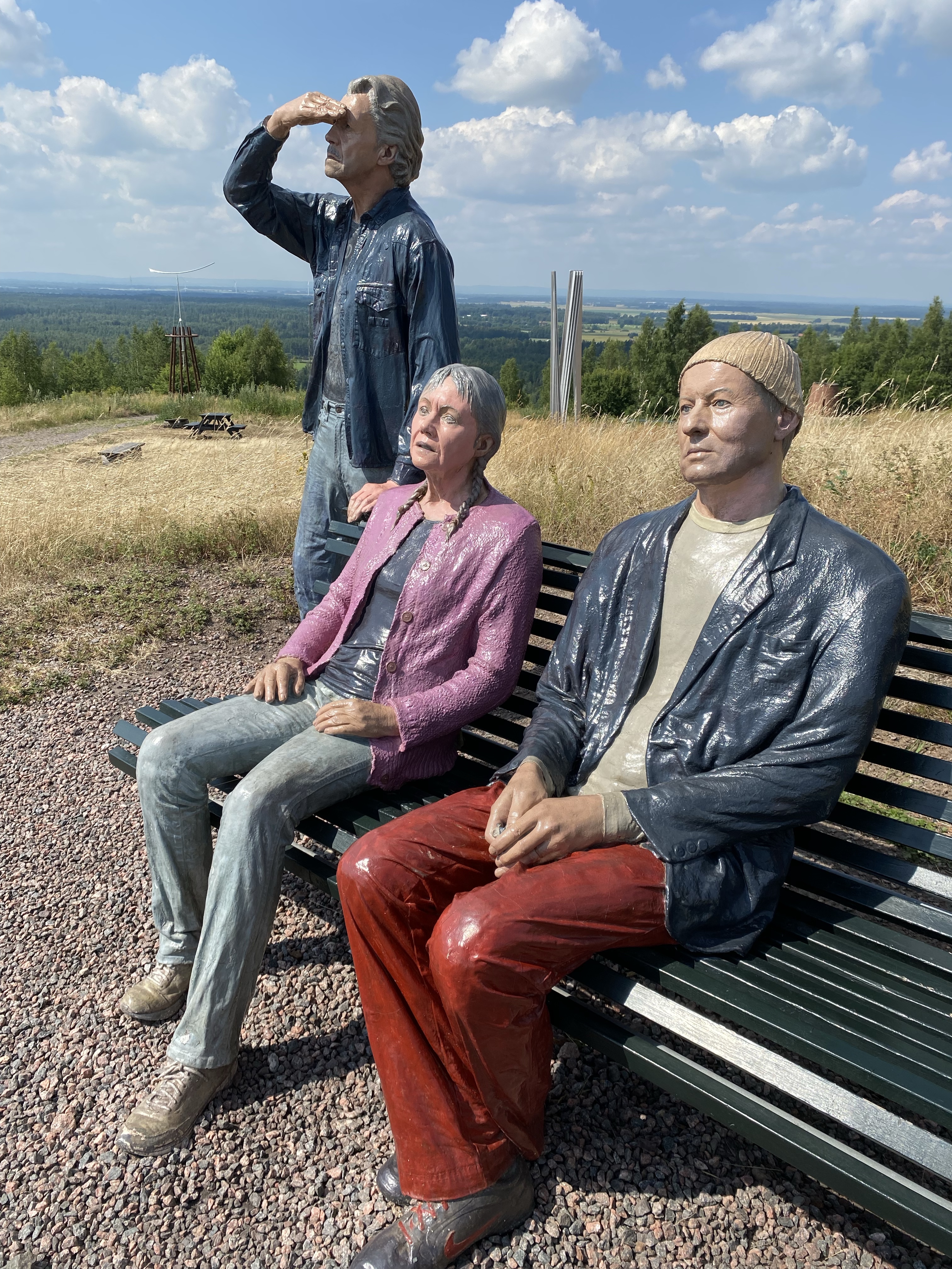 As we left that area we saw a great sign (see below) The irony however is that Loppis translates to Flea Market 🙂 Heading further north we detoured to a fabulous Sculpture Park. The only problem was the 427 steps we had to climb in 30degree heat, it was worth it though, we love finding this type of place. It’s within a ski resort/mountain biker paradise called Kvarntorp. The park was once a slag heap created from a Bitumen and Uranium mining operation nearby, its now a whimsical creative landscape with really fun installations, favourites below. Each has it’s own story, the tree created by prisoners hence the prevalence of keys and cages. Noah didn’t build the ark. From there, it was off to Stockholm, to look for a syndrome!