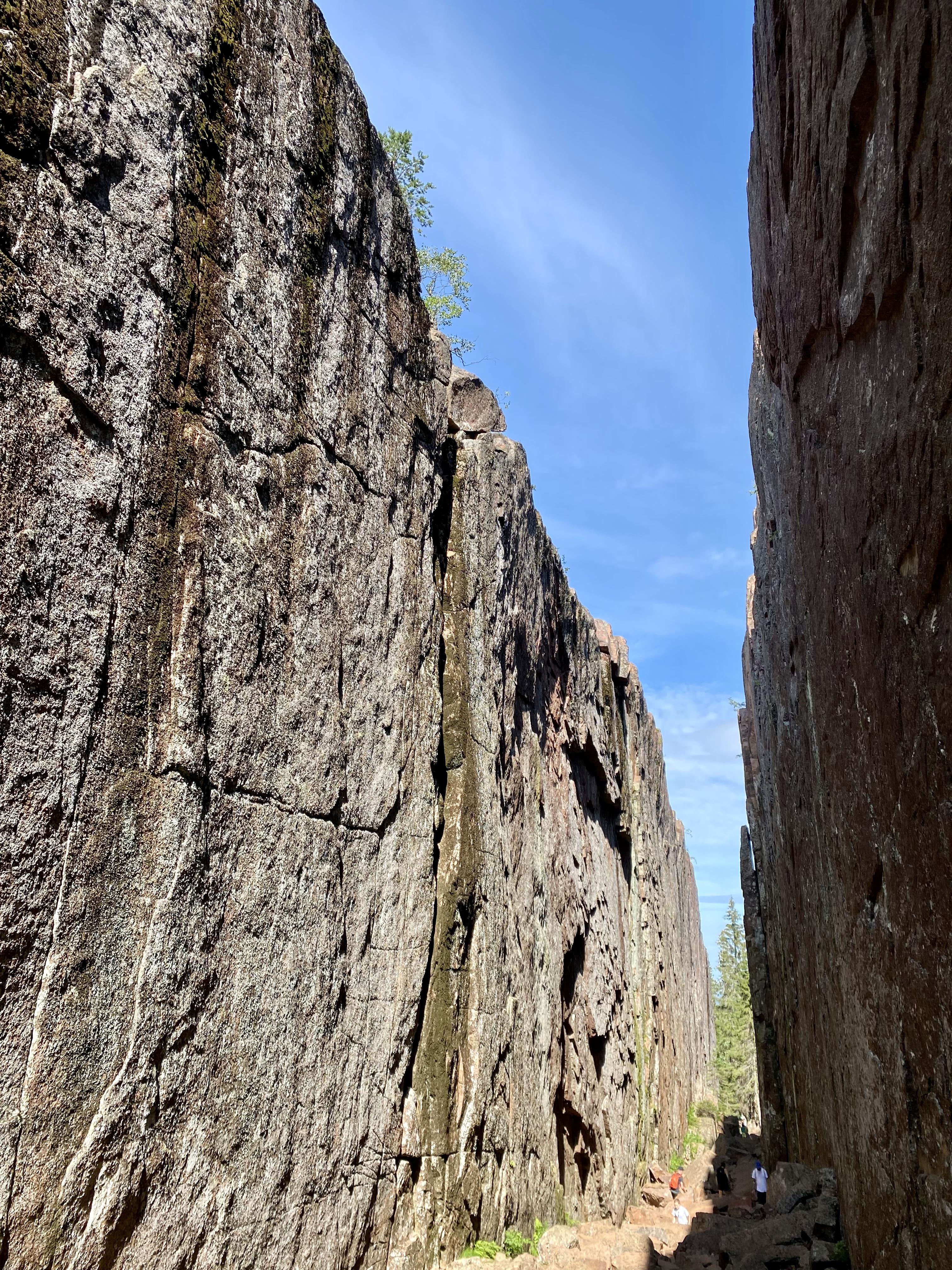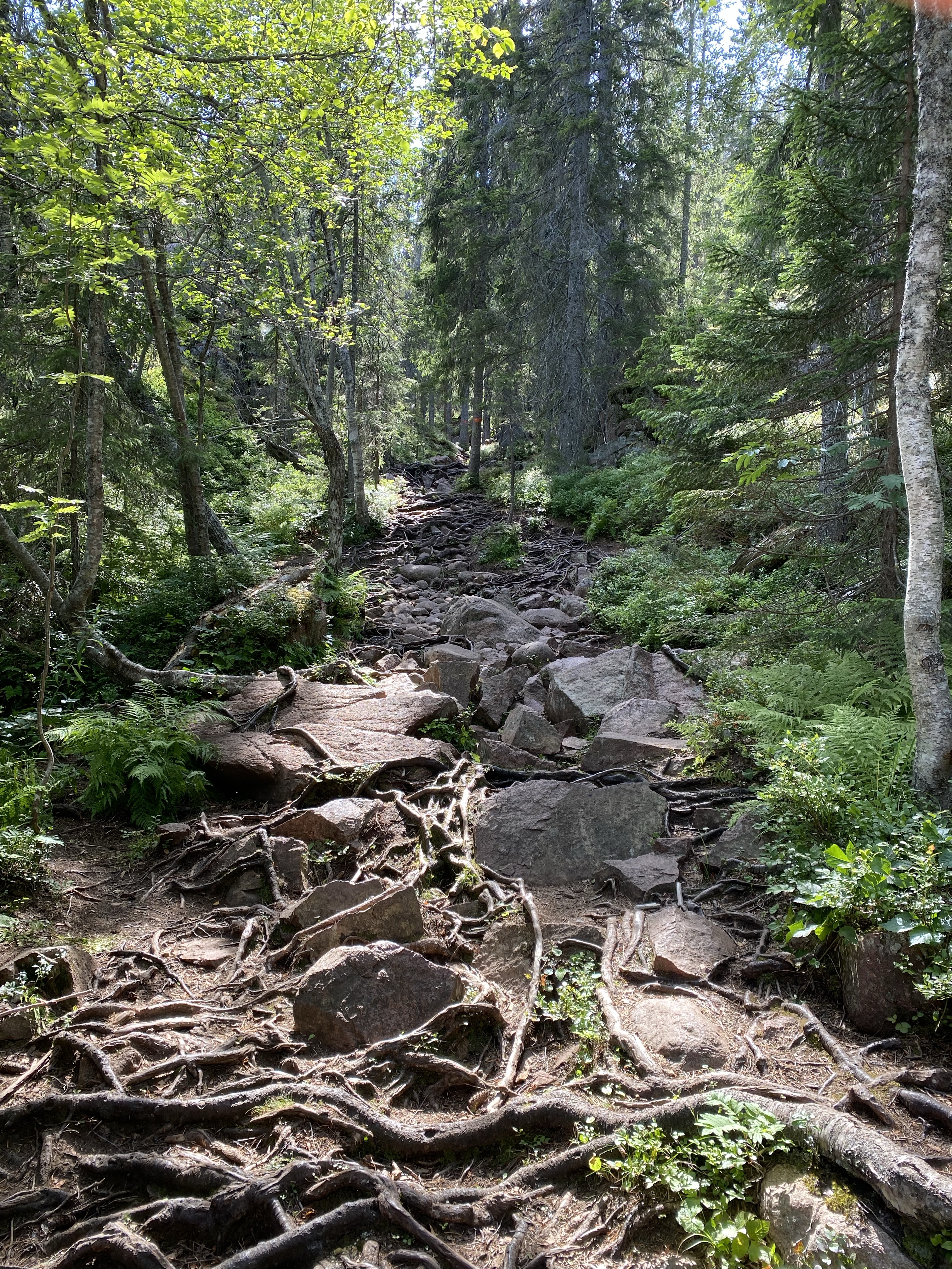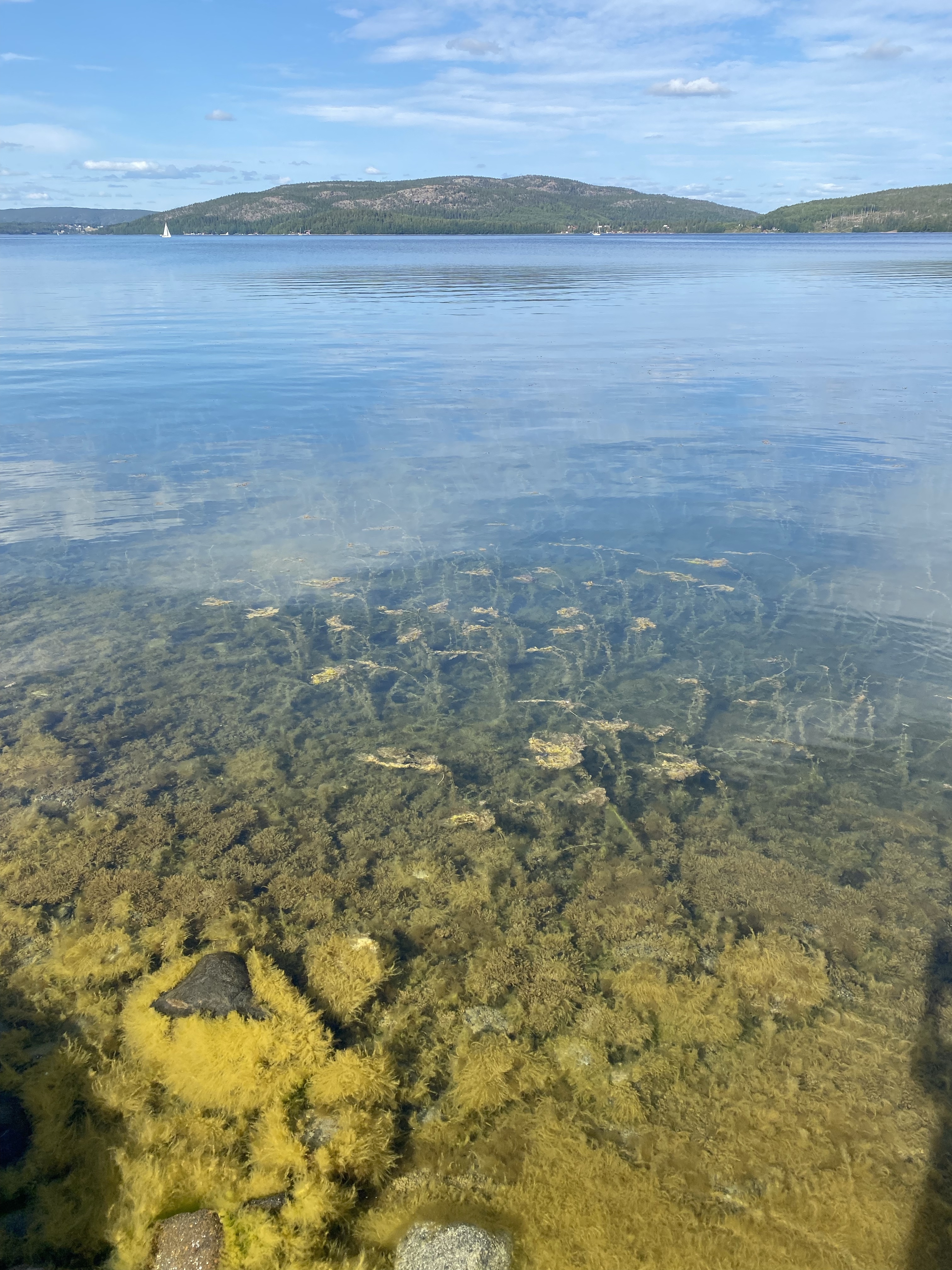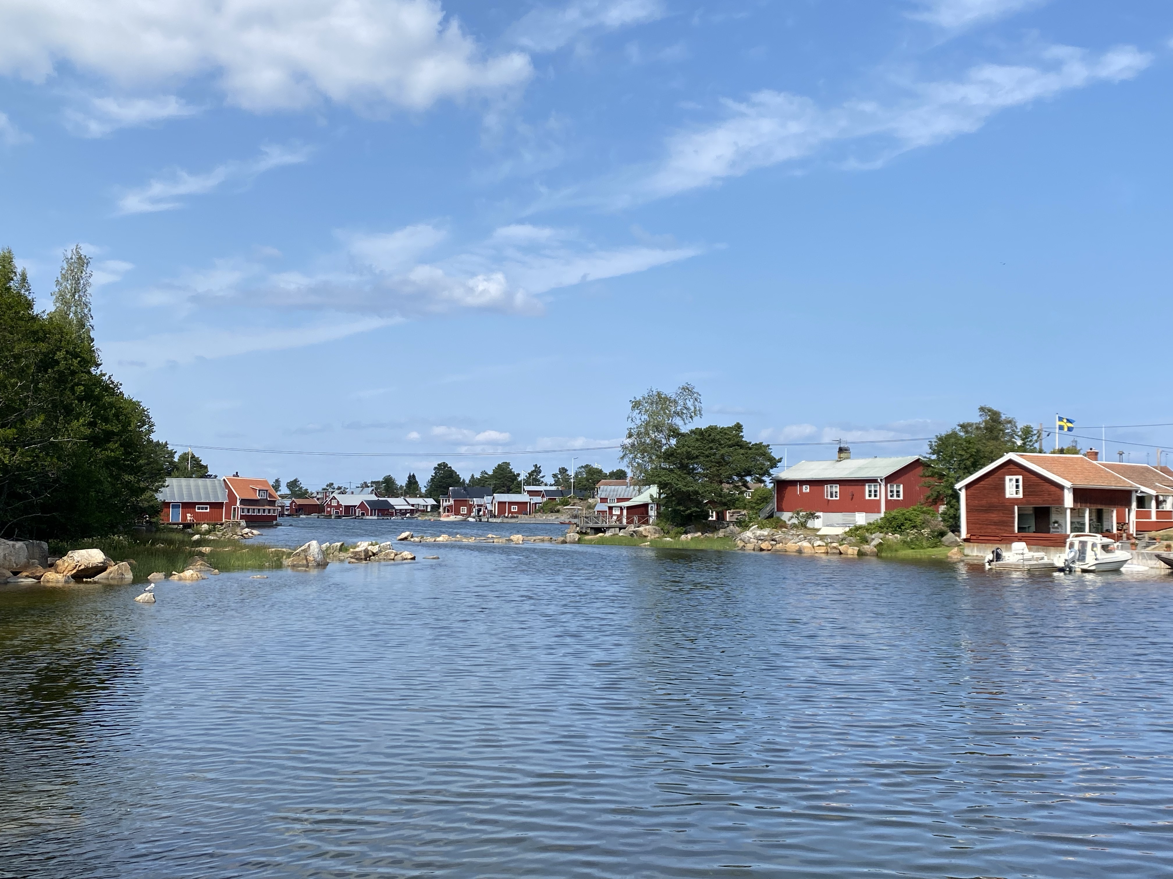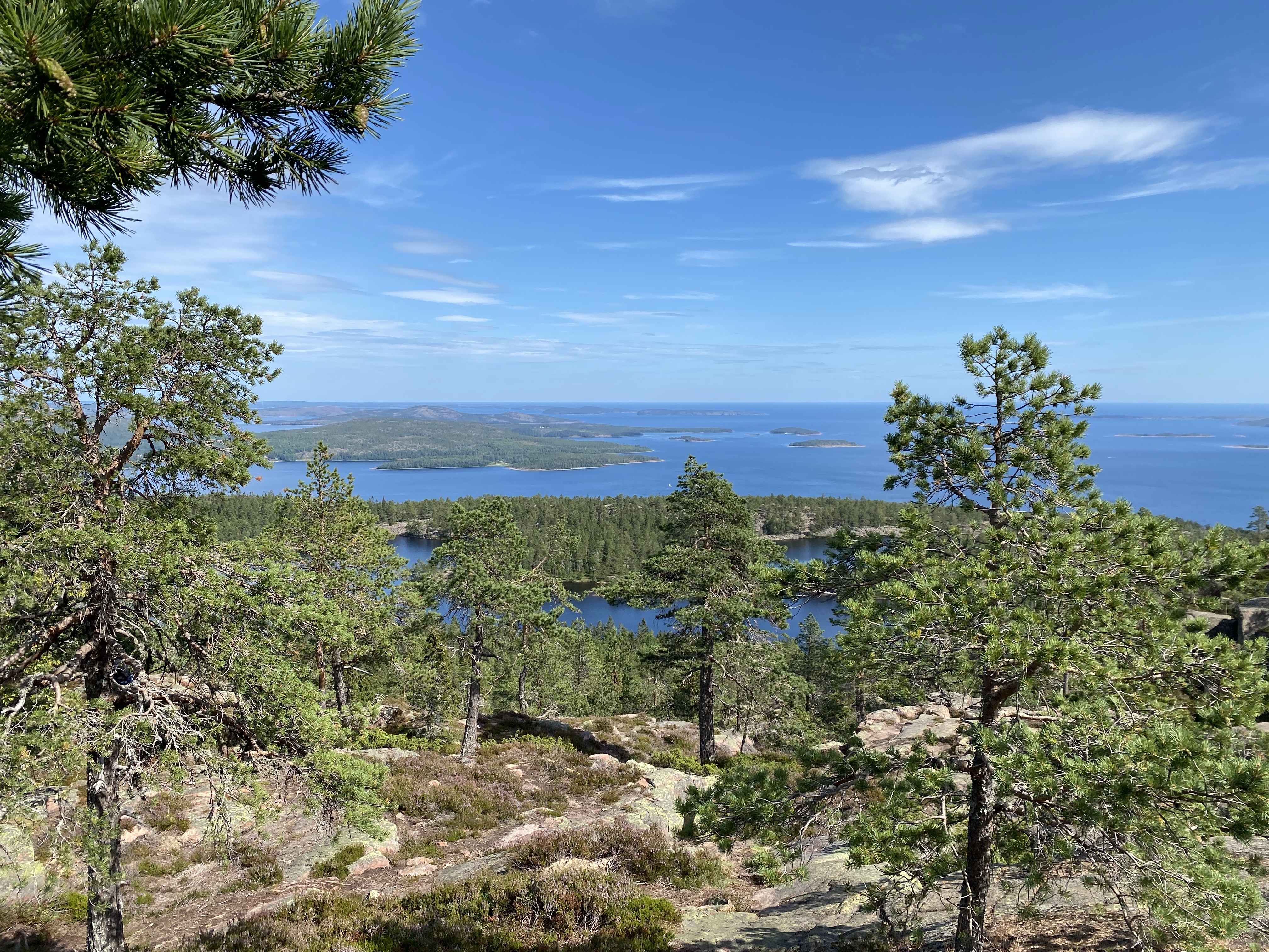 Moving North along the coastline the landscape changes dramatically, becoming what is known as The High Coast, “Hoga Kusten”. This area is mountainous and is said to be rising by 8mm p.a. Inshore it is a mass of lakes and offshore there’s a mass of wooded islands. We were in Skuleskogens National Park, well known for Slattdalaakrevan, a serious rock crevice with views at the top over the coastline. A fabulous hike through woodland with birdsong and the light flutter of birch leaves in the wind for company, followed by boulder climbing, tree root tripping and all kinds of challenges and we were there. One of our better lunch spots! We still cannot fathom why people make the effort to get to such a gorgeous place then look down at their phones, not up! The whole area is breathtakingly beautiful and worth the couple of days we spent there. The water wasn’t too cold either!