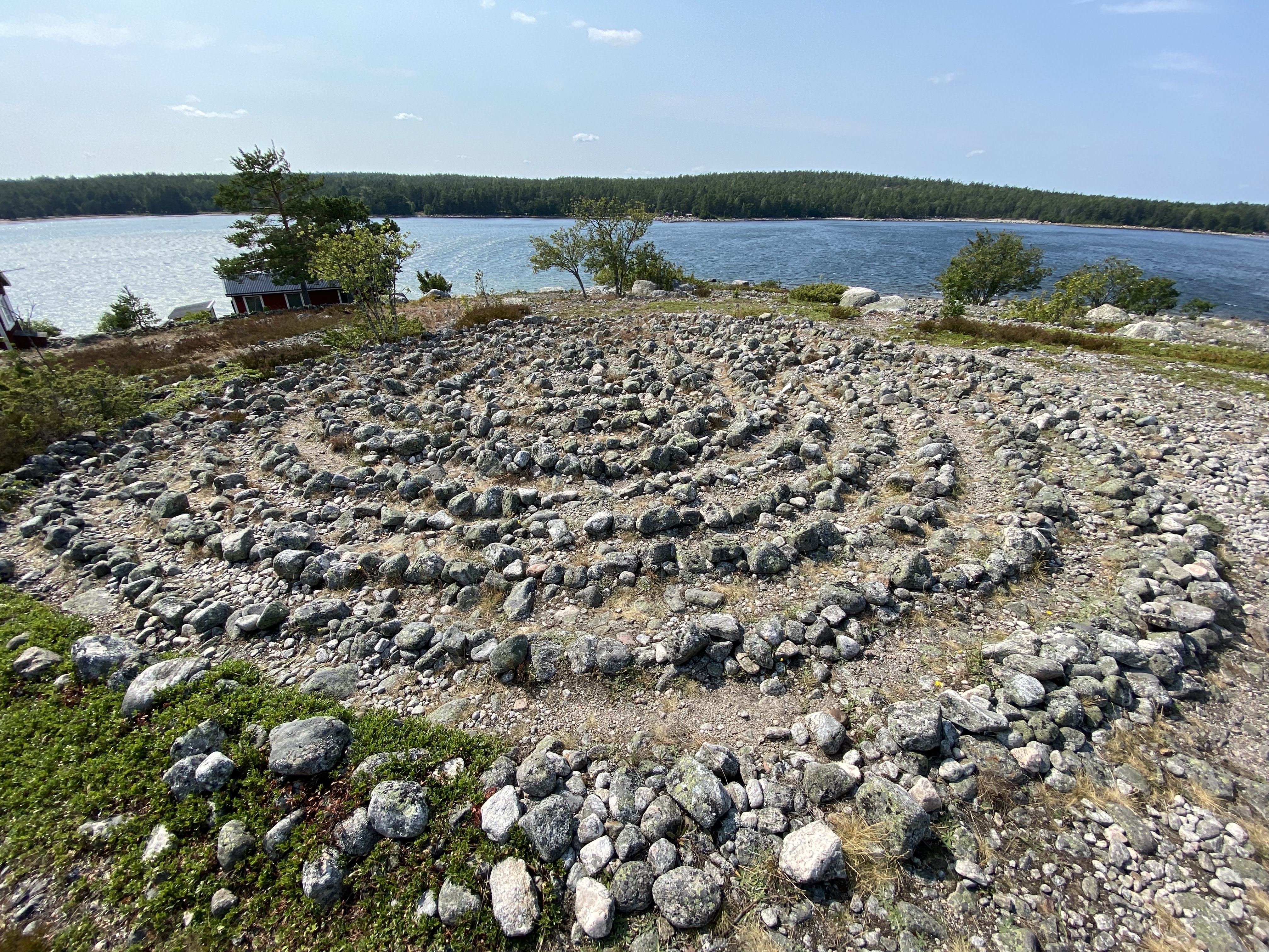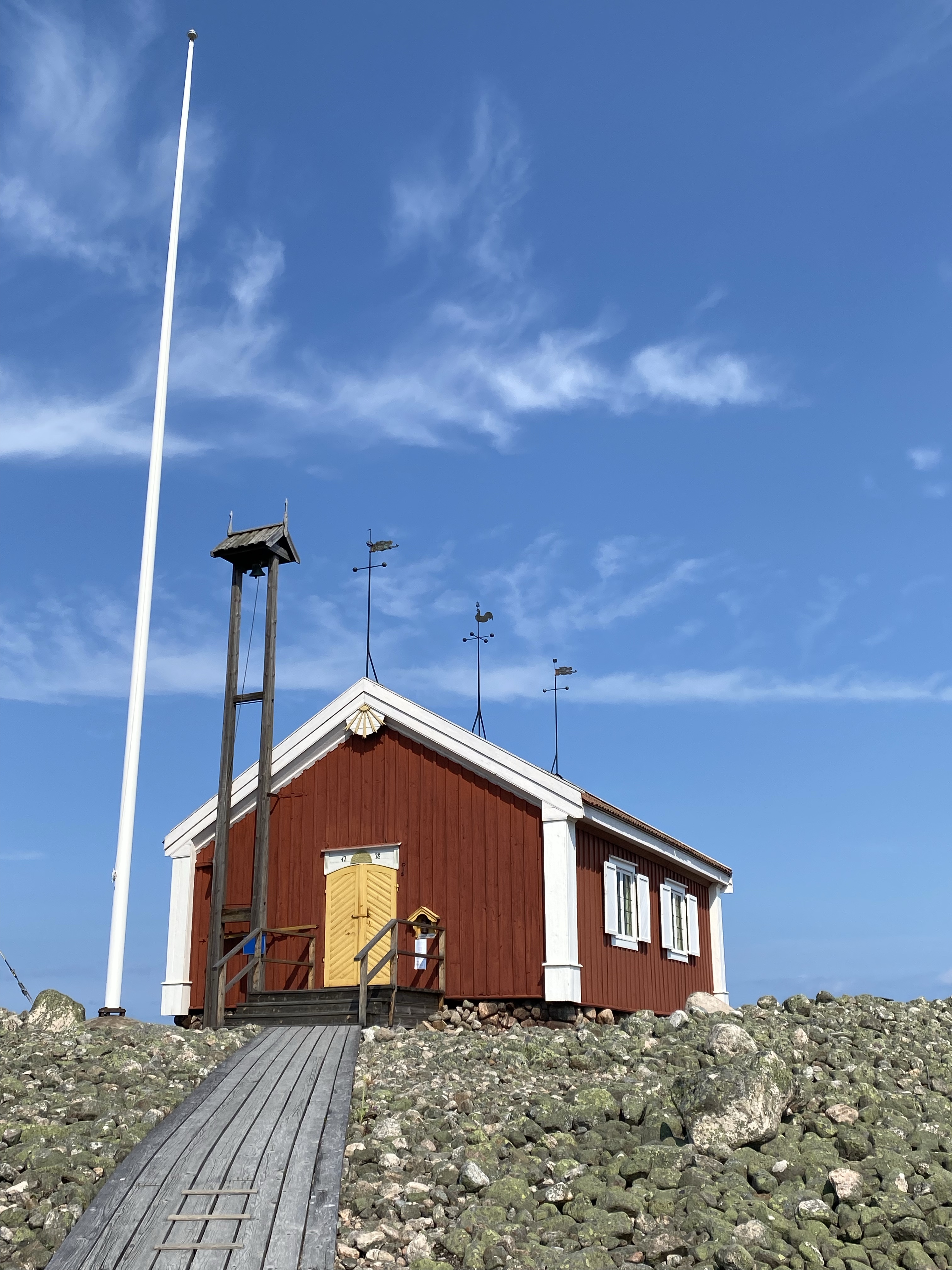 Hudiksvall is on the coast of The Gulf of Bothnia, a body of water at the top end of the Baltic Sea. It’s a small but popular holiday spot but also close to a nature reserve which sits on a beautiful peninsula. Time for some exercise, we cycled 40km out to a tiny lighthouse on the peninsula past Holicks. Naturally there being so many small islands dotted around the archipelago, there are many of them. Having to also ride 40 km back we diverted into town for a drink, unusual place with its old phone box and a real mix of old and new buildings. Some on stilts in the marina but then ugly 70’s builds next door. The old one in the picture dating to 1893. We decided the following day to drive out to the nature reserve and ride from there. It was cooler riding the woodlands trails, hearing the birds and looking for a loose moose (none spotted). Even within a relatively small area, the landscape is constantly changing at ground level within the trees, wild meadows, ferns and rock deposits. Crossing a small bridge we went onto Kuggorarna Island, a car free space, quaint original fishing housing, with a frozen in time feeling, but in a positive way. We found a labyrinth, legend suggests it was created by fishermen to capture winds. We wondered if the man sized nets were to catch swimmers?! The tiny island church was a lovely surprise, not expecting the key hanging outside to be the real deal, it opened the doors to a magical little space.