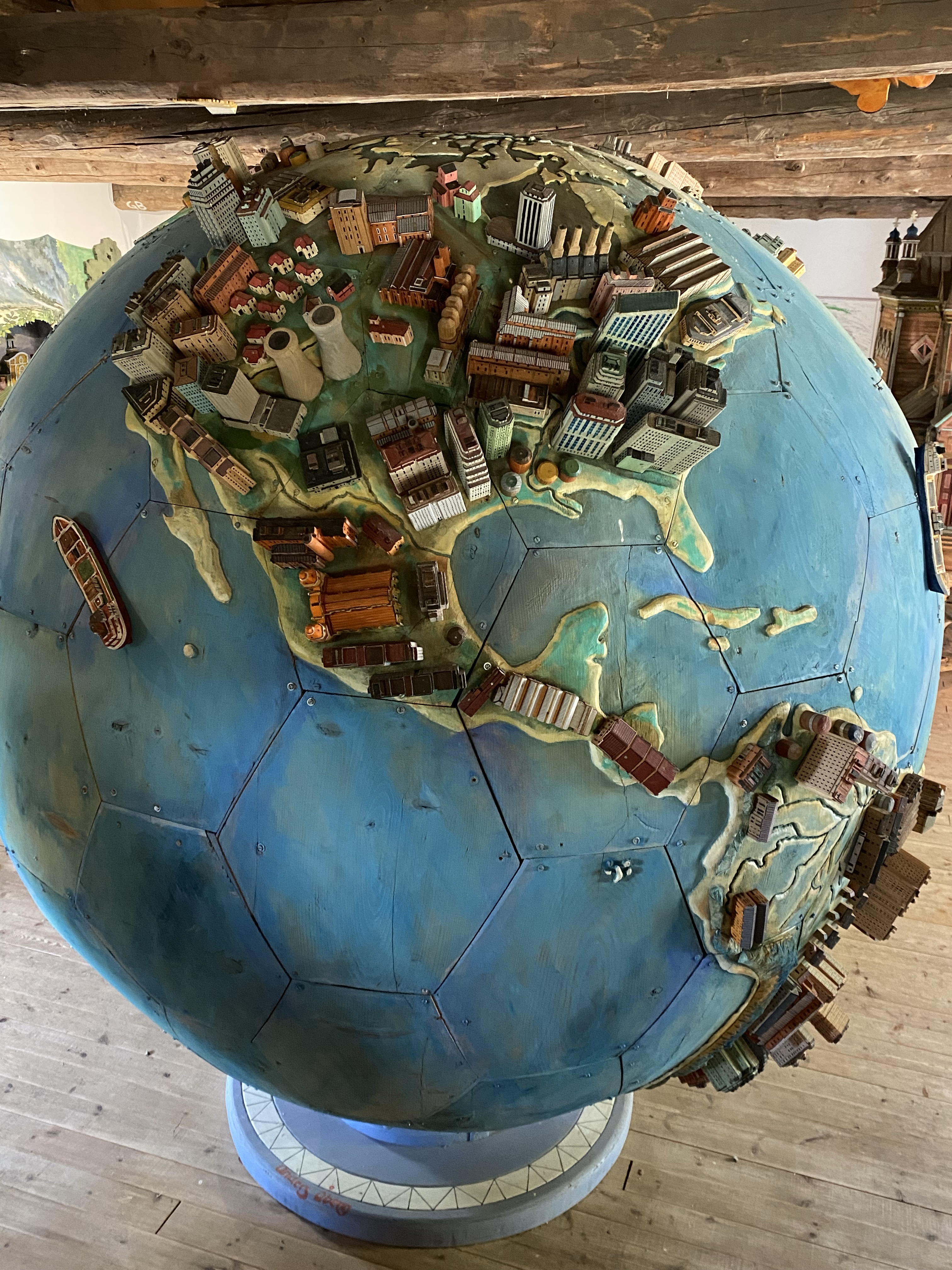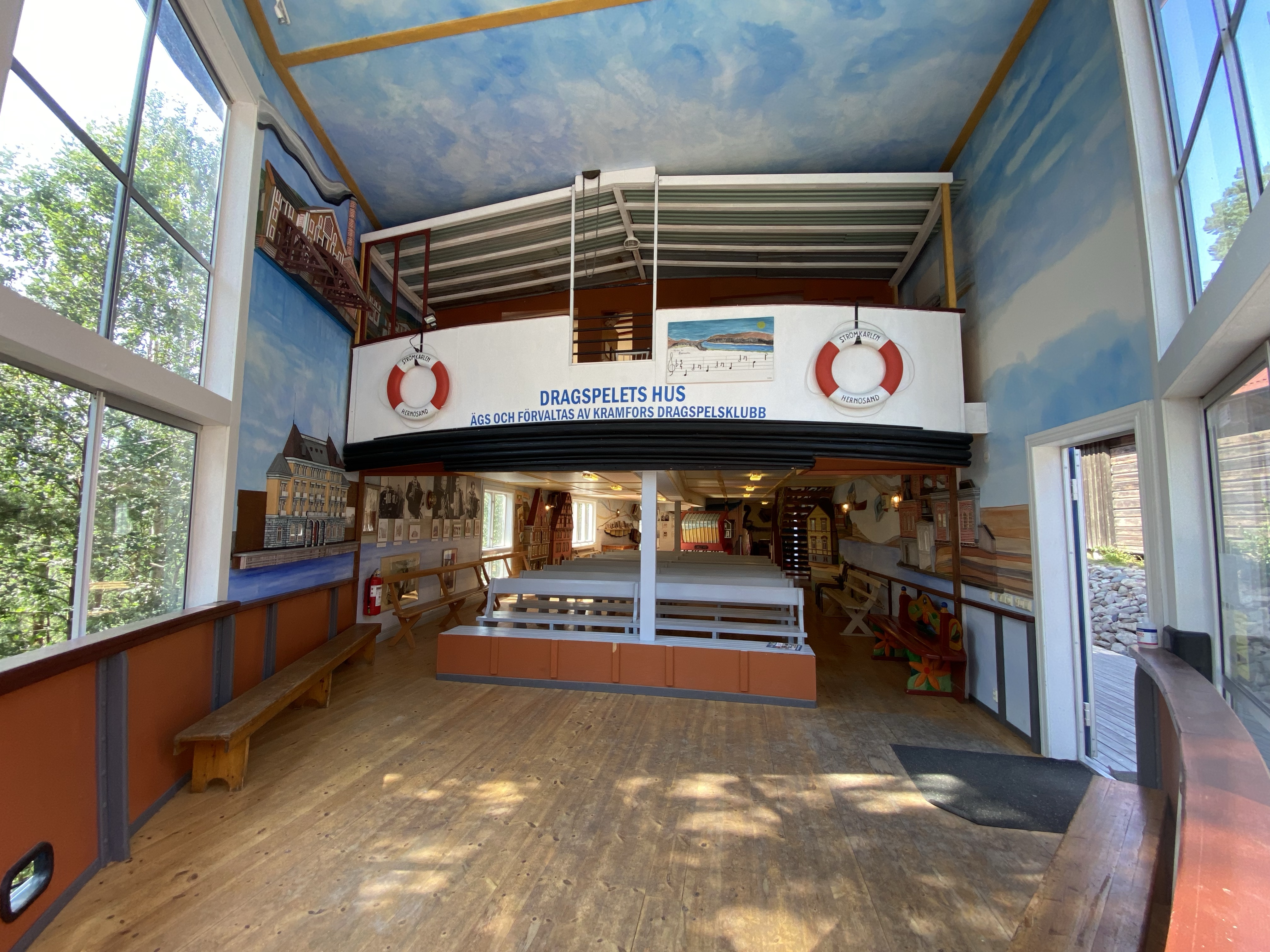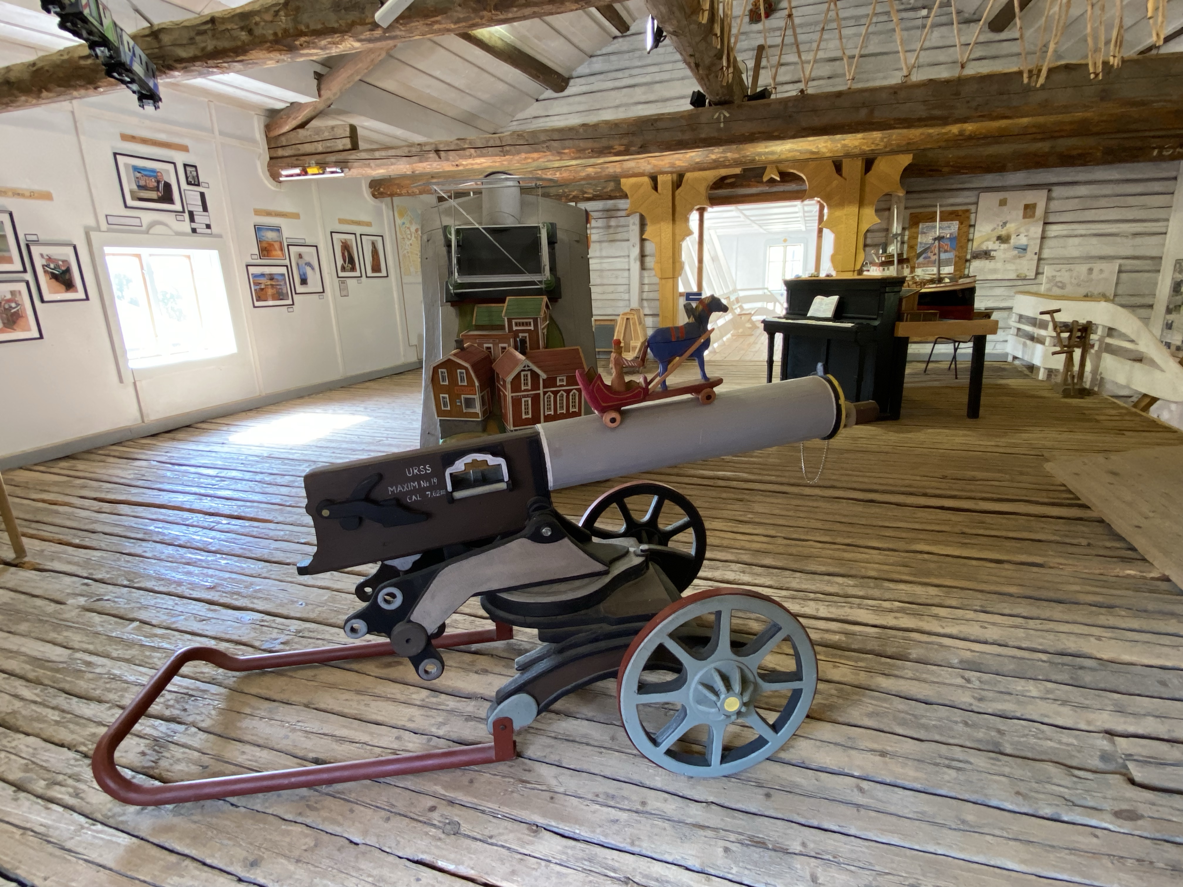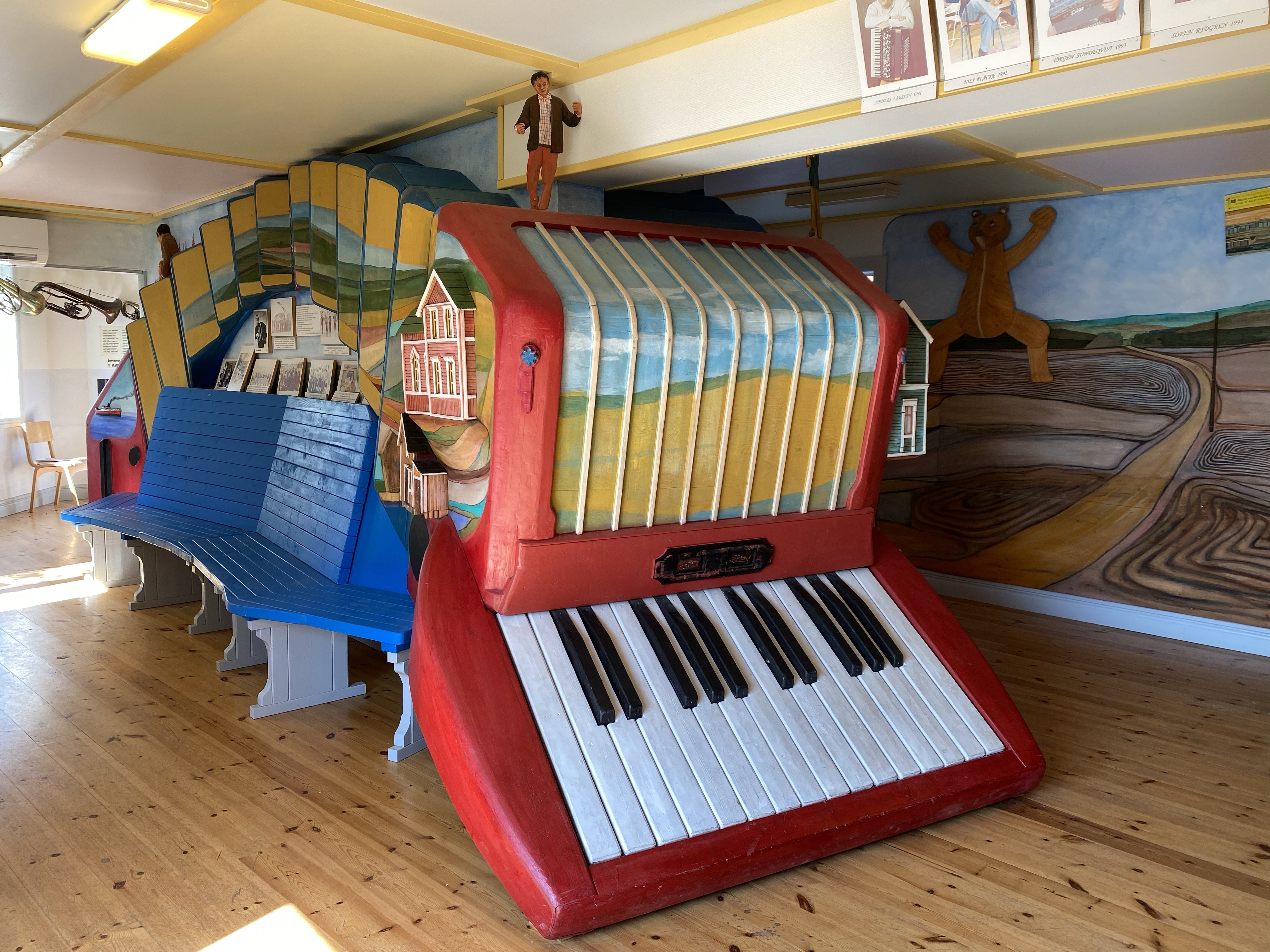 We really struggled to find the words to describe the place. Swedish ‘artist’ Anders Abergs seemed to have a penchant for rescuing ‘stuff’ from around the world and then building around it, such as the Accordion House, built around an entertainment boat, the S/S Stromkarlen, frequented by Accordion players. The area was shrubland until 1980 when Anders started his project. There are now several museum buildings, themed differently. He also collected old tram cars, cars, boats and a fighter jet. Each of the buildings housed an eclectic collection; agriculture; engineering; fishing; the globe; Estonia; country music and our favourite “the Technology” house. Only our favourite as we could pick out lap tops and mobile phones that we’d once had, or ‘MS wordperfect’… we felt like we were becoming history ourselves 🙂 All in all it was a quirky and odd mix of functional art, a collection of some genuine pieces and several buildings full of all kinds. Dotted around outside were trams, cars and life rafts and a metal double bass… Maybe the photo’s will describe it better than my words!