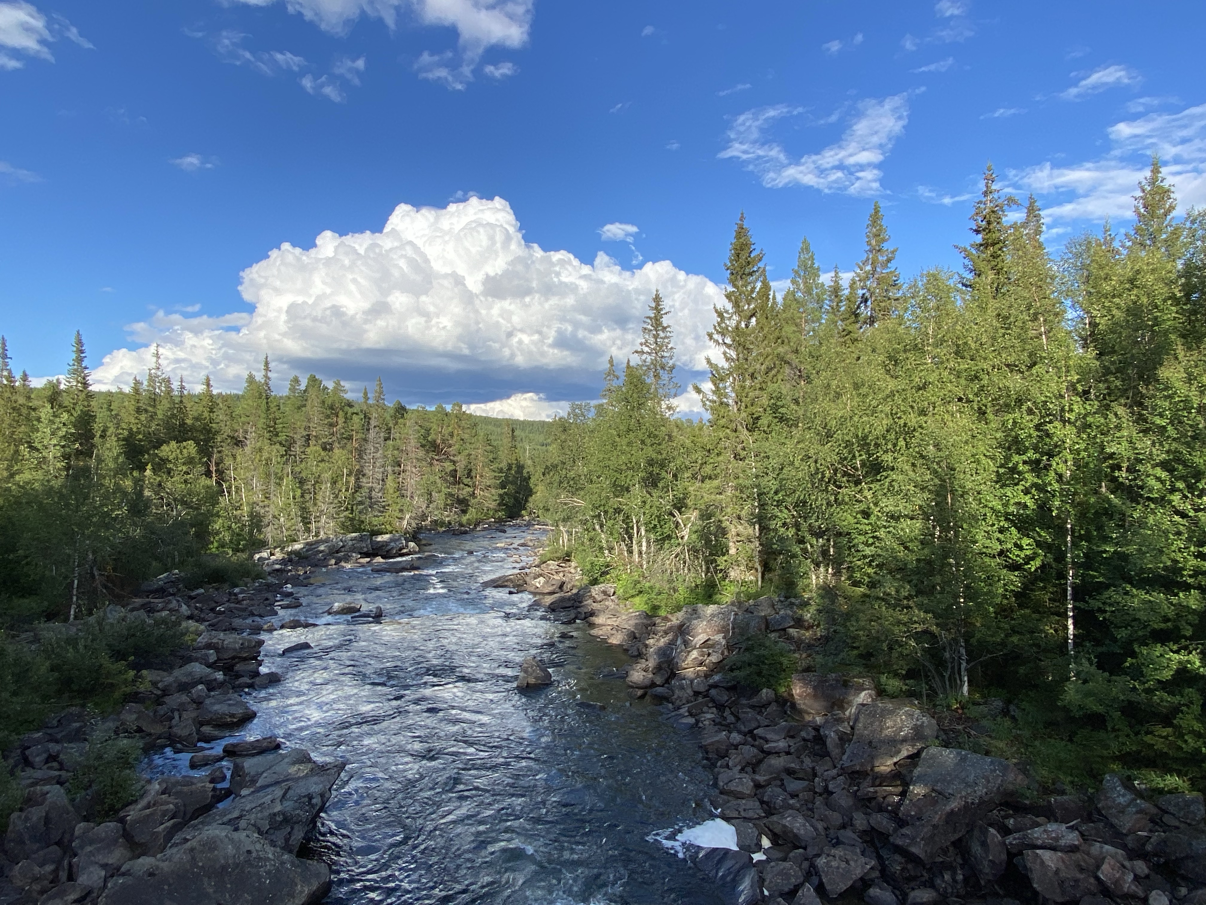 A large amount of this route is unmade road, winding through trees and waterfalls higher and higher before there were no trees, or shrubs and we found ourselves at the top of the highest road in Sweden at 976m. Barren is an understatement but plenty of Reindeer and fabulous views. Sweden’s most southerly glacier a distant dot and the perma frost hardy plants underfoot. It was here that we had our good news so once back at the van we knew what we had to do, drive woman drive!!