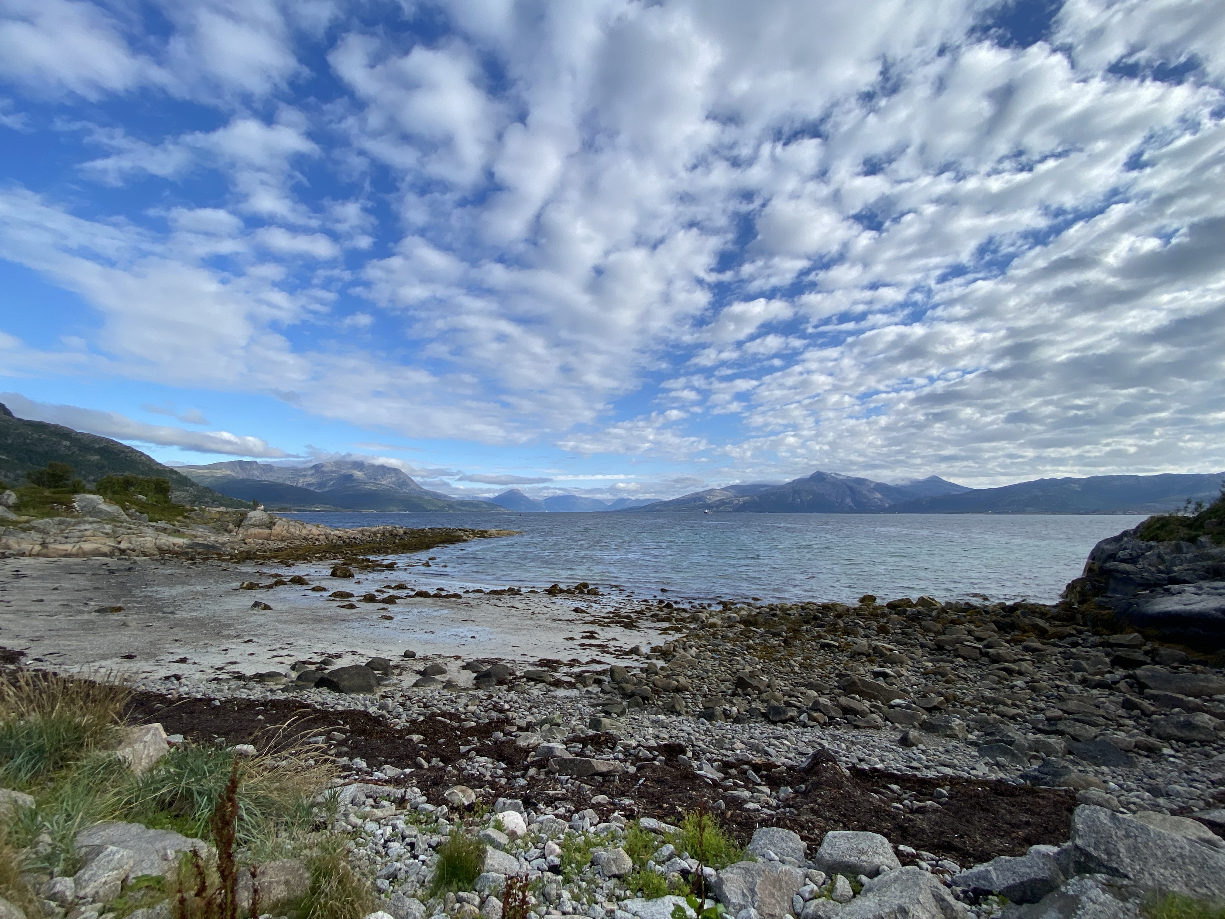 Back to the E10 we found ourselves at a gorgeous spot at Valberg, a beautiful little church sitting opposite a white Caribbeanesque beach (without the Palms) and turquise water. Given the Gulf Stream impact, the water temperature wasn’t all that bad actually! We were quite a while there, walking on the beach and chatting with two amazing photographers from Tromsø, Vivian and Trine and two local ladies out on a walk who liked cats…
