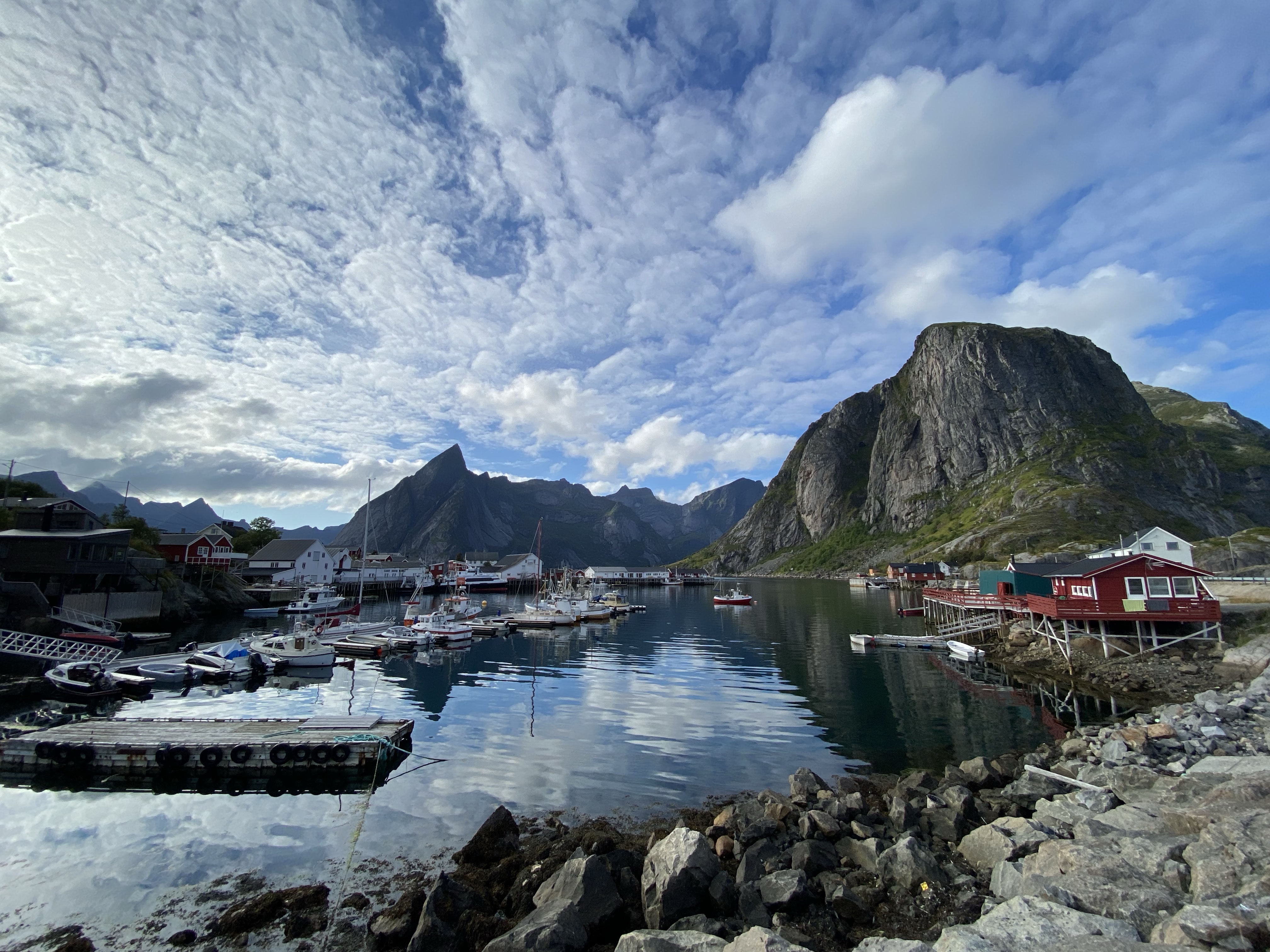Majestic mountains with jagged tips, piercing the sky, the ubiquitous red stilted buildings and beguiling fishing villages were all there to meet us as we explored The Lofoten Islands. A long held dream of a trip came to fruition with the generosity of the Norwegian Government and frankly, great timing!