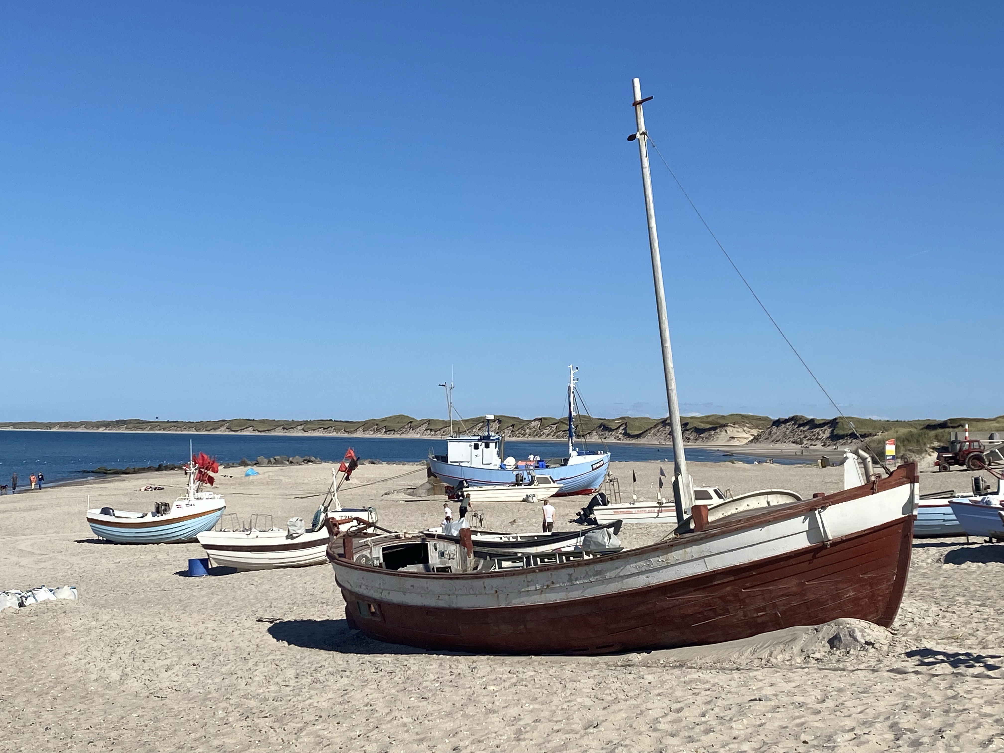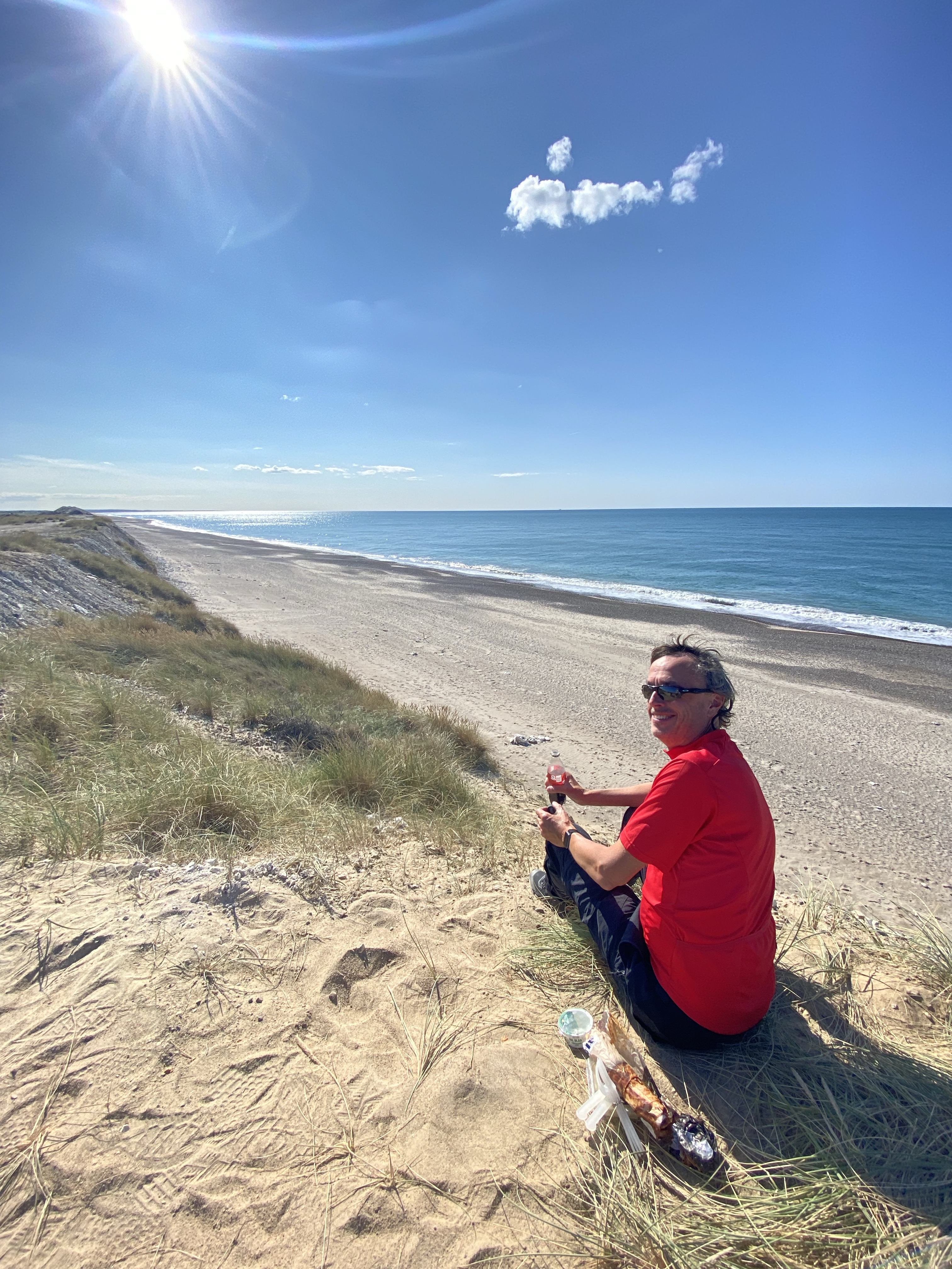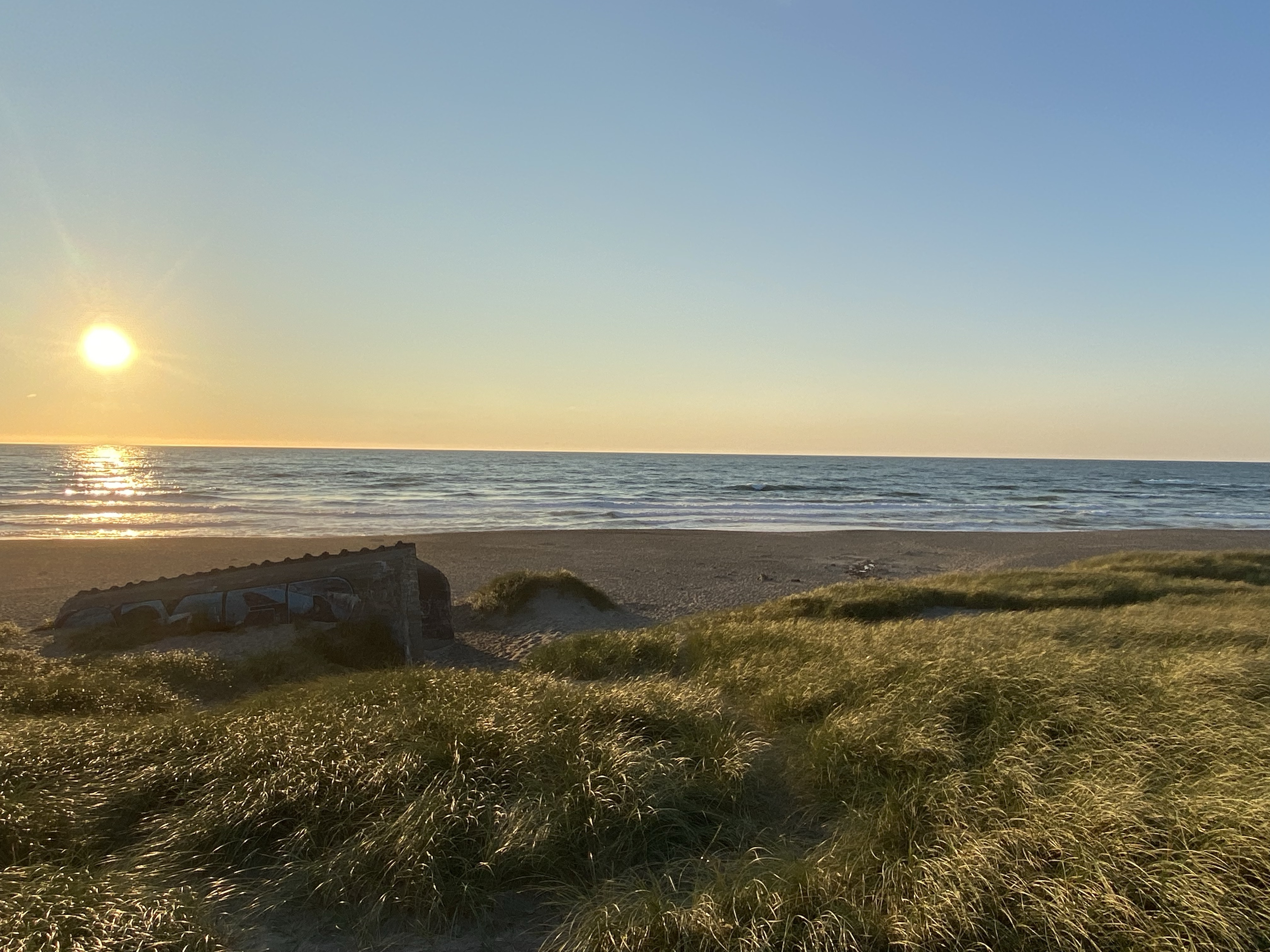 Klitmoller, in the coastal district of Thy, is known as ‘Cold Hawaii’ so no guesses for what this place is about! A north sea version but still with long white sand beaches, dunes and the winds to attract the surfer dudes. We sadly were moving on a week before Cold Hawaii Games 2021 or we’d have been watching some serious action, akin to that mad stuff we saw in Tarifa no doubt. It may be the case given we keep finding these places, that someone is suggesting we have a go at kite surfing but instead we took a sedate cycle ride or two, sedate because it was relatively flat, not the distance! Just sitting and watching the minions having their surf lesson was a fun way to while away the time (they all wore yellow vests) We took in the Bunker Museum at Hanstholm, a relic of the days of occupation. The current occupation was by massive fishing trawlers and French trucks waiting to take the catches away at the harbour. South of Klitmoller a long ride, diverse again, trails, woodlands, sand dunes and open fields took us to Vorupør. It is within Thy National Park too. A sunny day, it was bustling but why not, the call of a long sand dune hugging white sand beach is enough for anyone. Their ice cream dipped in chocolate (who remembers Ice Magic?!) was a tad soft, dripping down our faces, most ended up on our hands and the sand 🙂 I’m not allowed to post those pics! A sundowner sitting on a sand dune was much more civilised.