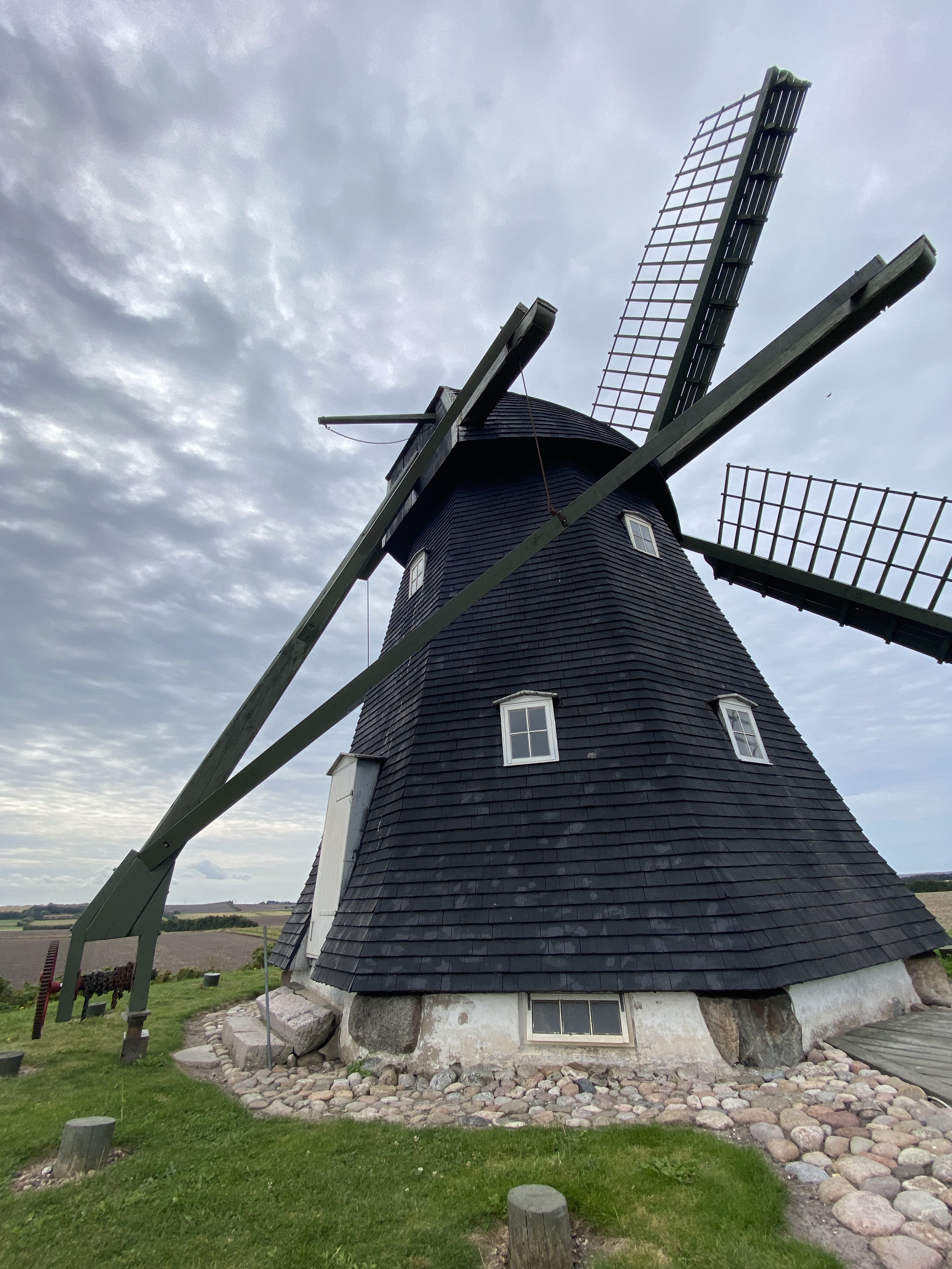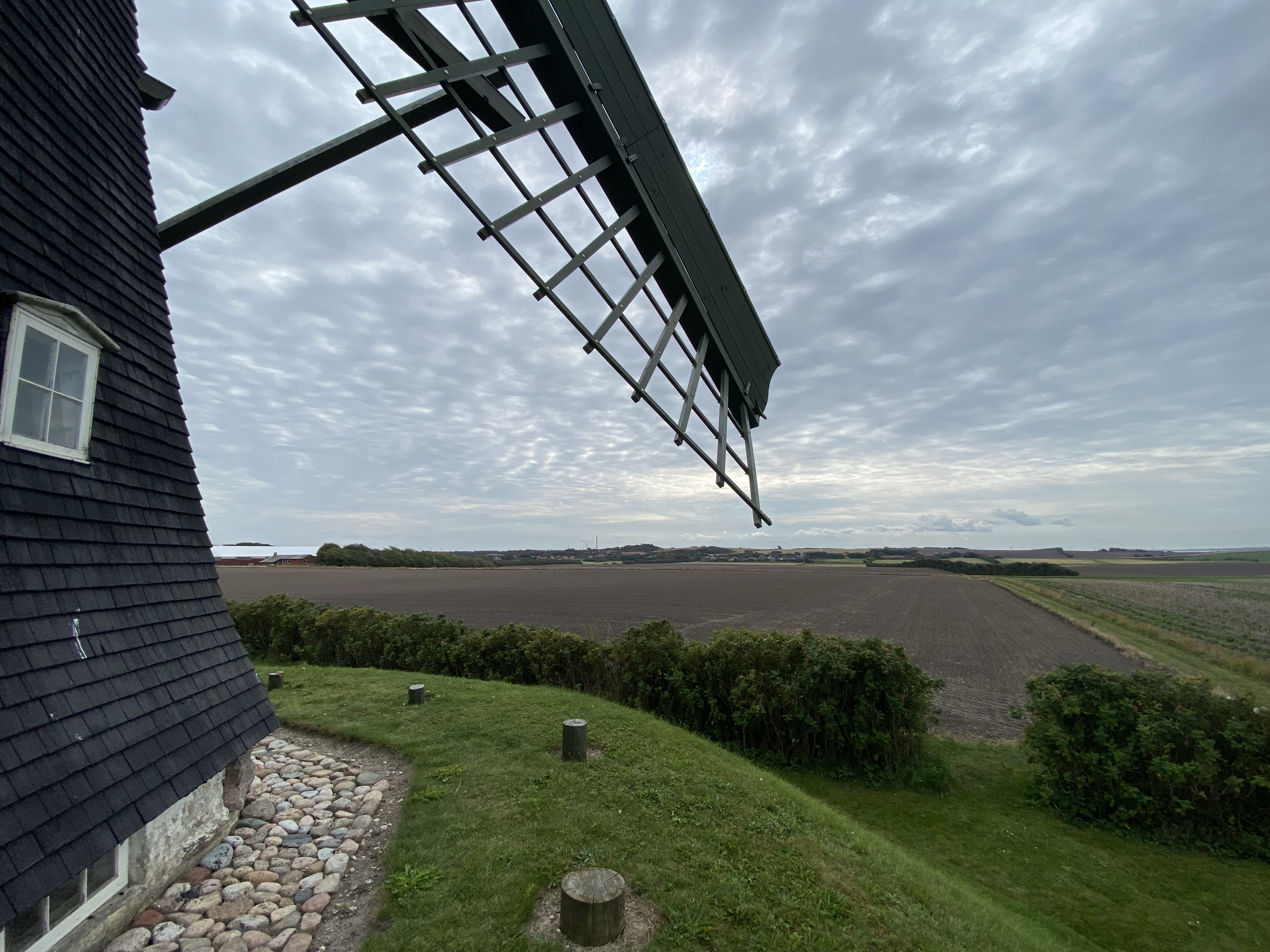 A windmill spot on the sky line was reason for a detour, to Vestervig. A fantastically preserved example, where the mechanics of its movement were clearly evident, the Kloostermolle was built in 1860 and used until 1960. It was known as The Vestervig Monastery Mill originally as it’s very close to the white Romanesque church, the largest village church in Denmark. The citizens of the area bought the mill in 1965 to preserve it but it took until the late 1980’s before work was undertaken, completed just before a catastrophic storm took the mill cap and sails off. Thankfully, repairable. Continuing on the road south past the heathers and flat fields with the beautiful wild flower borders we joked that no Dane would ever win ‘King of the Mountains’. A quick google search sent us to the back of the humour queue, a Dane has won it twice recently, doh!