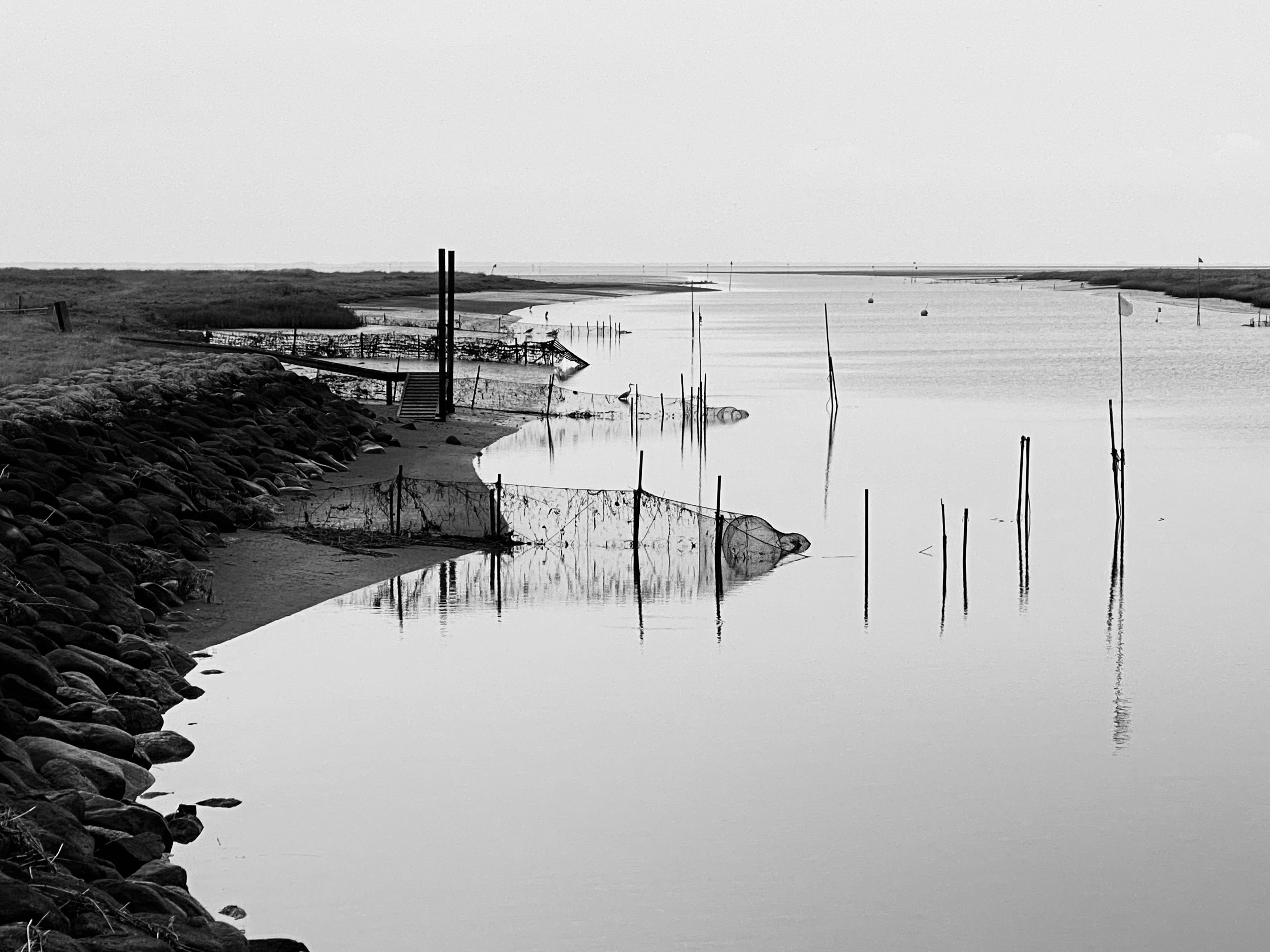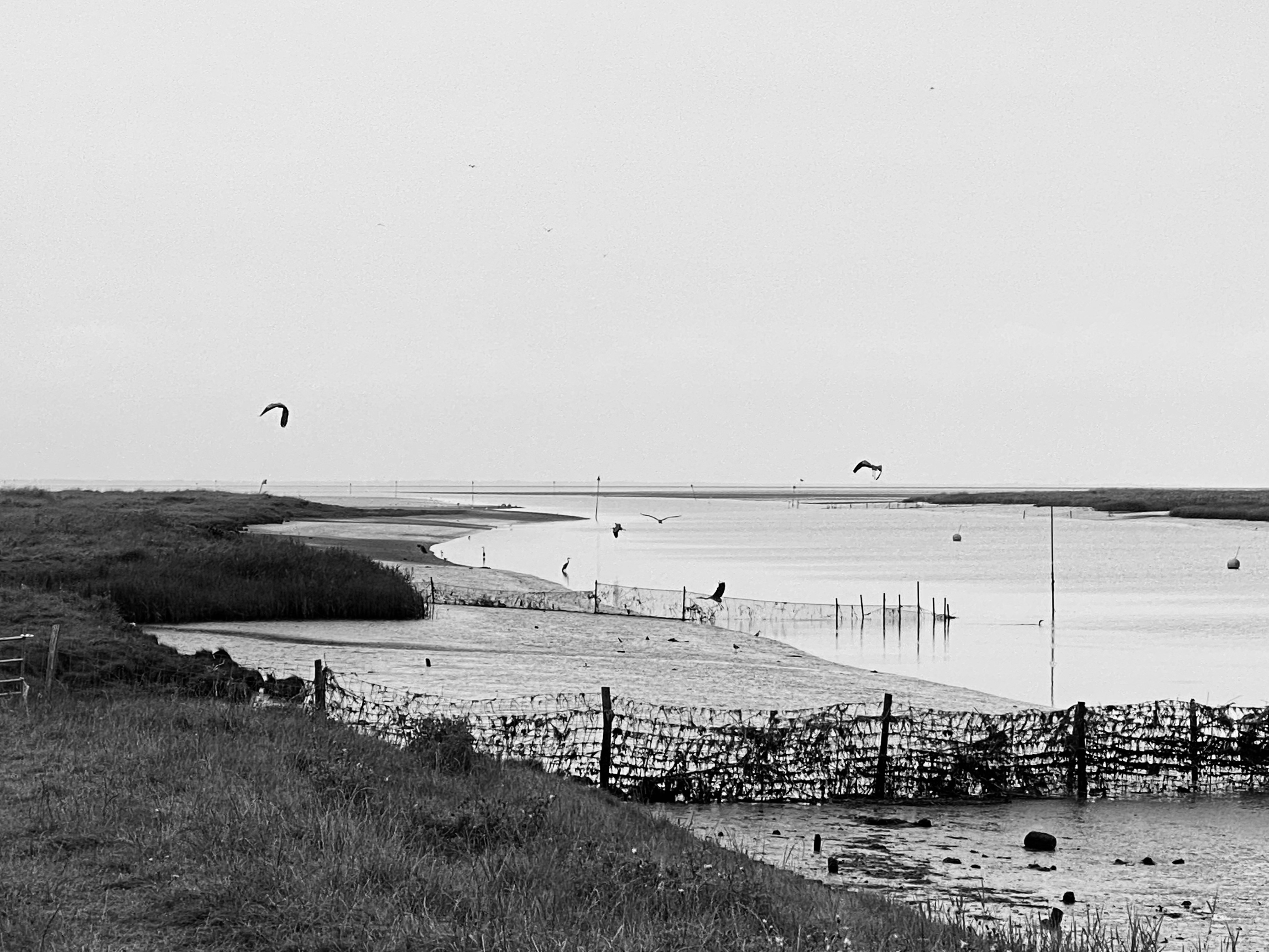 We pitched up at a great site at Kammerslusens where our morning coffee and stroll among the numerous herons, a marsh harrier and other birds we can’t name was a delight. A wide estuary wetland area leading to the Wadden Sea and ultimately The North Sea, it’s a bird haven, with a starling murmuration at dusk too, the birds landing on the unharvested wheat fields.