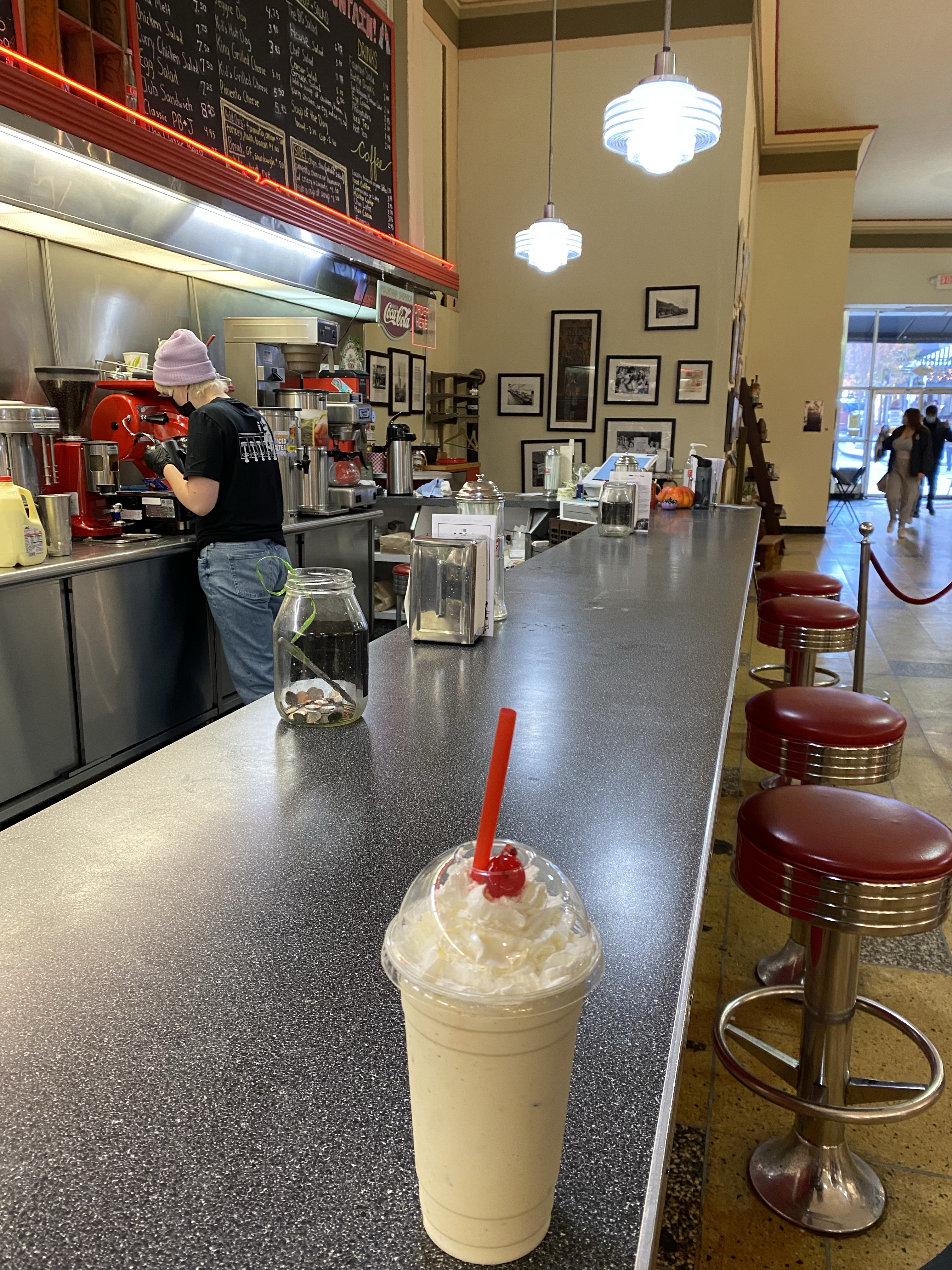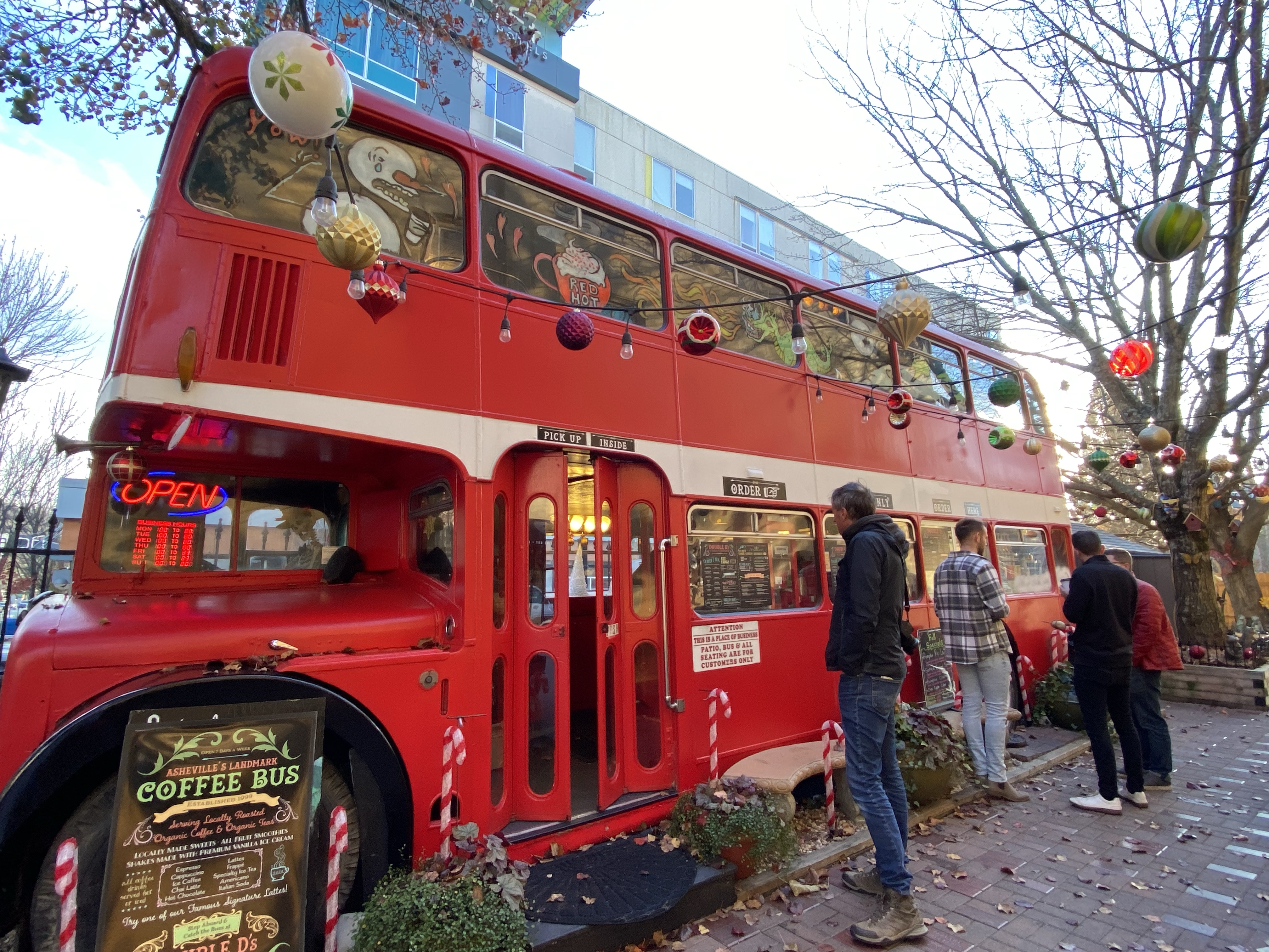 We arrived at Asheville, it came highly recommended by Karen, and a day or so here was well worth it. A very arty, bohemian place it’s becoming well known for its micro breweries (there’s so many across the US). Asheville is nestled among the mountains, is reasonably modern and close to the Vanderbilt Country Estate, the largest privately owned home in the US, in Biltmore. Lots of art shops and eclectic hippy outlets, restaurants galore and tourist tat. One waitress described it as a place full of ‘Trustarians’ (wealthy people pretending to hip off their trust funds, we like that!) There’s a ton of street art, creative windows (we like the Freddy Mercury one) and Woolworths, well not as we know it. It is now a shared space gallery/arts & crafts space but with a old fashioned diner style milk shake bar to put on a few pounds for! Bustling with life, Asheville was a superb stop. I stopped Nick trying to buy a bus ticket…