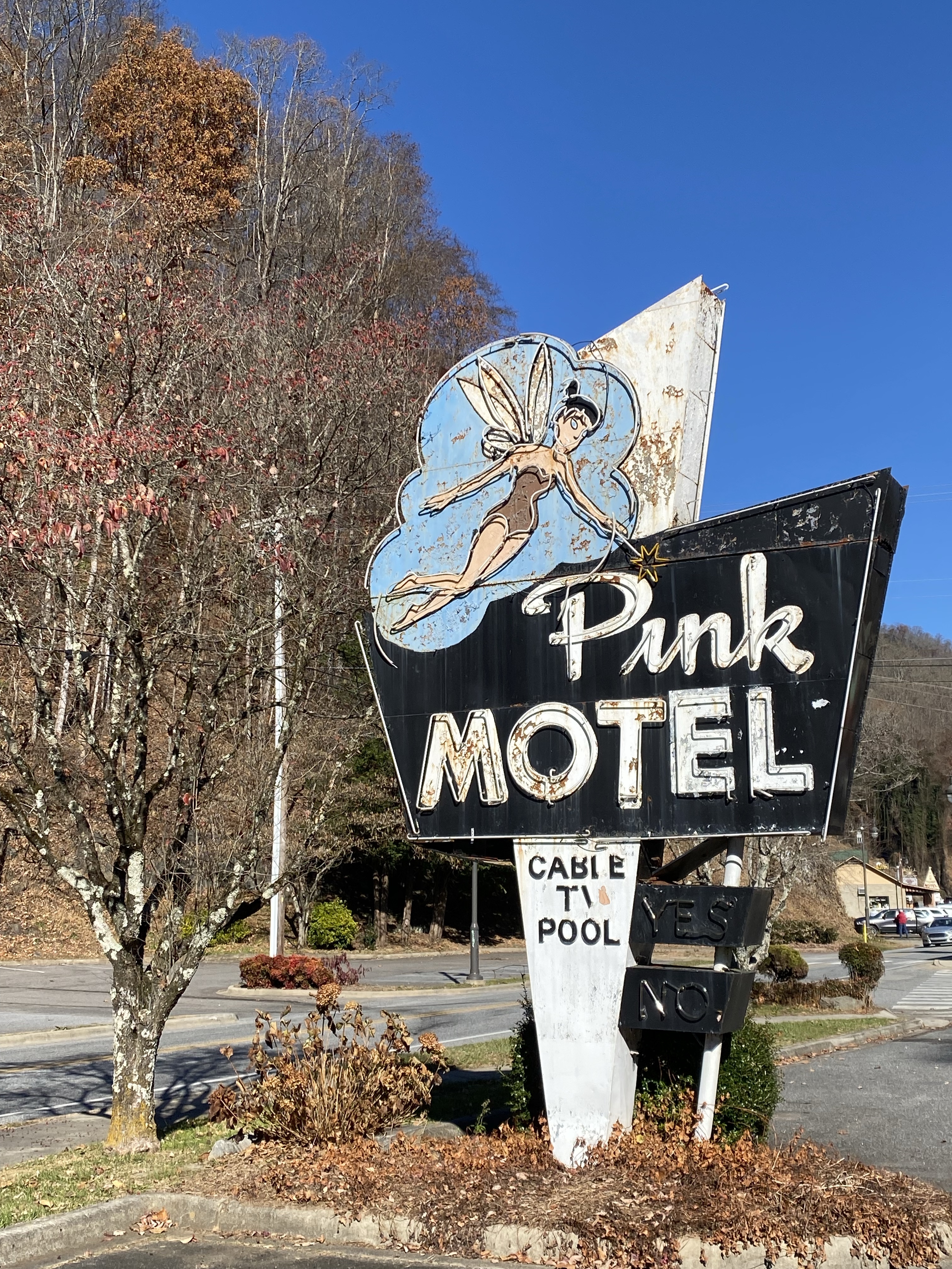 We saw Black Bears! Amazing, we saw a mother and three cubs and we didn’t need our Bear Bell 🙂 We spent some time up in the North West part of Smoky (short form!) known as Cades Cove. Following the river edged road toward Gatlinburg, Tennessee, was stunning. The shallow waters in the dappled sunlight, mini rapids and fall colours were glorious as we then headed into a different landscape of flatter farmland. An area once inhabited by native tribes, there remains original buildings and churches to explore from settlers times. It’s truly lovely, the only drawback was Thanksgiving, it brings everyone out. They all disappear in the evening though, to their turkeys and cakes. Knowing everywhere would likely be shut we had emergency supplies of a microwave mac’n’cheese and some tofu turkey to have at the hotel. Thankfully we did find somewhere so we joined the local police for dinner in an oriental establishment for some sushi! I’m not kidding! A fine way to end the Smoky & Blue Ridge Mountains part of the trip but to be honest, we’ll be back here in the van.