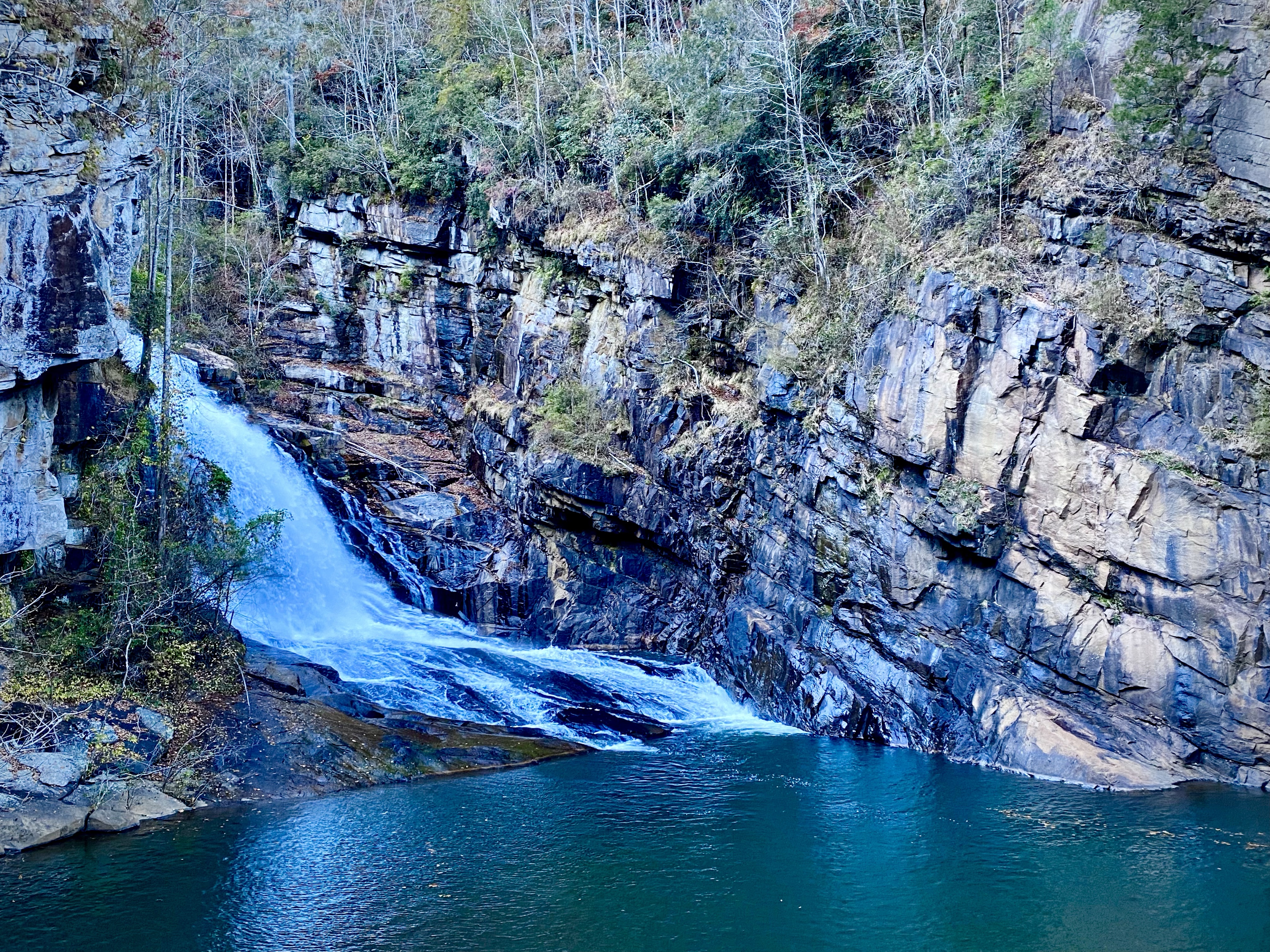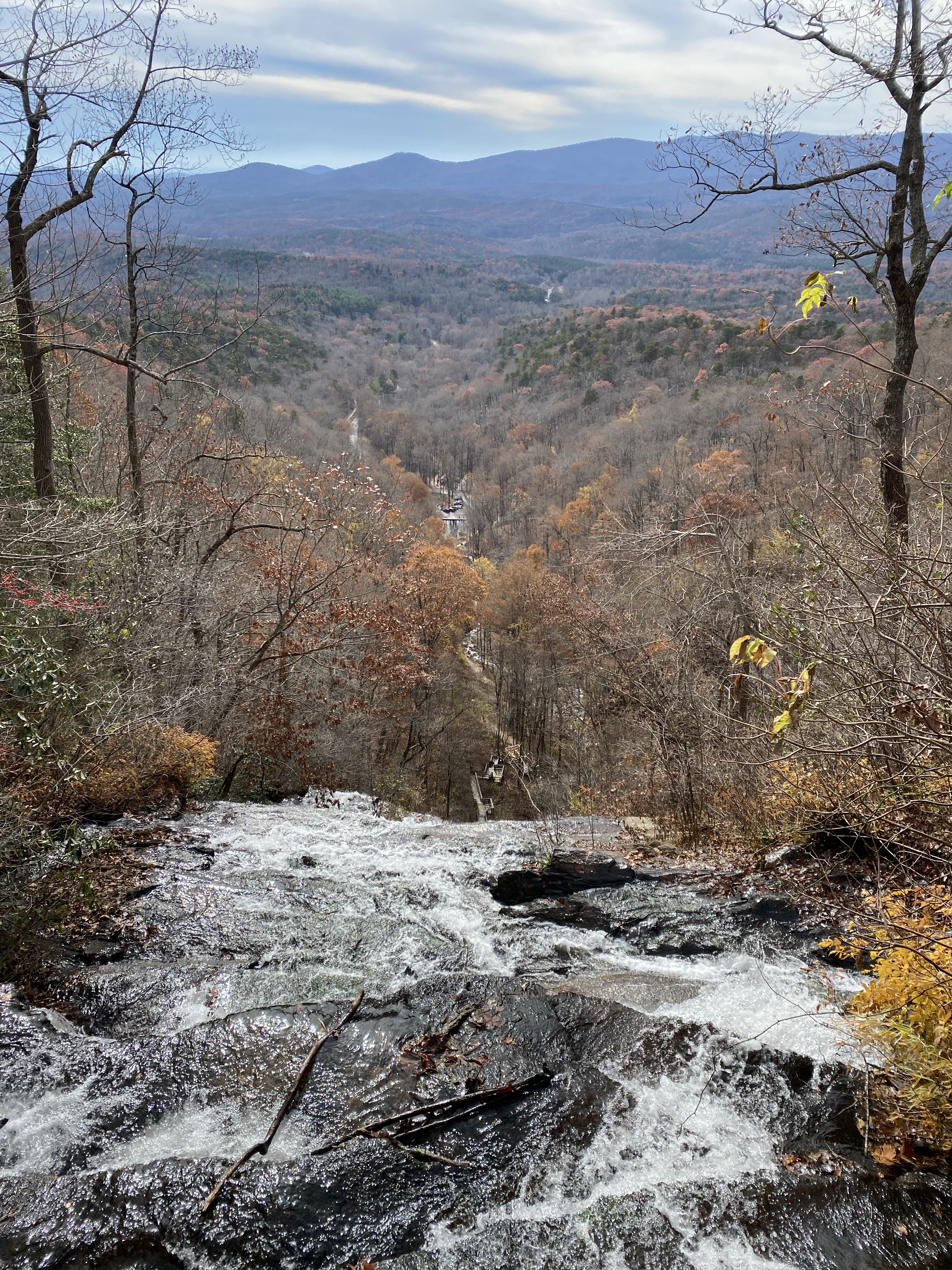 The sweetly named ‘Popcorn Overlook’ provided another perspective on the landscape as it was a long view over to the Smoky Mountains from the opposite direction to where we’d been and gave us a real sense of the vastness of the landscape. A solitary hike in Moccasin Creek State Park to Hemlock Falls was serene and grounding. The lightly footprinted trail followed the numerous cascades and flows all the way to the fall itself. A quiet and sensory moment to ourselves among the rippling sounds, birdsong and leaf crunch underfoot.