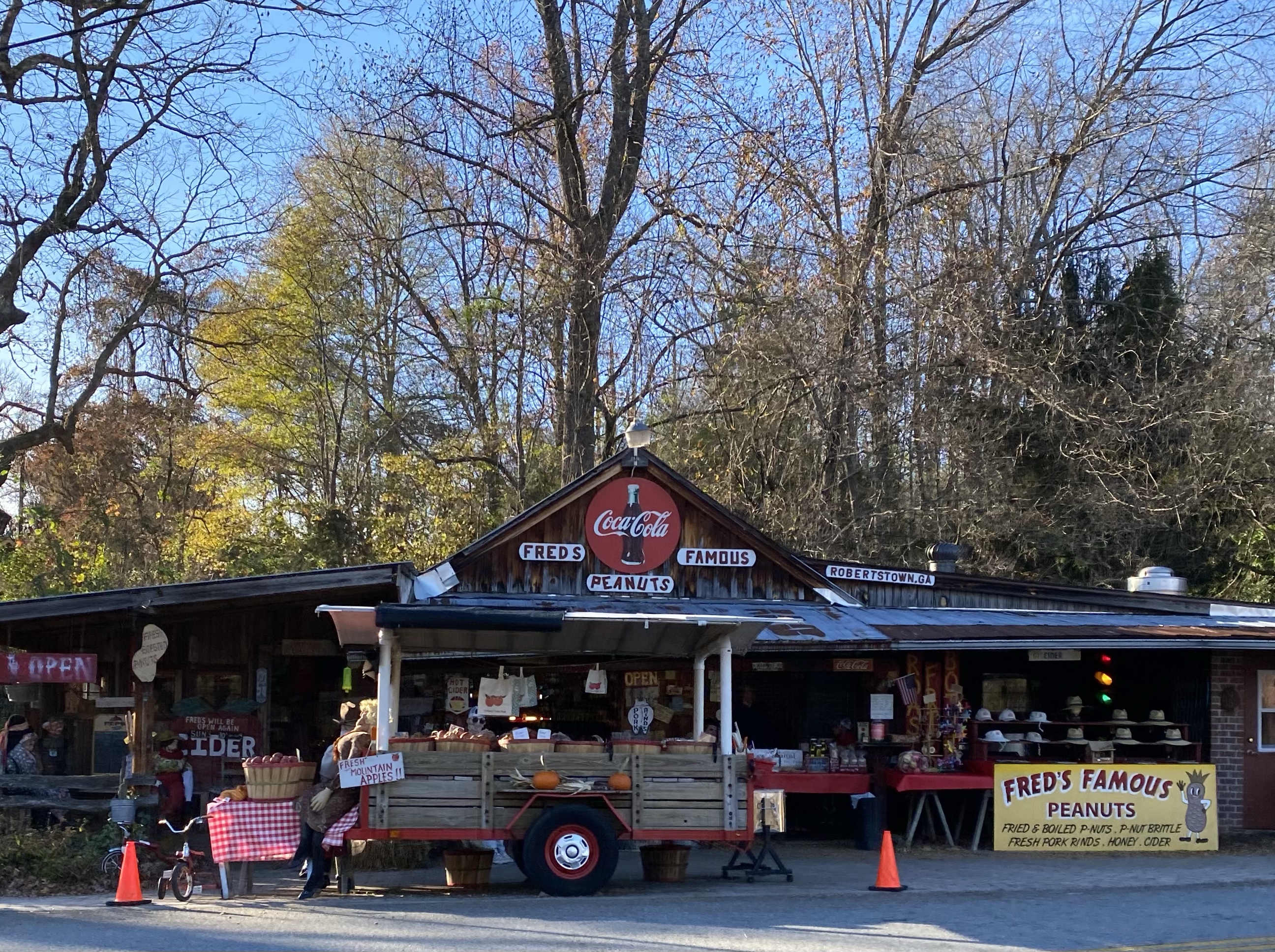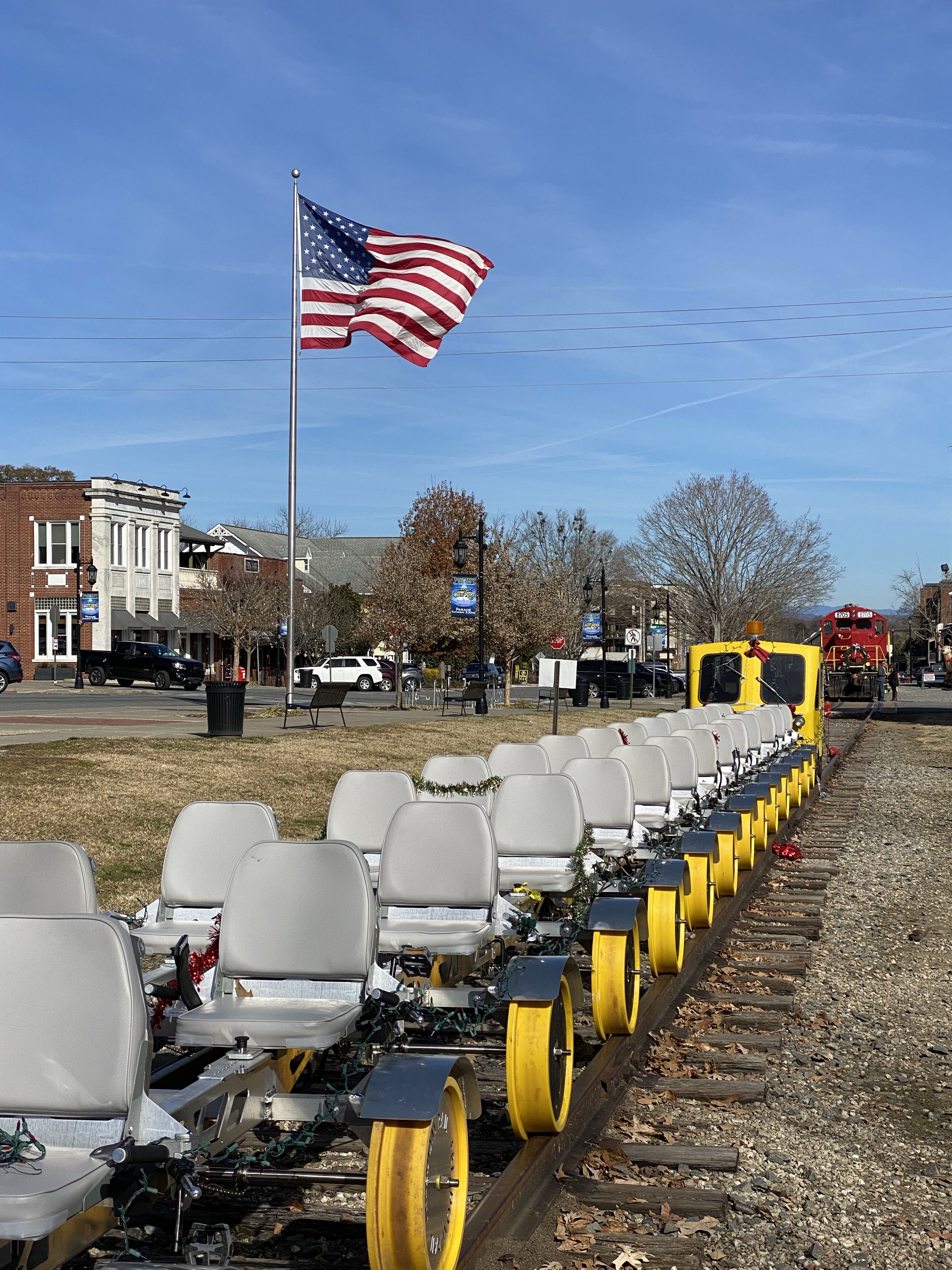 Amicalola Falls State Park, which is also the start of The Appalacian Trail for many, was our second major adventure (I’m trying to be positive about the endeavours!) 5 1/2 km is fine to see a waterfall and amazing long views but it’s the 604 steps as well that’s the killer! Sore knee’s aside, it was genuinely worth it and the hike back down through the wooded areas with not another soul was a blessing. Only squirrels for company and stunning leaf kicking leaves, the colours of autumn and the nut caches for winter. The town of Blue Ridge was an overnight, a tad touristy and not as authentic or charming as Sylva, but it had old trains in the station and lots of vintage cars. One of the trains was people pedal power! Hope they get the numbers, tricky for two!