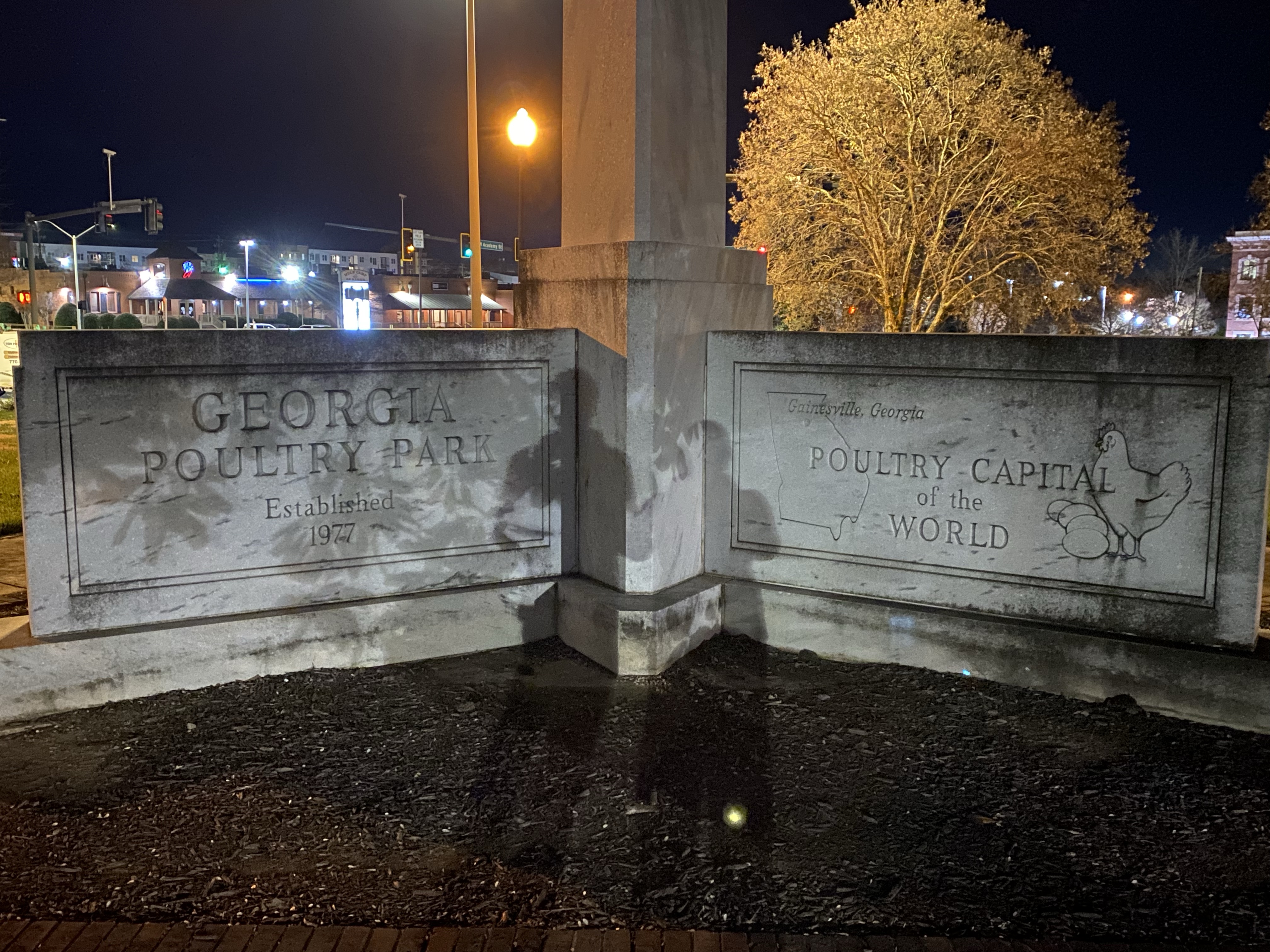 Having done so many falls in The Fall we decided a change of tempo was in order so headed in the direction of Atlanta. Quite a distance so we stopped in Gainesville overnight, apparently ‘The Chicken Capital of the World’, or so it claims. There’s even an obelisk with a chicken atop to prove it 🙂 Having found somewhere that had something remotely like vegetarian food we thought we were in trouble as even Santa carries a knife in those parts….