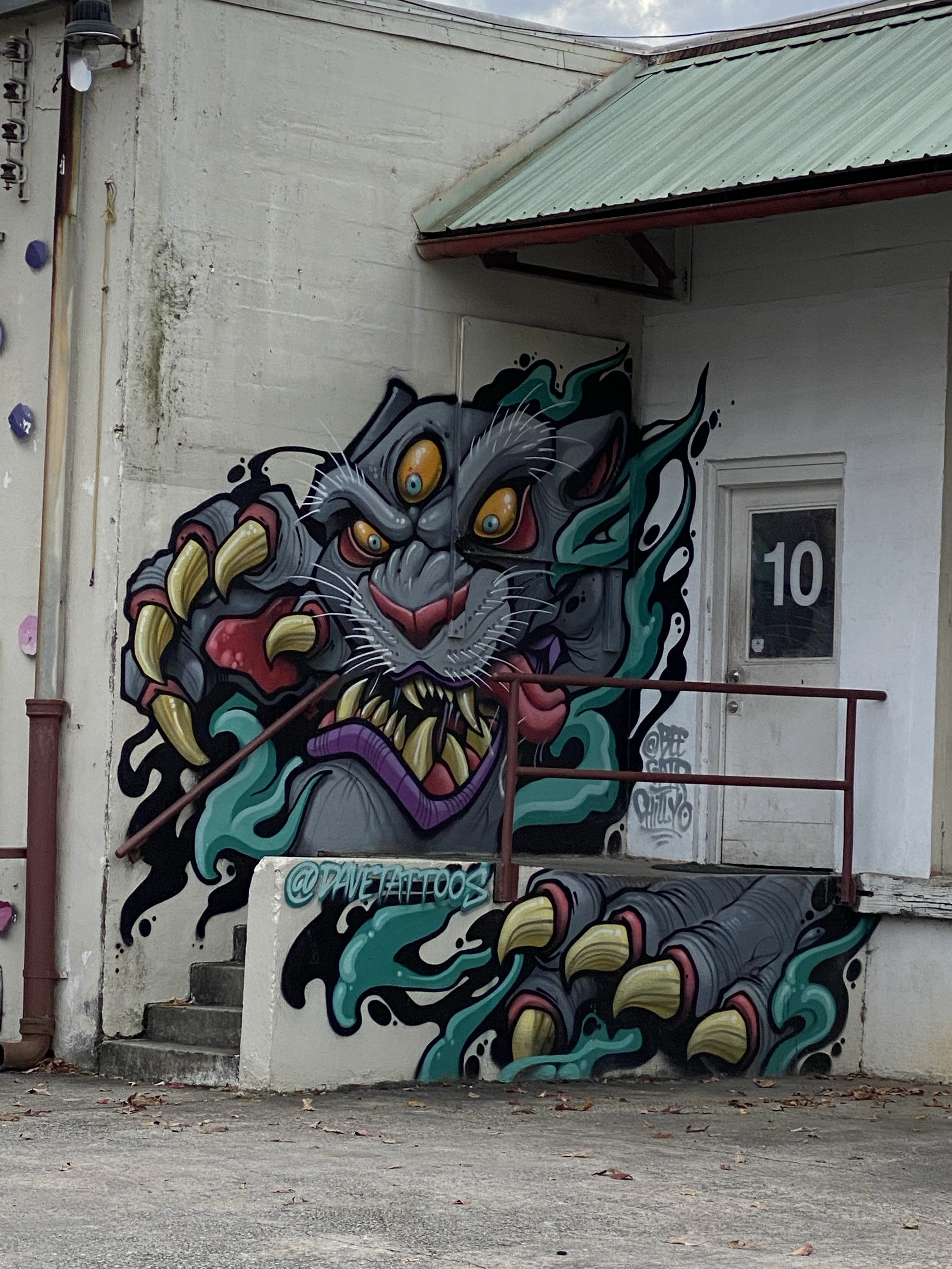 A complete change of scene from the previous day and the trail, Atlanta’s 22 mile ‘Belt Line Trail’ is accessed from Ponce City Market. It started life as a Sears warehouse and store before being engulfed by urban sprawl and closing. A few owners later, it is developed into swanky apartments, high end shops and food outlets and seems a destination for the trendy (we didn’t fit in!) The Atlanta Beltline is considered similar (but not really a comparison) to New York’s Skyline, it’s a walkway along old rail tracks, past historic warehouses (converted) factories and new housing, and it seems, is home to some great graffiti artists. The beltline in one direction, goes to the so-called Historic Krug District which is currently undergoing a vast amount of gentrification so to be honest, was underwhelming. Dinner that evening was a burger from the fantastic “Slutty Vegan” overlooking the lights of Atlanta followed by drinks at the local Irish!