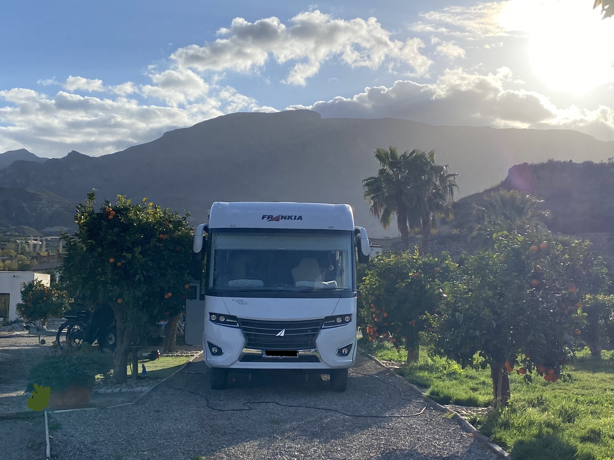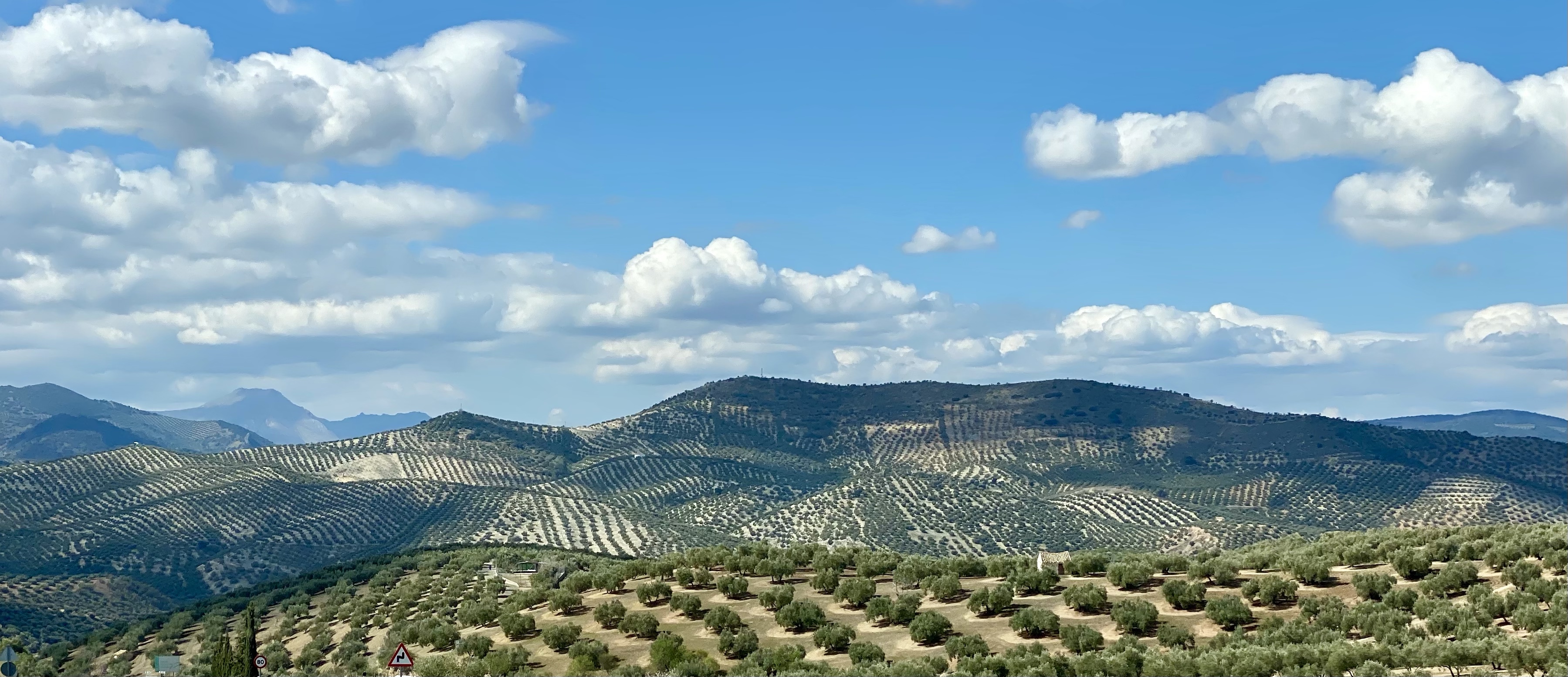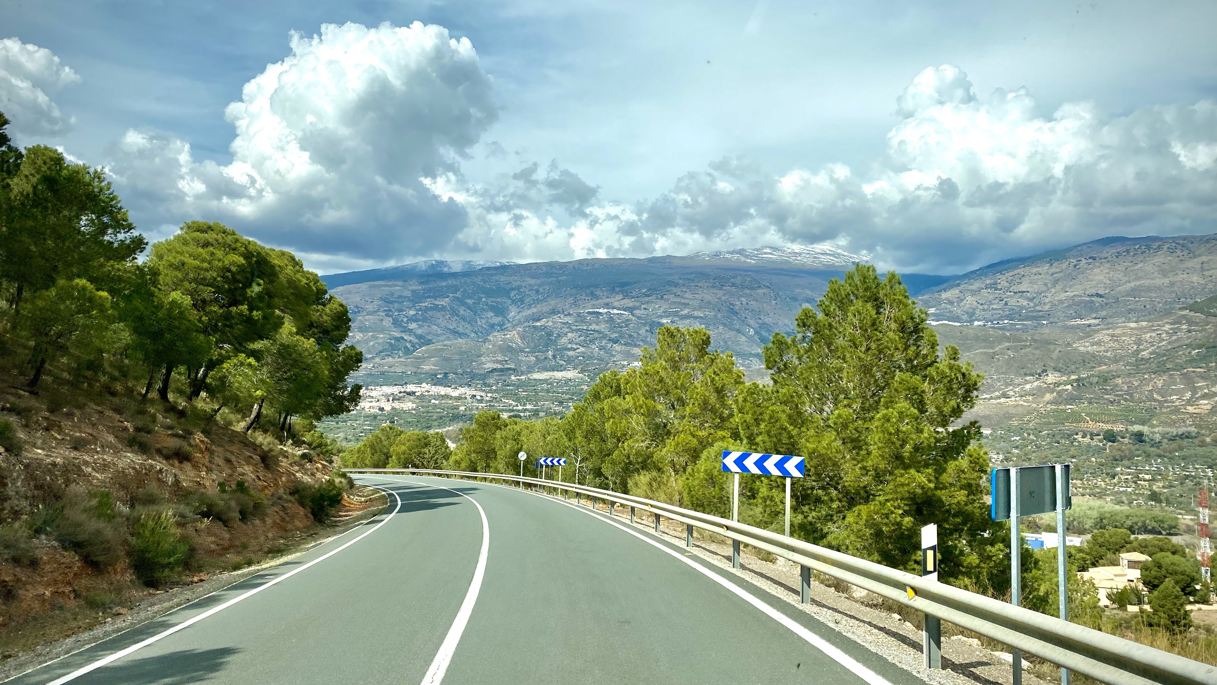 Heading west through the mountains of Sierra Nevada we passed one of last years stops at Orgiva heading to Alcala la Real. The landscapes changed again, a long and twirly route through valleys eroded in a way that they looked like fins of rock followed by greener agricultural areas and snow capped mountains. Getting past Granada there was a distinct shift from the small co-operative olive farming we’d been seeing to it being on an industrial scale. Millions of trees in straight lines looking like neat pin cushions. We wondered if they needed to import bee’s like the Americans do in California, to pollinate all the almond trees. We had visions of Queen Bee in her private jet flying over, the worker bee’s travelling by DHL cargo just to gorge themselves in Europe for two weeks! We do have some serious conversations at times, piqued by the wonder of travel, like how are olive trees farmed on this scale (You Tube is good for the answer) or the life cycle of an Almond, when looking close up at the flowers. Broadens the mind as they say!