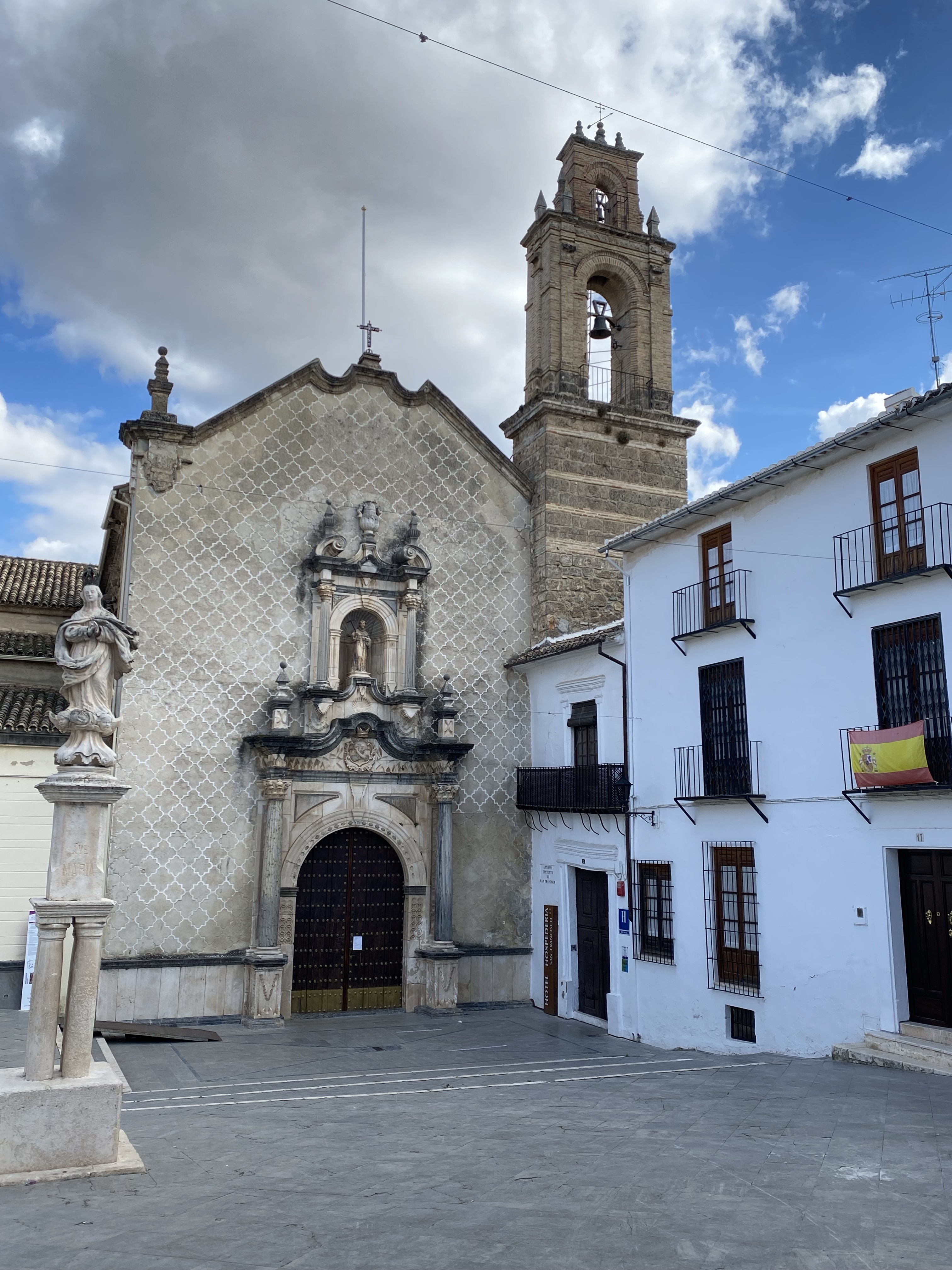 A fantastic place off the normal trail is Priego, which knocks a Baroque punch. It has 7 Baroque Churches in less than a half square mile although, being Sunday, it seemed its the ugly modern one that’s open for worship. Curious! Clearly a town that proudly celebrates Semana Santa, every church has information about it’s role in the events, detailing the rituals, sculptures and symbols, even down to the ‘Nazareno Penitents’ dress-code and timing of their processions. We are seeing this information everywhere. The architecture was very different all over the town and there were quirks everywhere. There was one set of stairs we weren’t prepared to climb though!