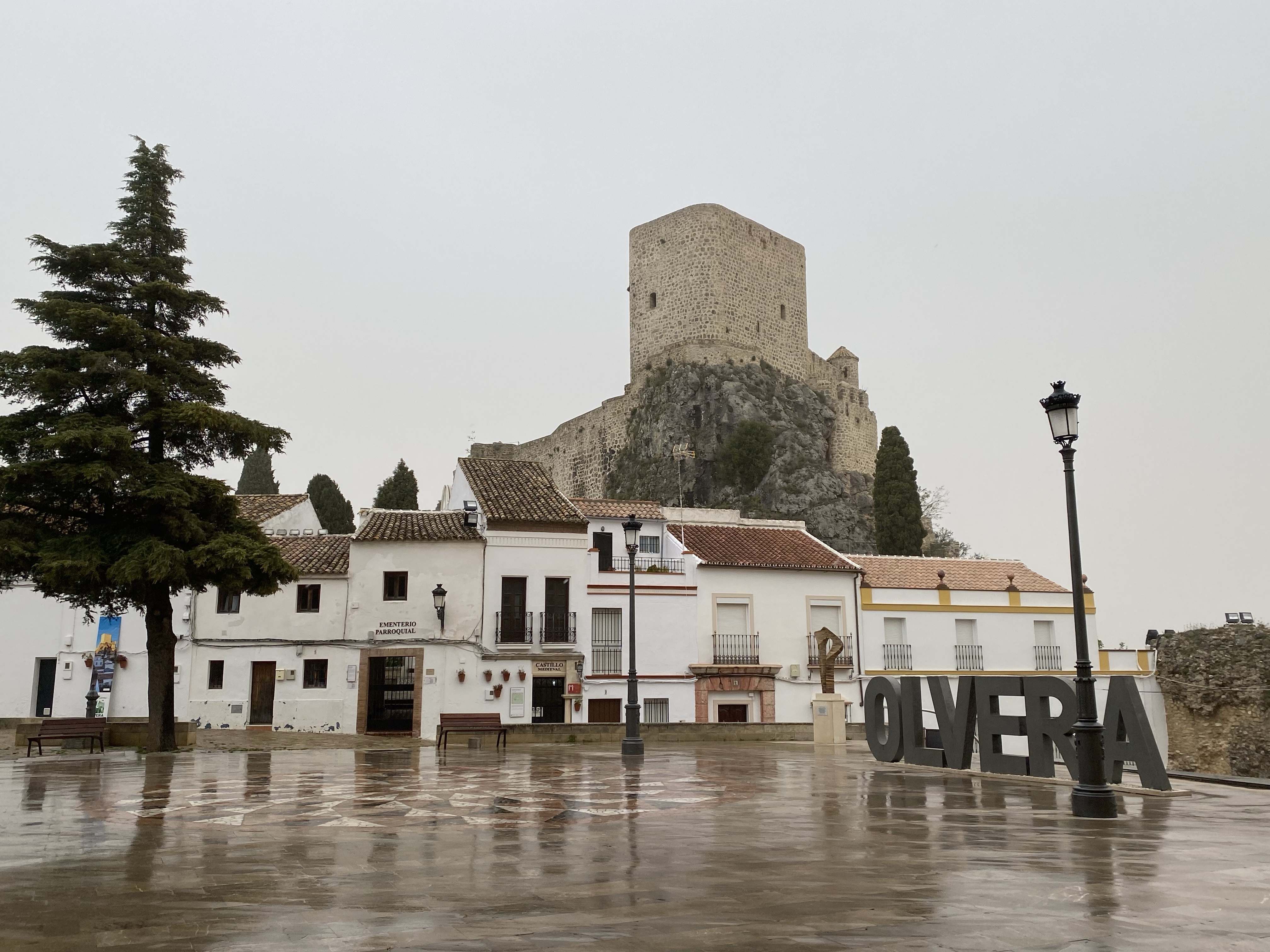 Olvera is not only visited for crochet classes but for one of the most stunning Via Verde’s in Spain. The Via Verde de la Sierra is a 38km ride through mountainous landscape from Olvera to Puerto Serrano and crosses the provinces of Cadiz and Seville. Not wanting to be outdone by Dave and Lesley who recently did it, we set off, in the drizzle, to check out the 30 tunnels, 4 viaducts and converted stations. At one, we found that maybe Elvis was still in the building even though it was all shut up ;-0 …. (see pic, it’ll make sense) Griffon Vultures were soaring above the craggy rock of Sierra de Lijar and the Rio Guadalporcún was swollen and finding new ways to flow, its banks burst. The landscape was lush and green. Thankfully, there was a super cafe at Puerto Serrano. We did the chap a favour and sat outside, not wanting to ruin his interior with splats of mud. When he wiped down the table for us we did ask if he could do the bikes too… maybe it was my Spanish but he just laughed! On our way back I decided I need to get into a different saddle, Liz and Julia have already given me posture feedback! Anyhow, there’s a reason it is known as the most picturesque Via Verde, it is, even when it’s not bathed in sunshine. Arriving back at the van, weary after 76km, we set about washing the zebra and the bikes!