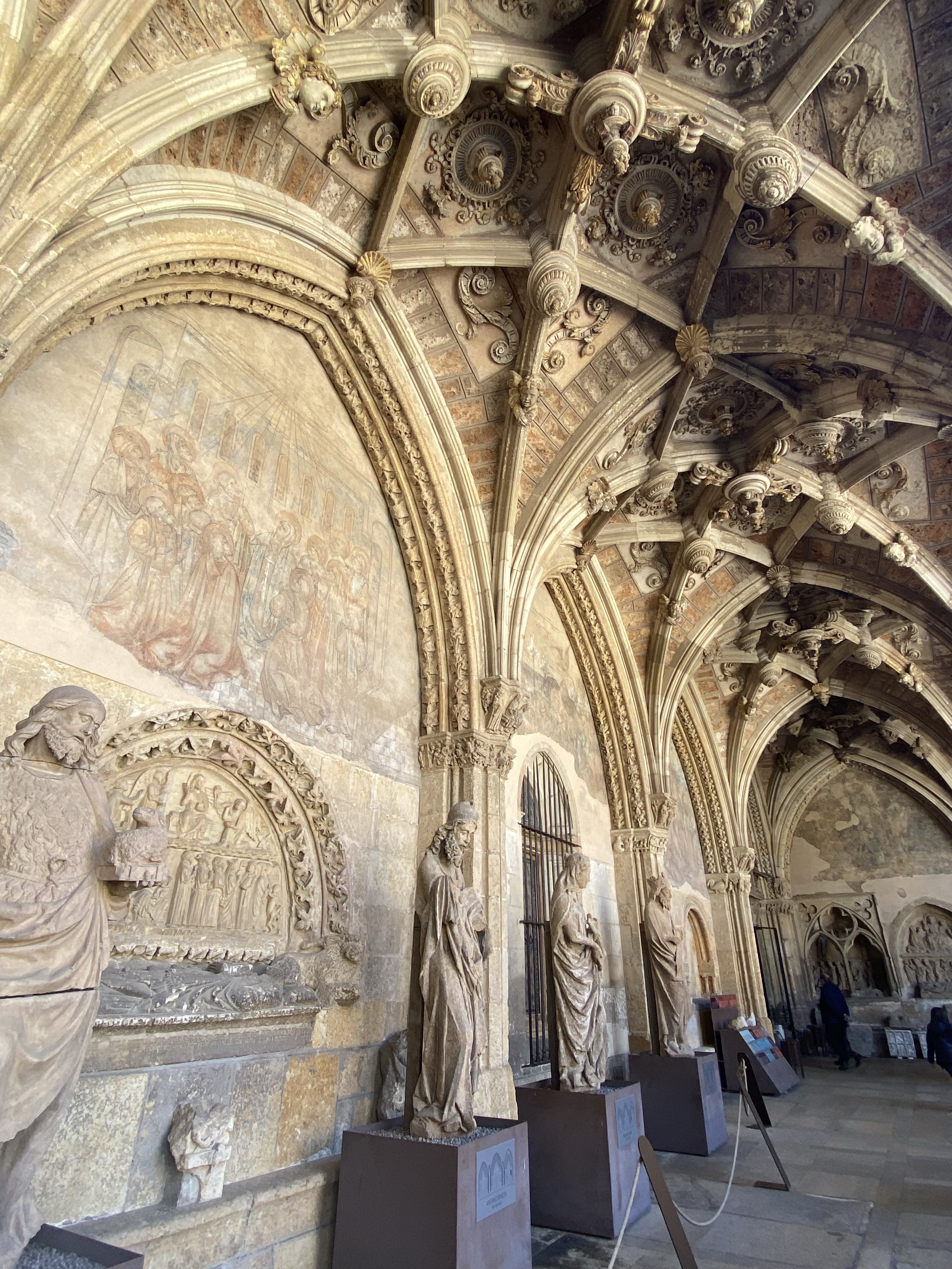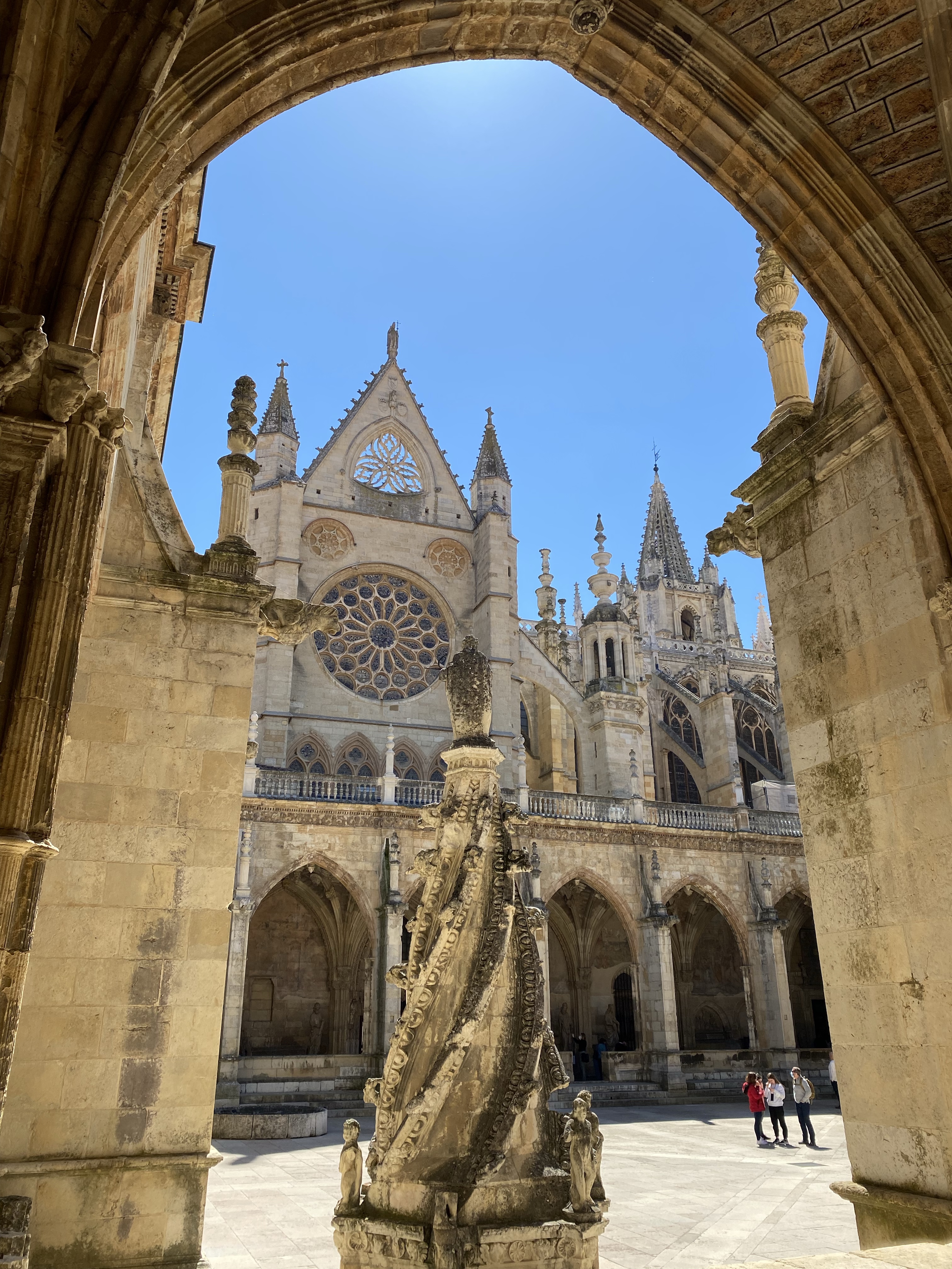 León Cathedral was an immense structure, Gothic exterior, beautiful stonework and amazing stained glass windows, not seen before on this scale anywhere else on this trip. Being very wide with traditional naves it really was a glorious place to sit in for a while. The complex of cloisters built to one side were intricately carved, vaulted ceilings and complex, delicate detailing.