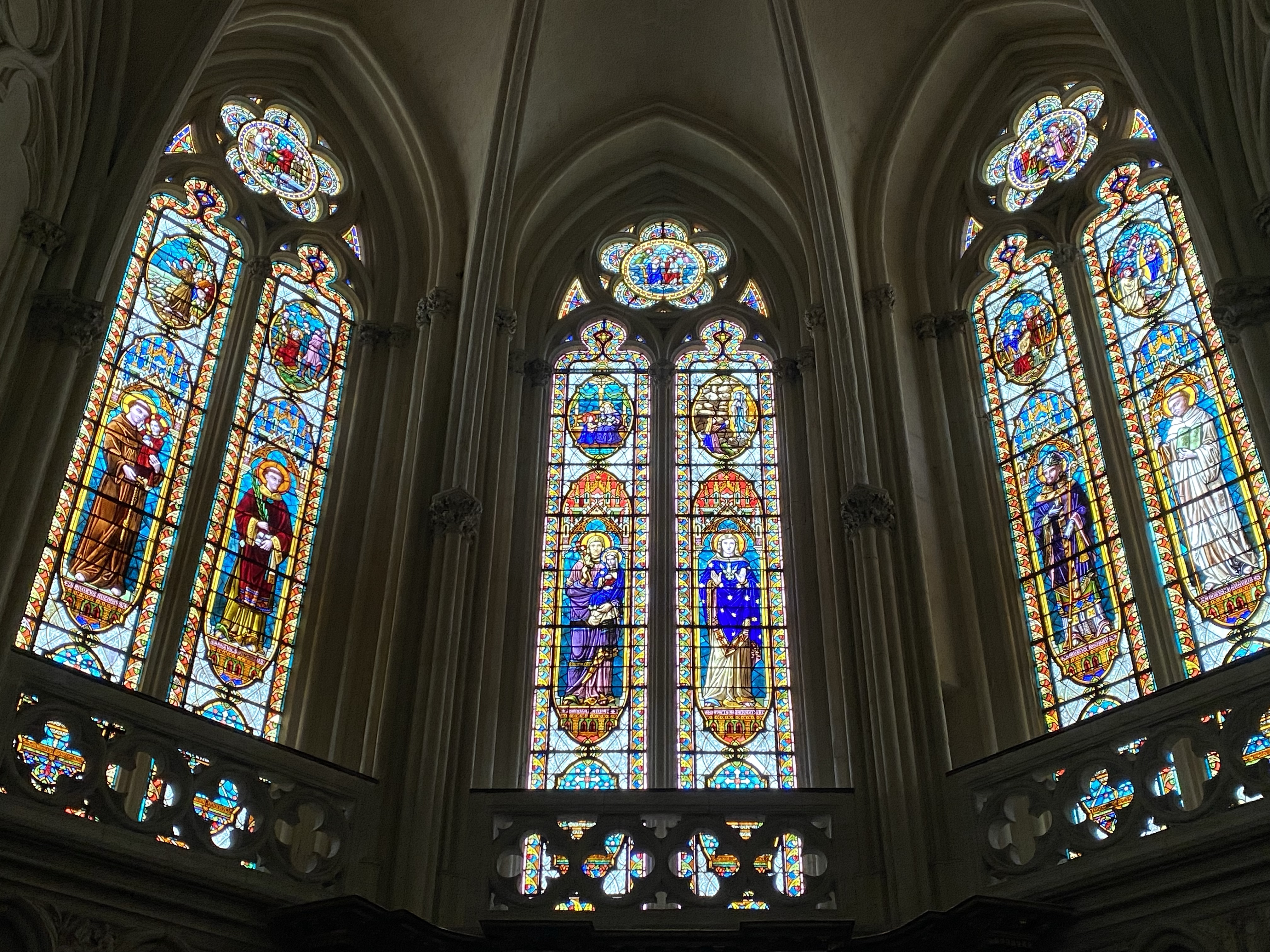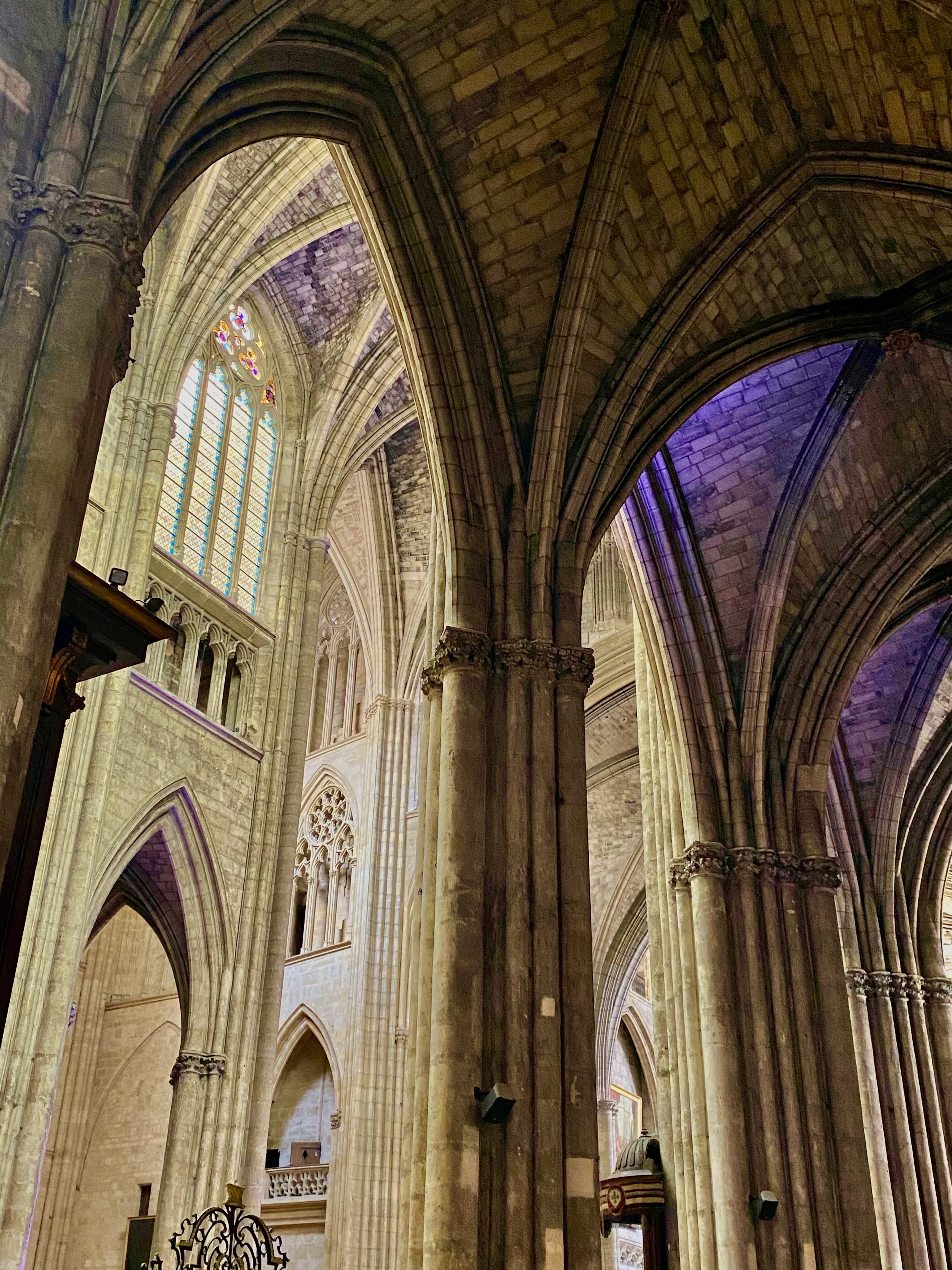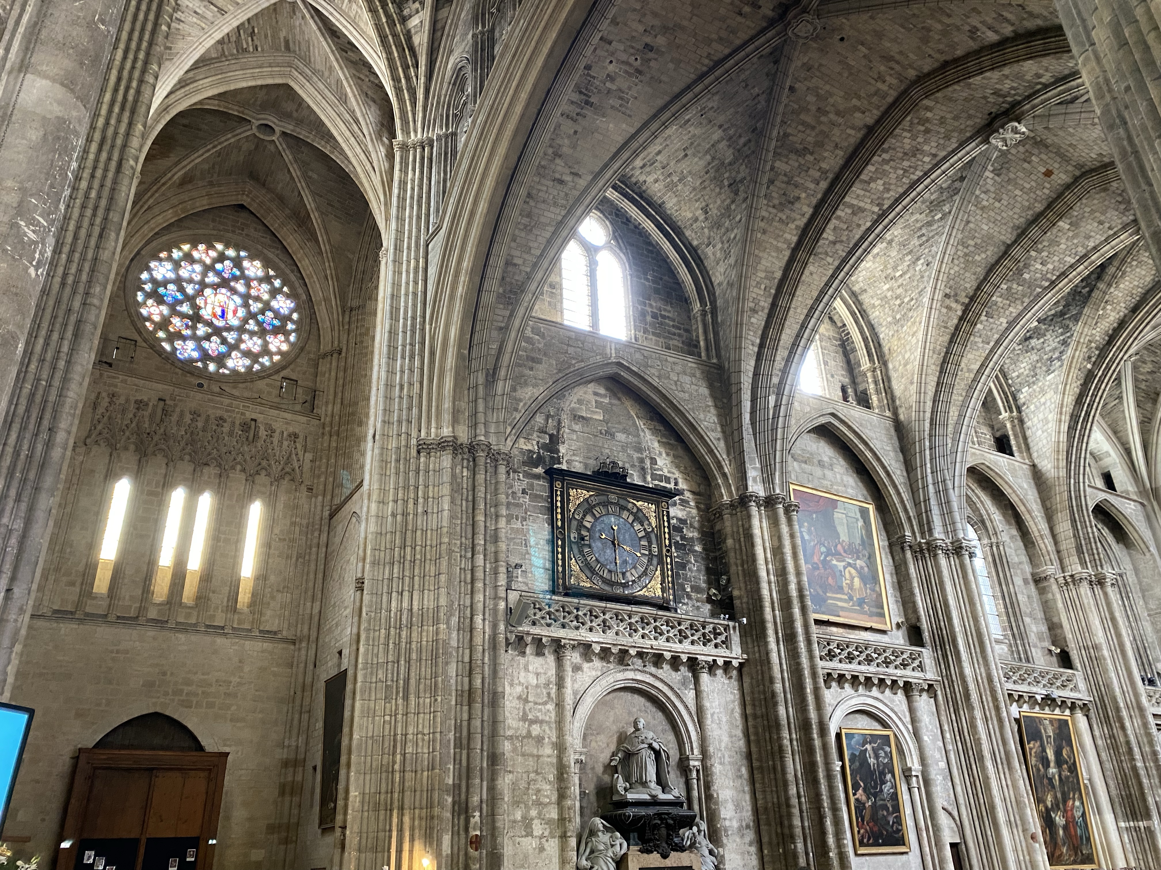 The Cathedral was so different to everything we’d seen to date, primarily the immense use of stained glass windows in the design, the building structure itself, being plain but intricate in its vaulting. It was so beautiful and the windows cast varied light hues across the space. The monumental organ is currently looking for €2m to restore itself/re build. Having never thought about what’s behind the visible external pipes, it was interesting to see the complexity on display. It’s also unusual to see a clock in a Cathedral, so dominant on the wall too.