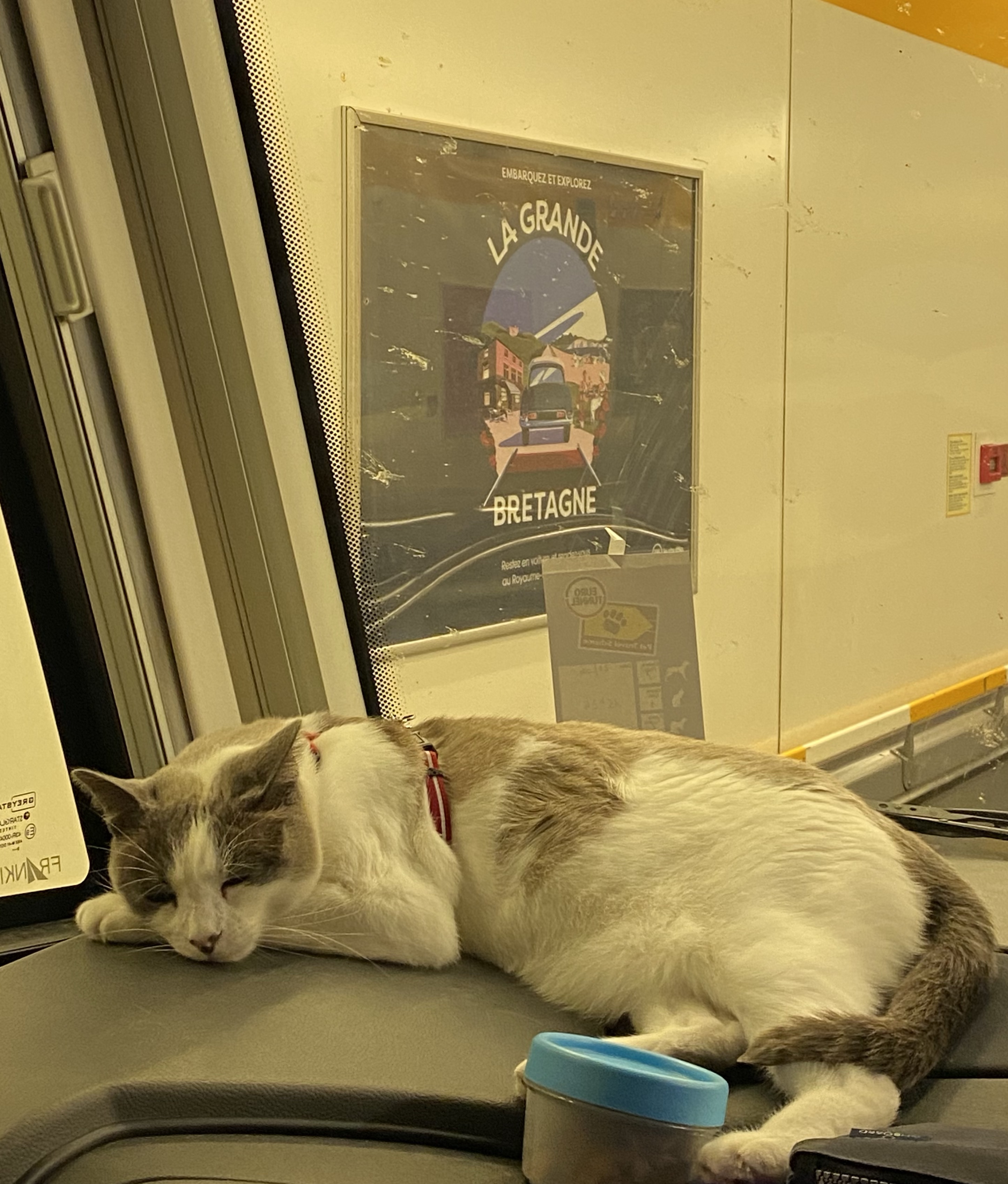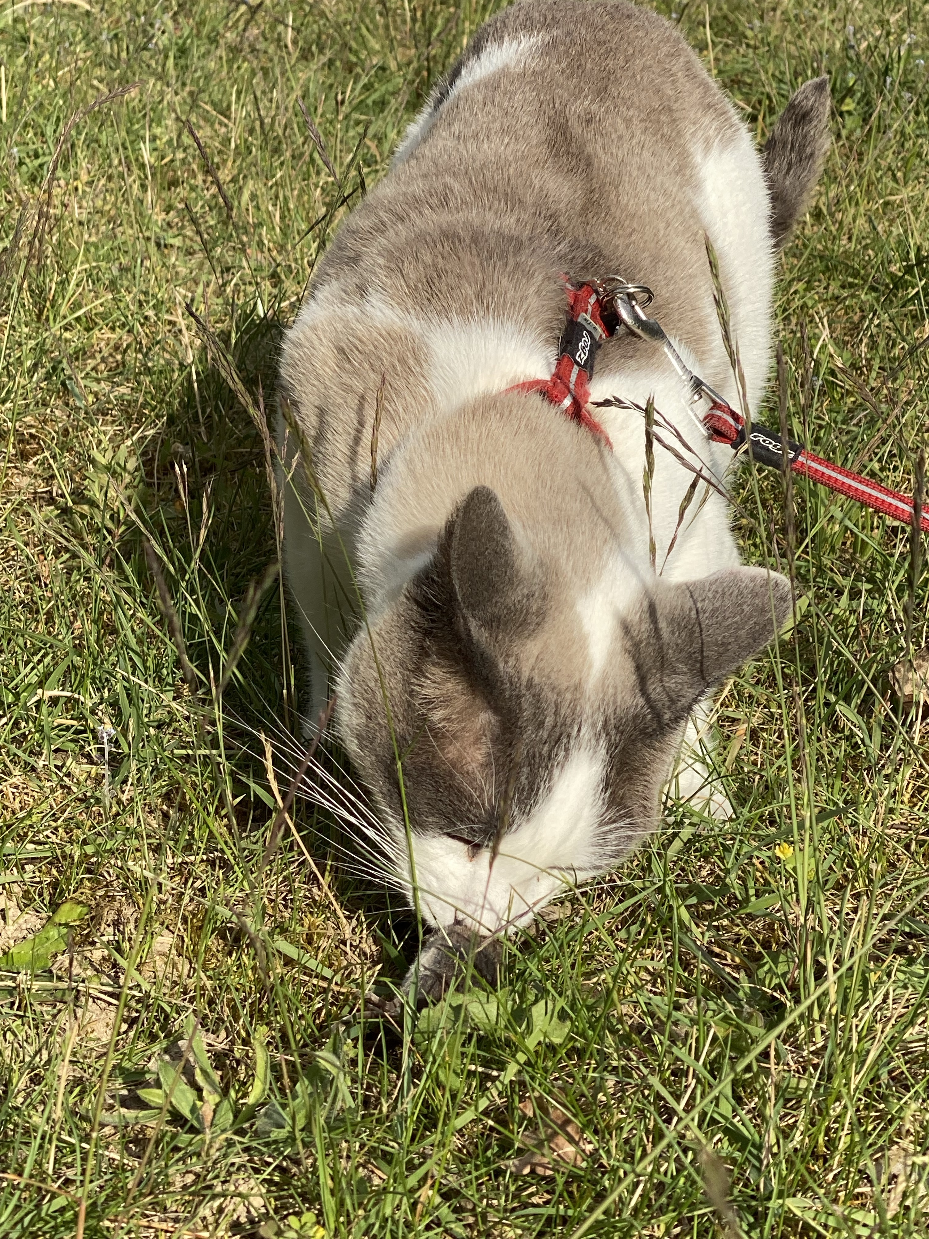 Well, I’ve now turned 5, feliz cumpleaños to me! The pawrents said I’m now in my mid 20’s in cat years so I need to grow up a bit but hey, I learn from them, age is but a number so I ain’t behaving myself for anyone. I aim to grow old disgracefully, mousing ’til I’ve used all 9 of the lives I have! At that place that named itself after grape juice I tried to take a walk but they spotted me, I contrasted with the road surface. On the roads I was happy to see signs that the shop selling mousserolles in Bayonne had ‘survived’ covid. Talking of mousing, they came up trumps with a spot in France and within minutes I had one and bounded back to the tin can with it. I’ve still got it, they think I’m unfit, ha ha! I think the feeder one actually moved quicker than me though, to close the door before I got there with my gift! Anyway, here’s some pictures of me looking pretty, trying to escape (I pretend I’m exploring) and worshipping the long grass. They put me in a carrier bag and took me into a building where they said I was OK, of course I’m OK, I don’t know why they needed to look at a bit of paper to know that, so I was allowed on the train. I’m enjoying being back at the The Ranch, the giant litter tray is handy and the mice have obeyed all covid rules and stayed put… happy times ahead 🙂