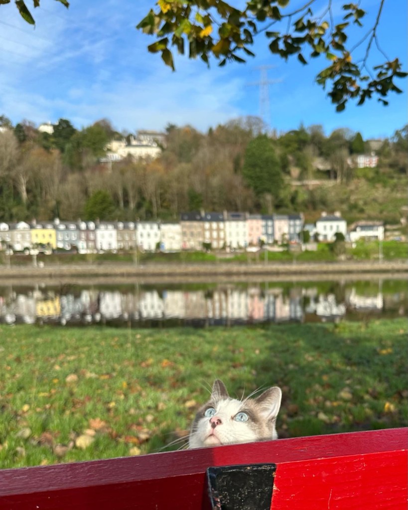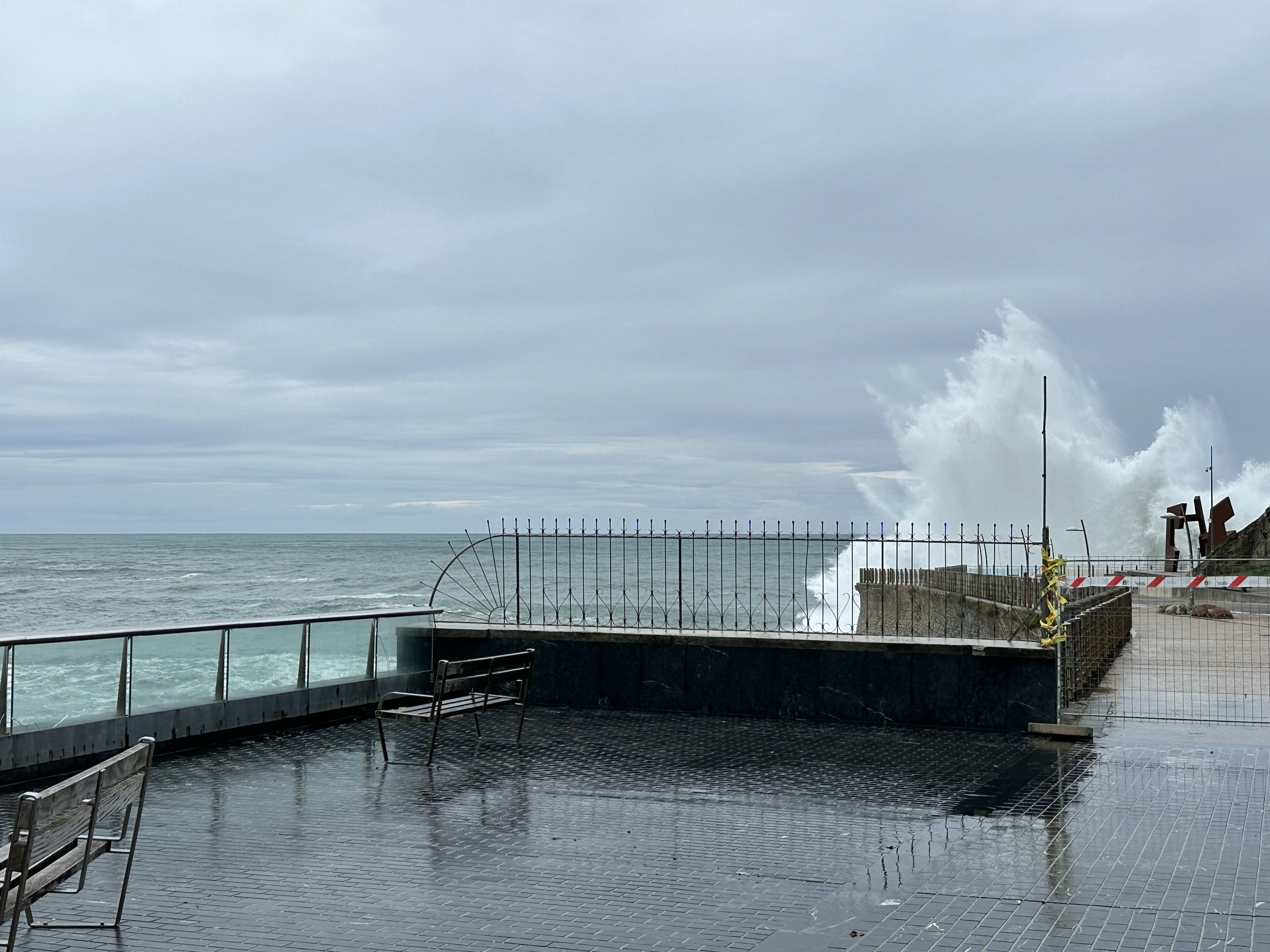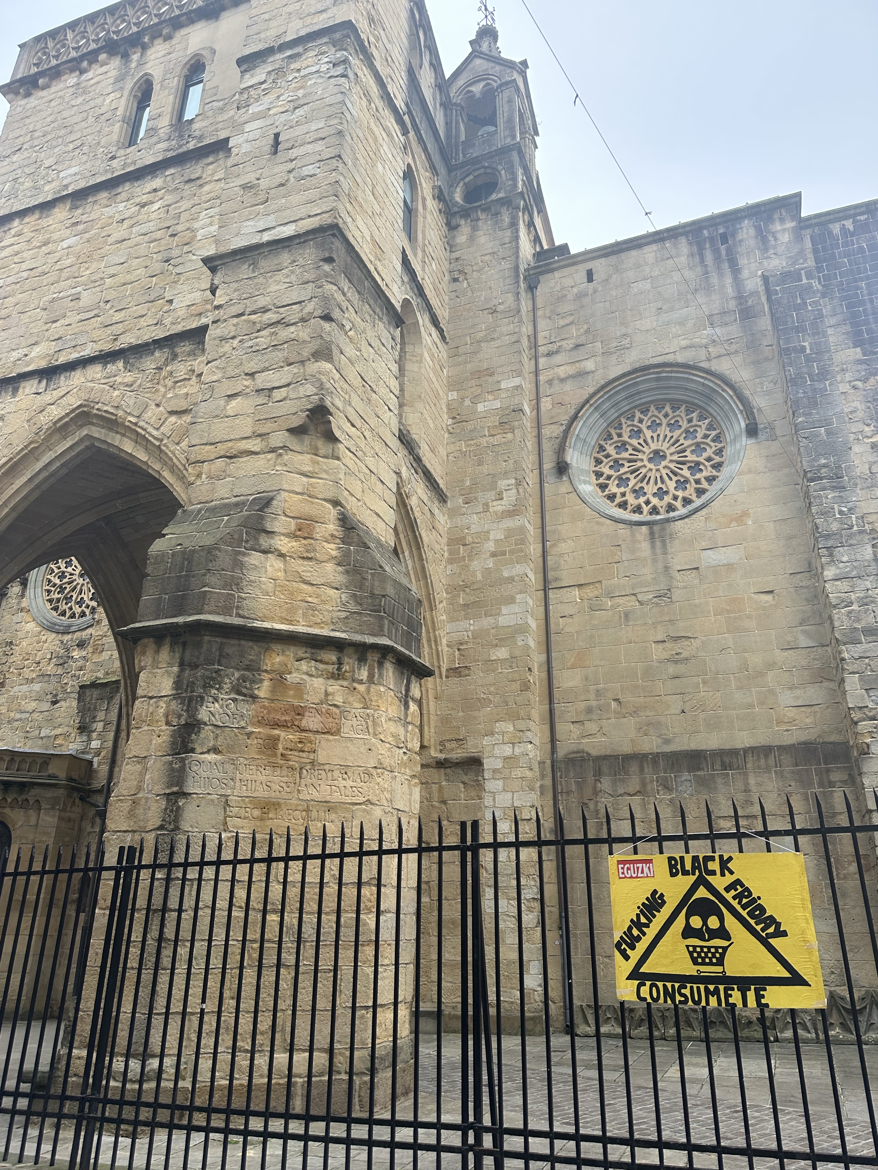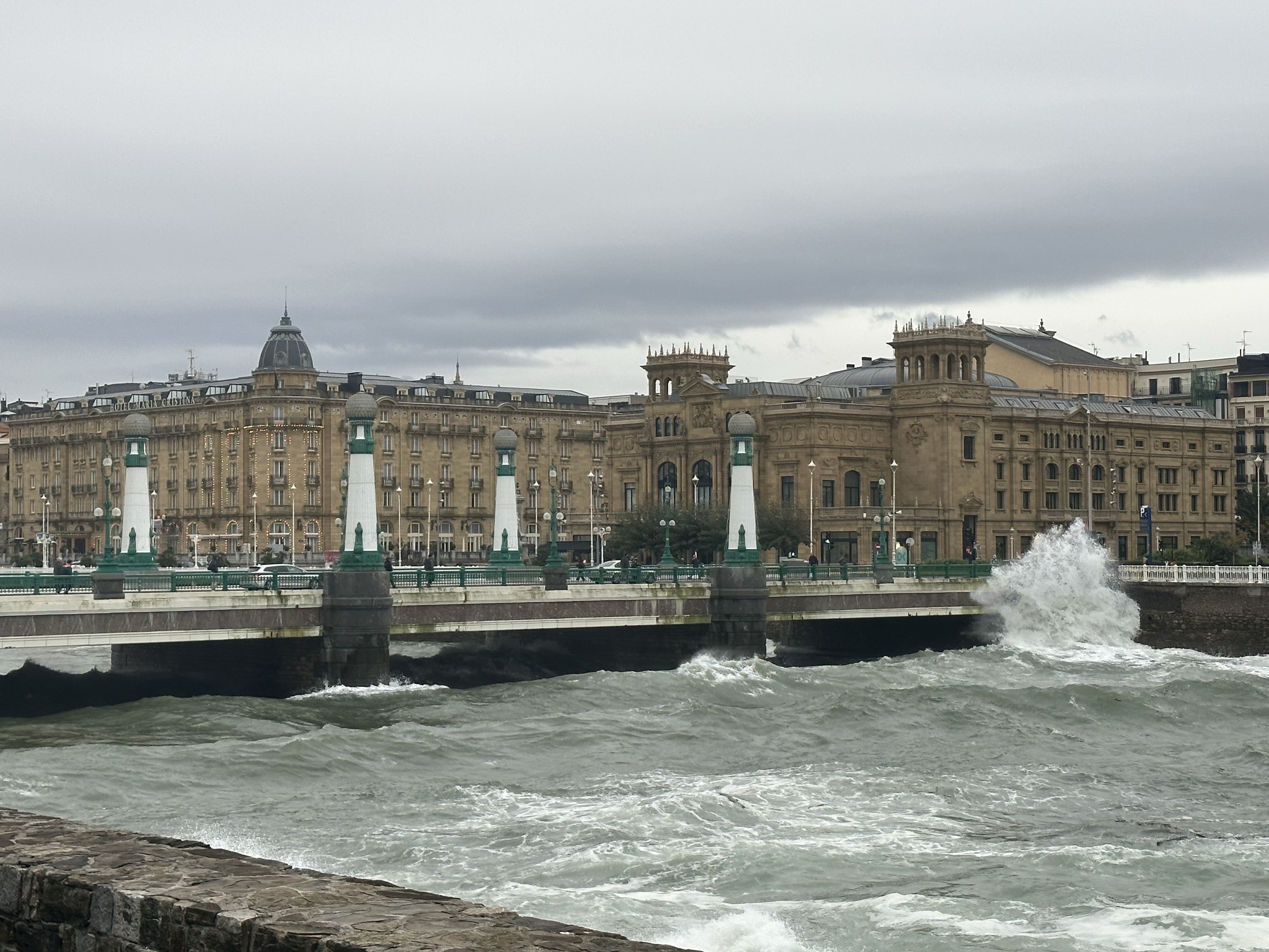 San Sebatian the following day was a little drier which was kinder. We know most people think it odd travelling with said cat, but check out the pic below, we’ve been trumped in the travelling pet stakes! As we walked along the stunning promenade, we watched the waves crashing on the surfers who’d braved it, it was close to high tide. San Sebastian is known for its waves. There’s a couple of areas where they reach incredible heights, soak unsuspecting tourists taking photo’s (guess who…) and conjure oooh’s and aaaah’s from everyone else. It is pretty mesmerising to be honest, being so close and feeling the power of the water. As the tides roll up the river and crash into the Kursaal Zubia Bridge you are seeing an unusual phenomenon. Generally, it was quiet and off season, Christmas lights prep going on and the ubiquitous ‘Black Friday’ posters up in windows (one we felt, did have the right message though) However, it didn’t detract from the gorgeous architecture, ornate bridges and boulevards and bandstands and of course San Sebastian Cheesecake…. delicious!