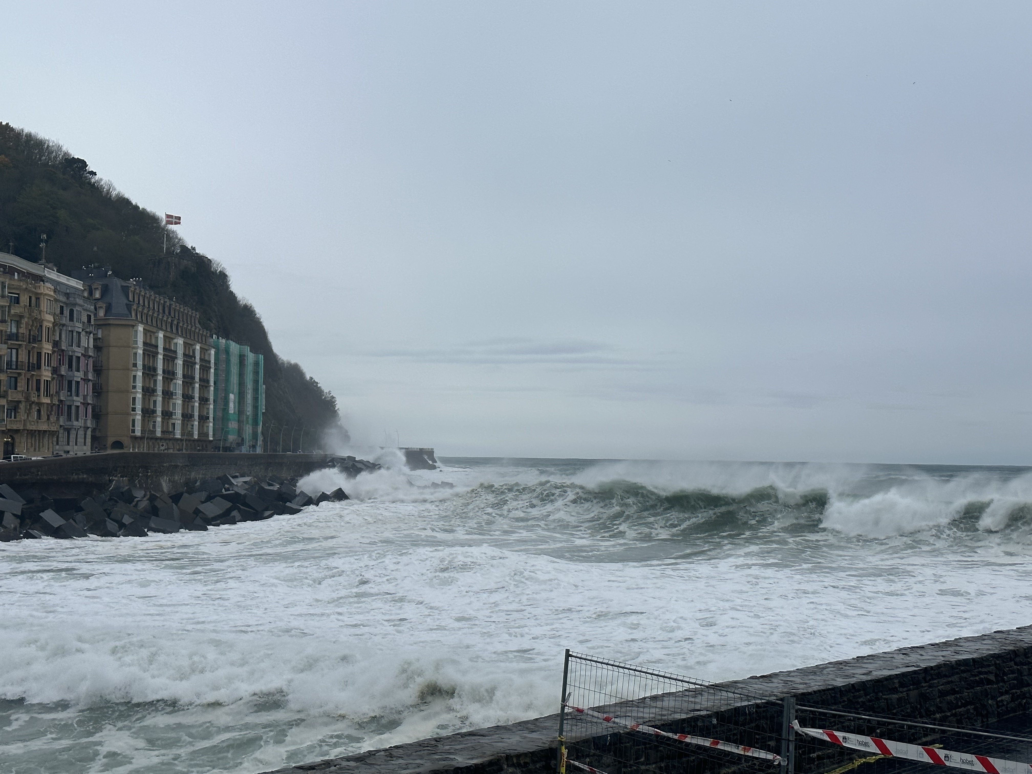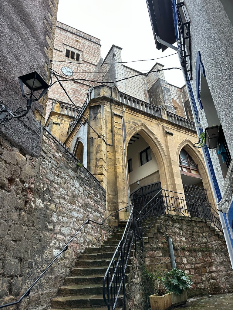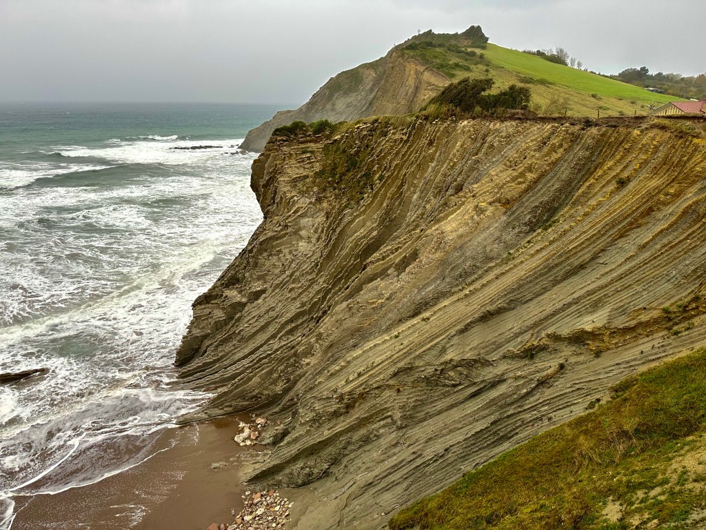 Arriving we headed for San Sebastian having only had a day there years ago. We pitched up in Zumaia where there’s a handy train, after we thought the torrential rain, thunder and lightning had stopped we headed out to explore the area, it’s rugged coastline features in Game of Thrones (not that we’ve ever watched it) and is UNESCO protected, the erosion on two planes of the rock are really unusual not that the pictures will tell you much as guess what, it tipped it down. Good to see though, the vastness of the Basque GeoPark coastline and the tiny San Telmo Ermita (a handy shelter)