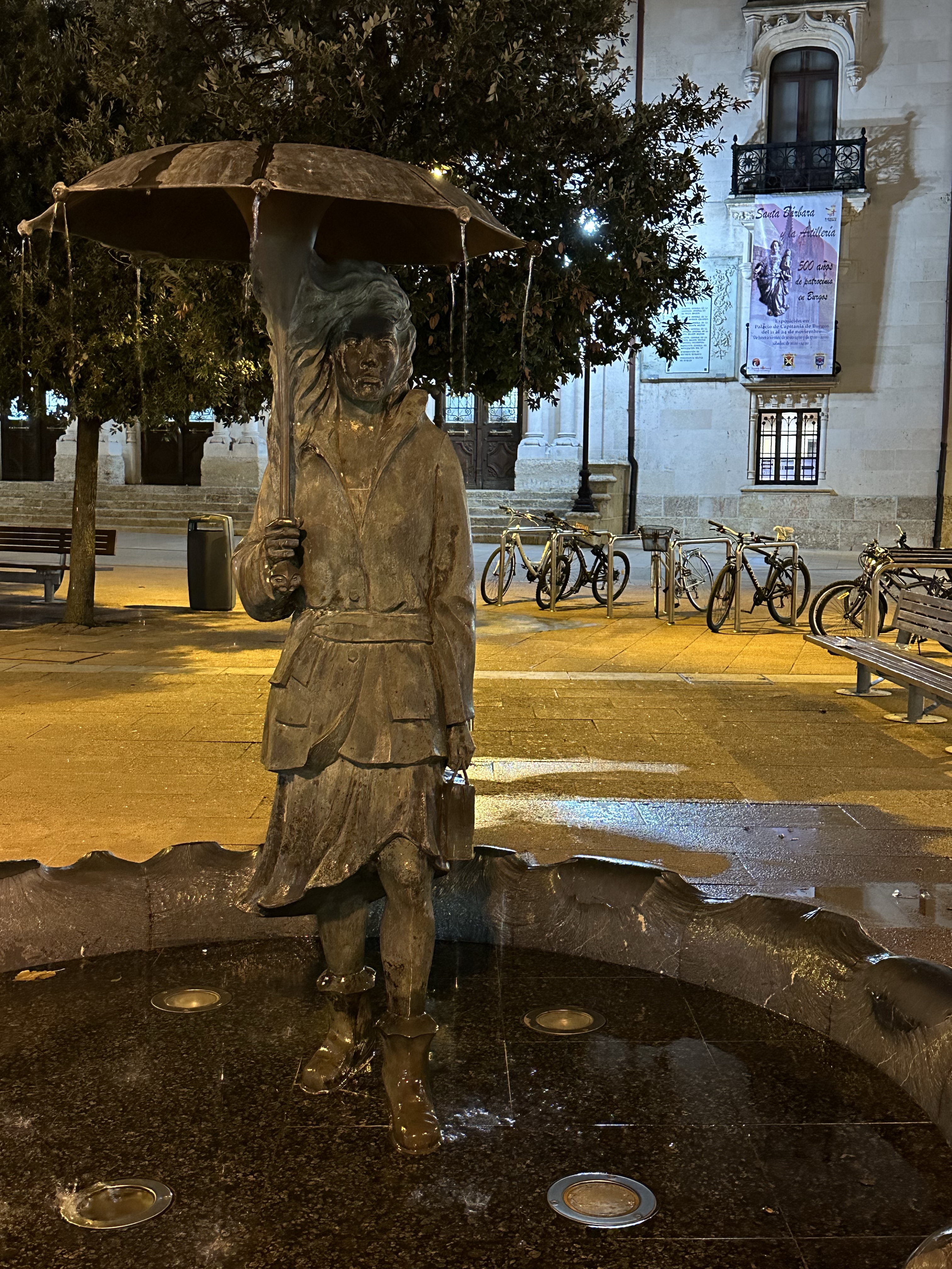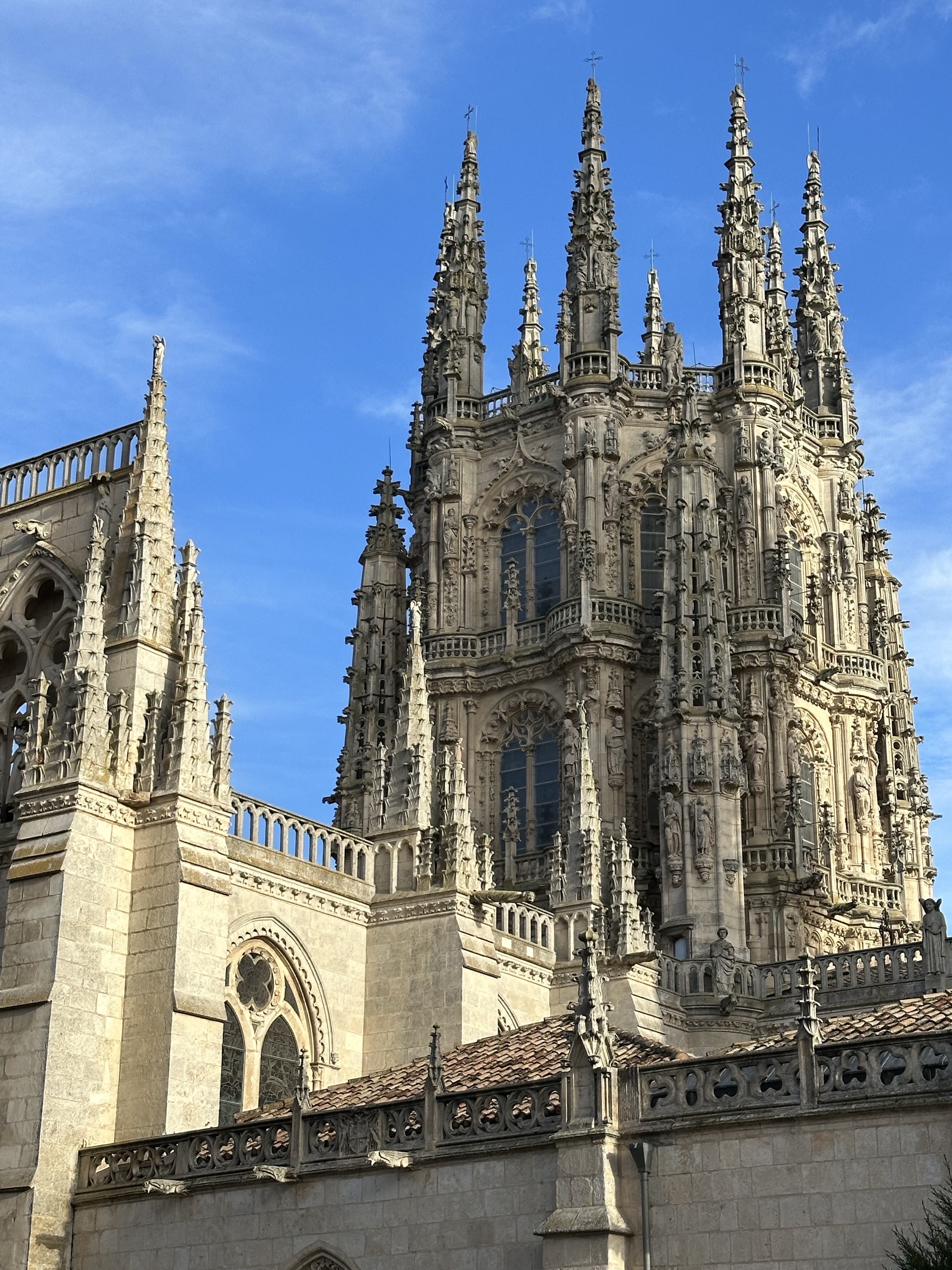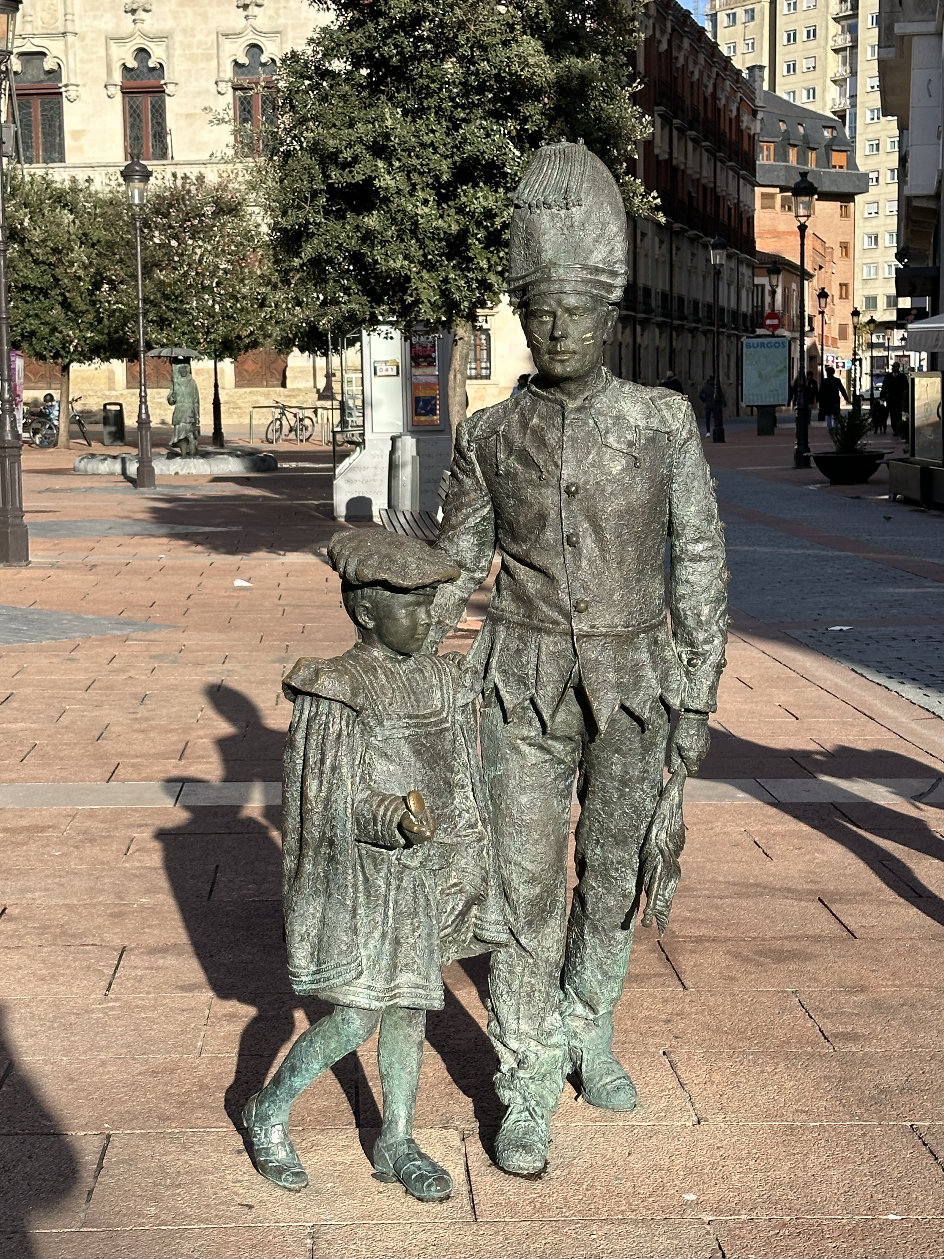 Next stop Burgos. A popular and deservedly so, stop on the Camino Santiago de Compostela route. Marked by its medieval architecture and its French Gothic Cathedral of St Mary it was also the birthplace of El Cid, he’s buried at the Cathedral. It’s a World Heritage Site, the Cathedral that is, and very deserving of it, Burgos is also a ‘City of Gastronomy’. As a city it is rich in churches and convents, has 12 medieval gates within the original city walls and lots of cast figurines proudly celebrating elements of the city’s culture. The mural ‘Gallic Monkey Bird’ too is a fabulous modern day mystical play on mythology, a commission to commemorate the Cathedrals 800 years.