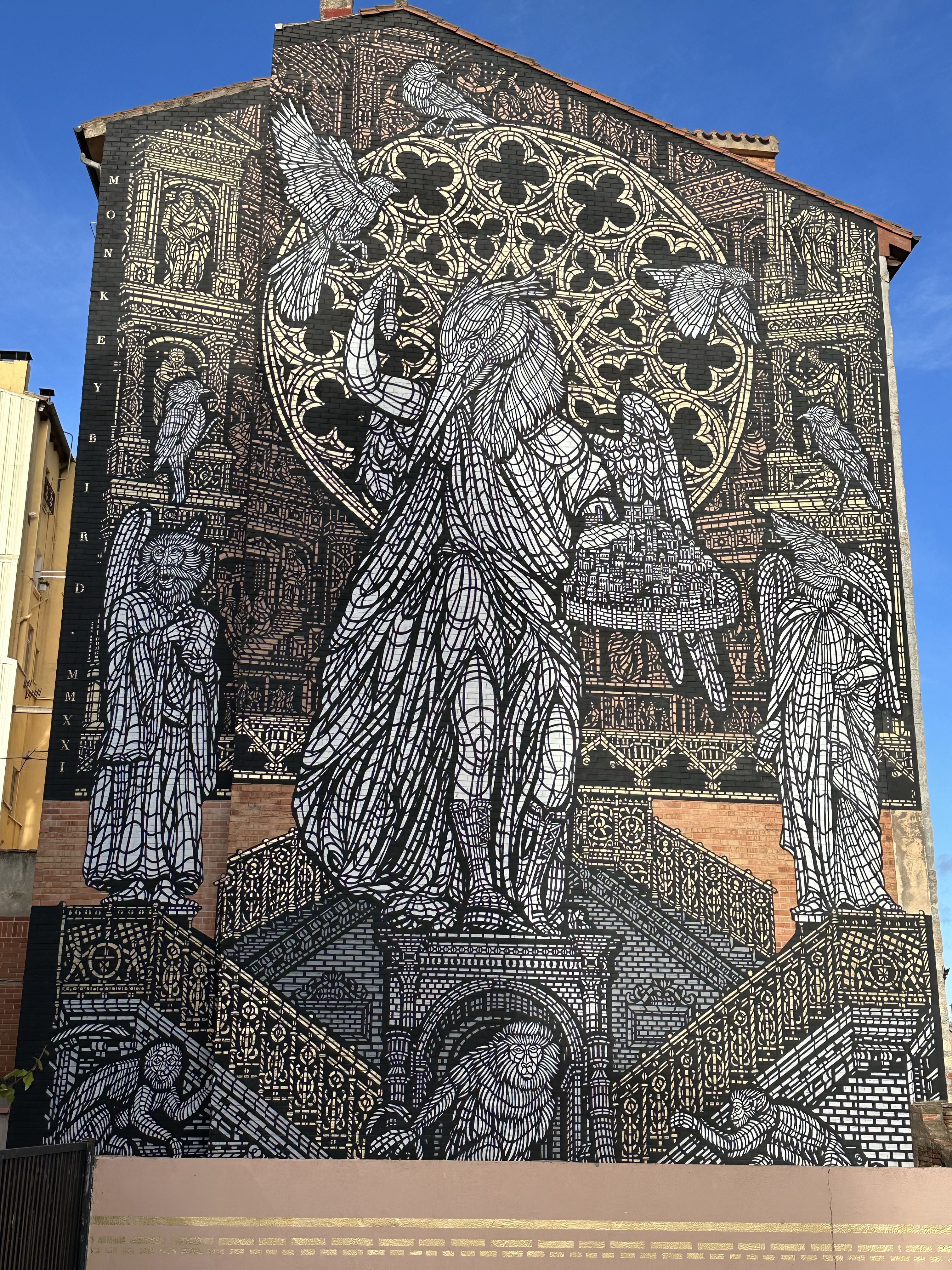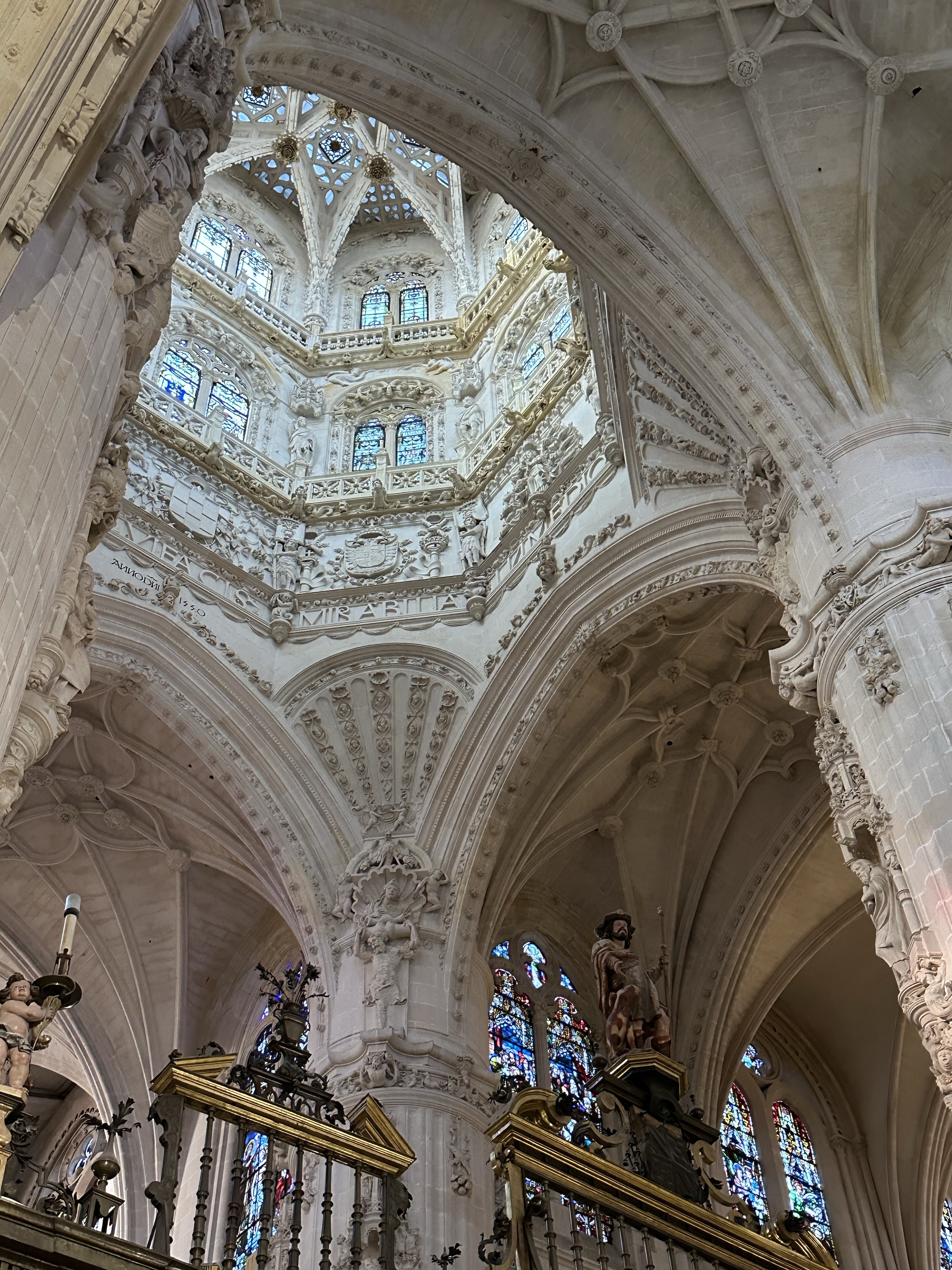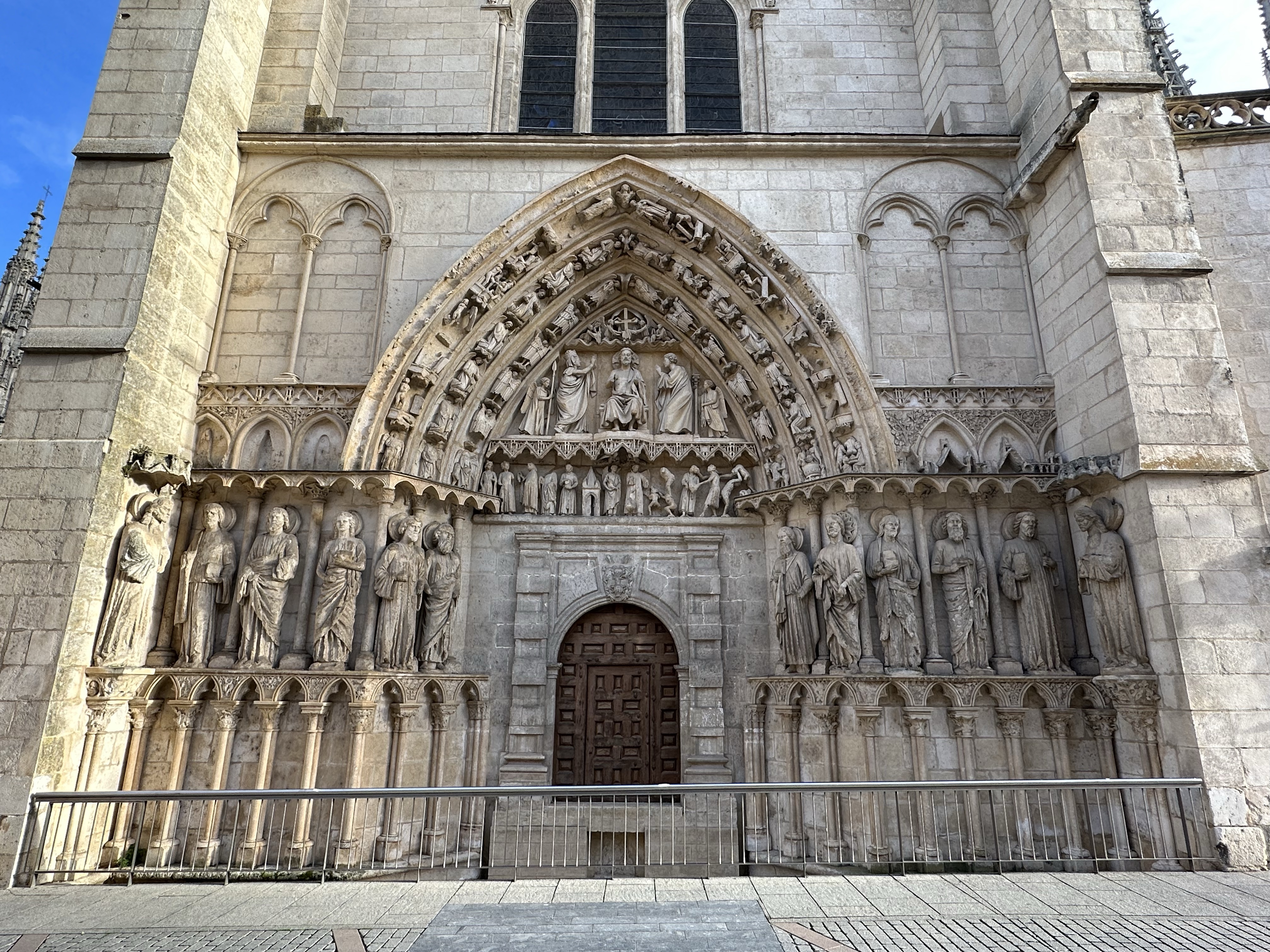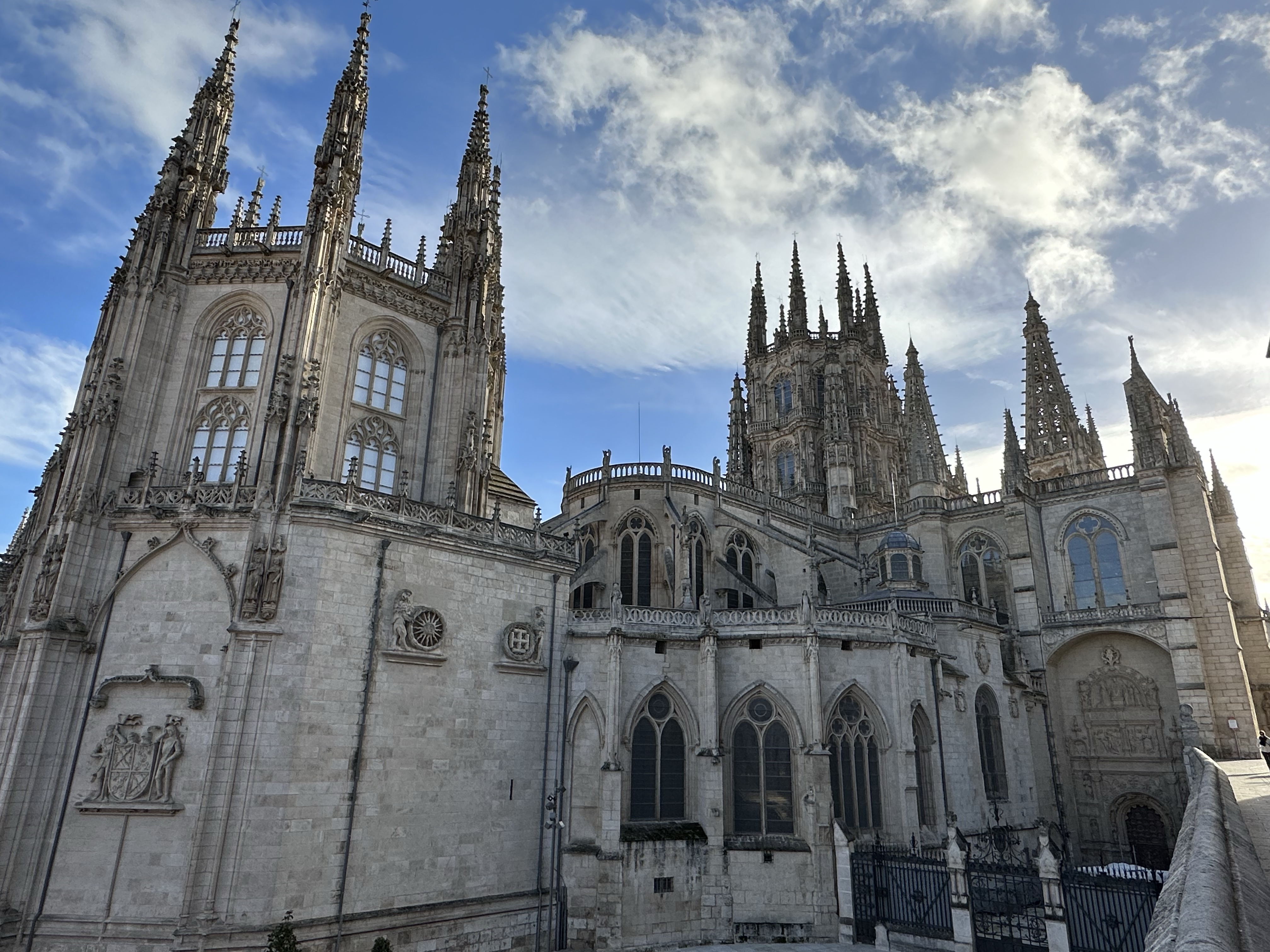Next stop Burgos. A popular and deservedly so, stop on the Camino Santiago de Compostela route. Marked by its medieval architecture and its French Gothic Cathedral of St Mary it was also the birthplace of El Cid, he’s buried at the Cathedral. It’s a World Heritage Site, the Cathedral that is, and very deserving of it, Burgos is also a ‘City of Gastronomy’. As a city it is rich in churches and convents, has 12 medieval gates within the original city walls and lots of cast figurines proudly celebrating elements of the city’s culture. The mural ‘Gallic Monkey Bird’ too is a fabulous modern day mystical play on mythology, a commission to commemorate the Cathedrals 800 years.