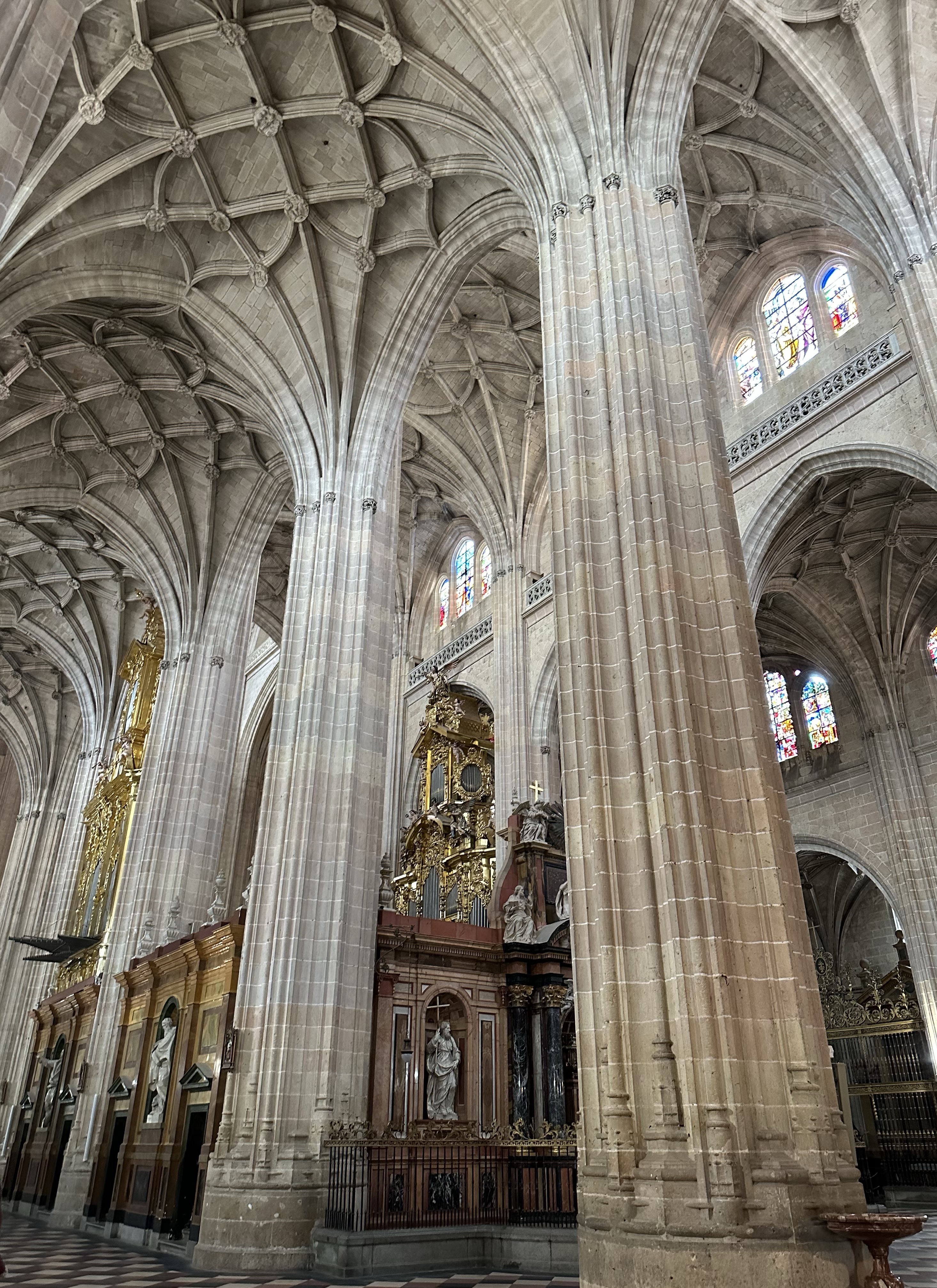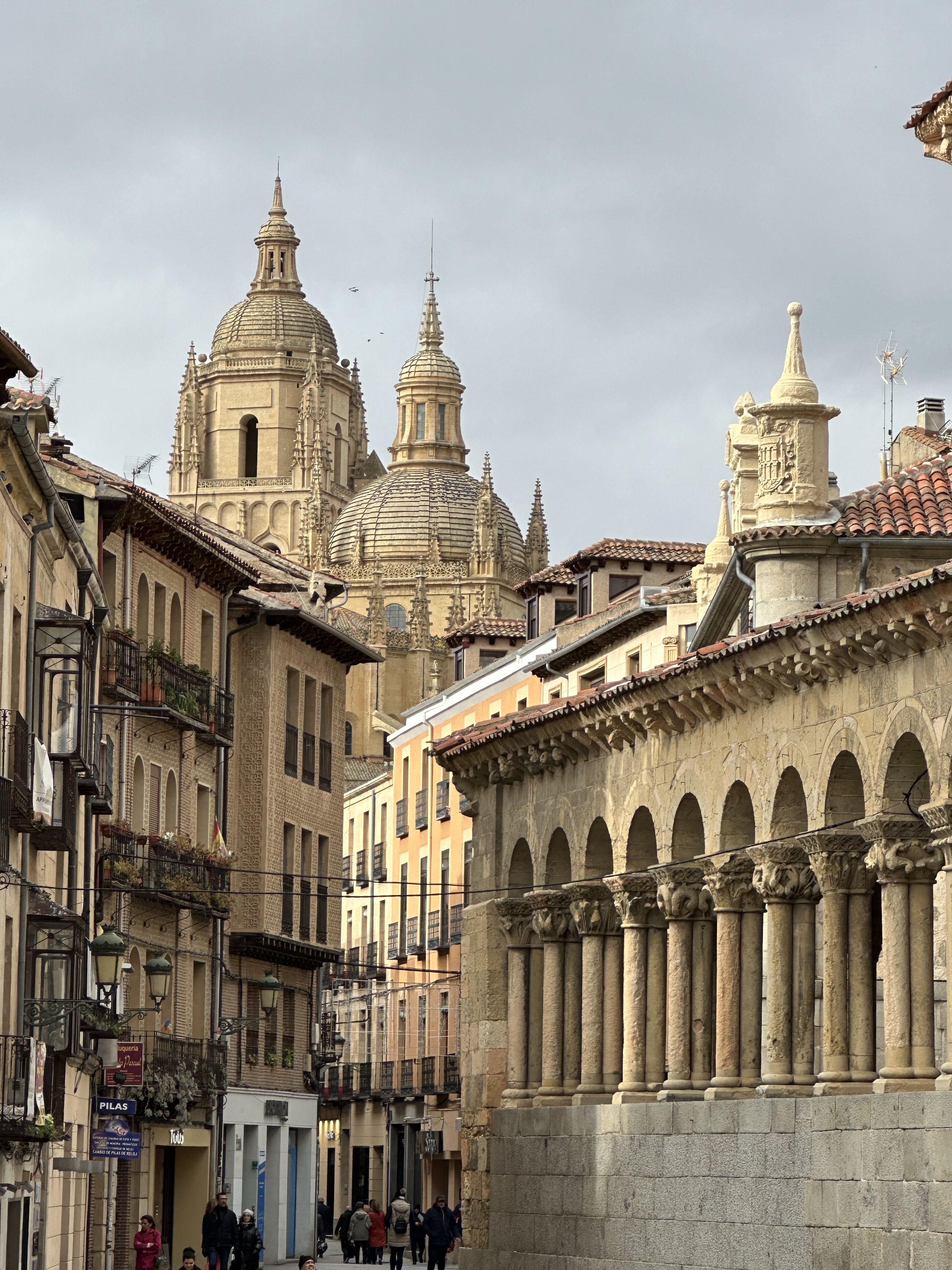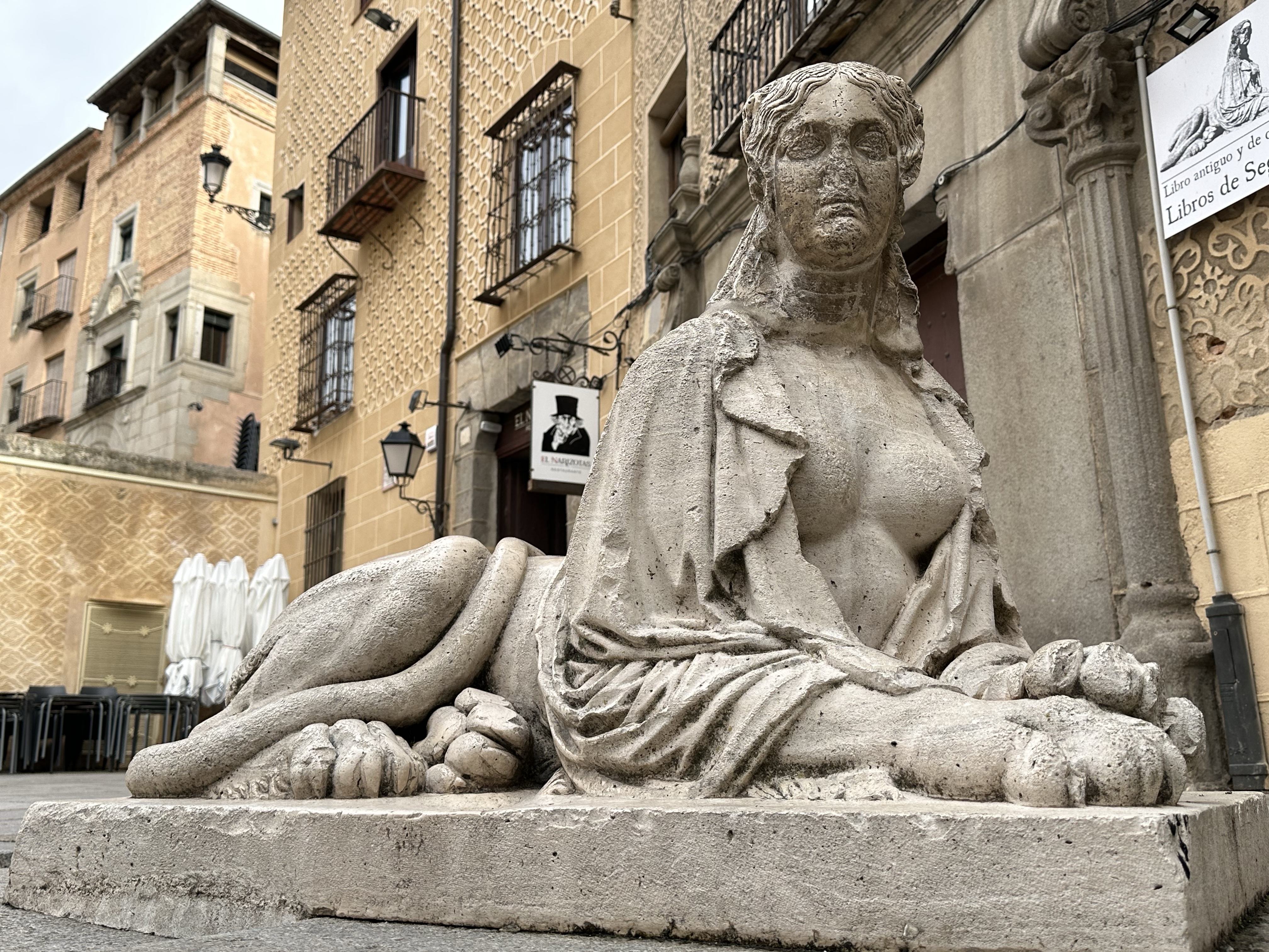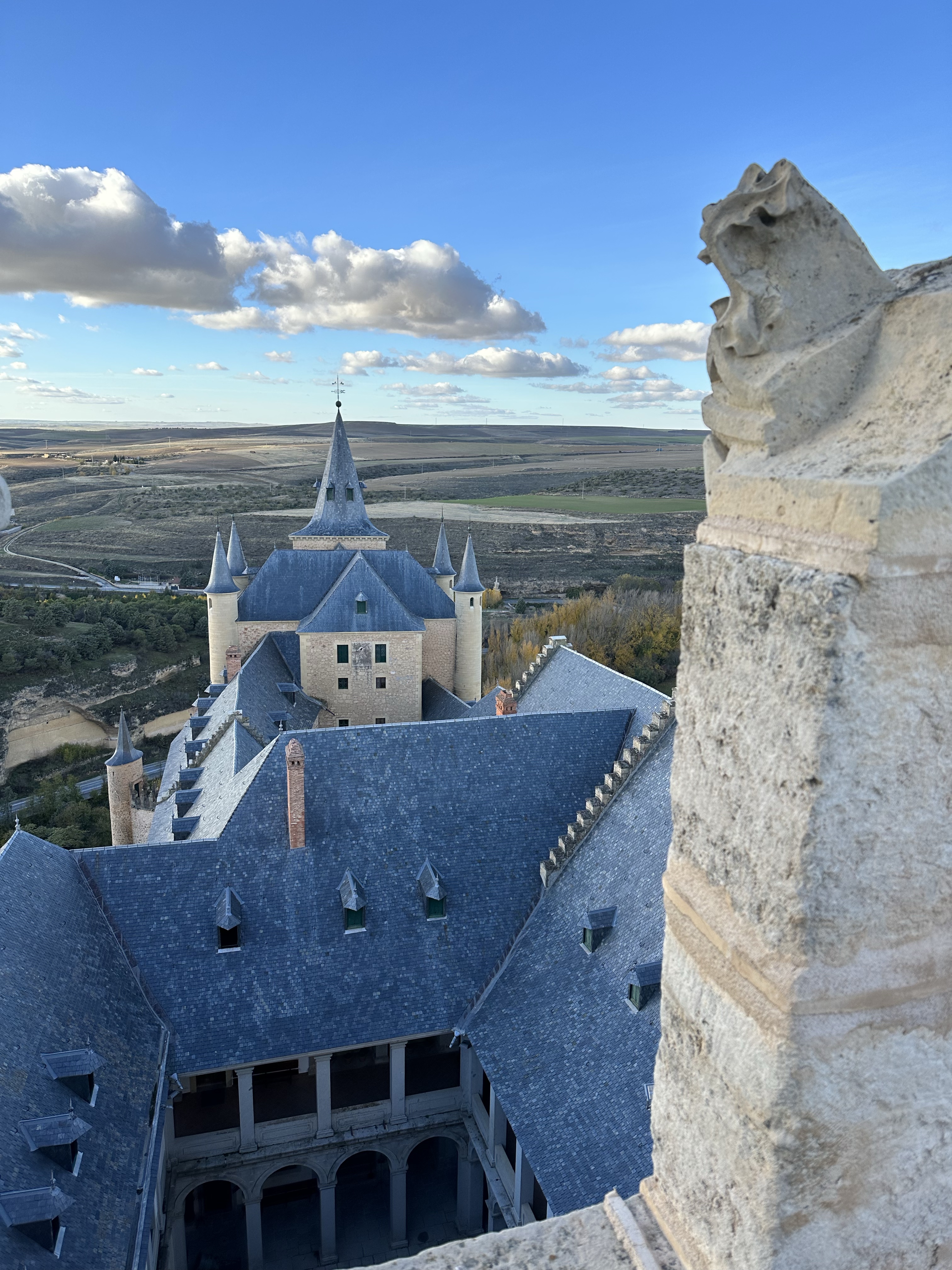 Segovia is a city we’d not had on our radar but what a place. South of Burgos its famous for three pretty spectacular elements; Its Roman Aqueduct, Its Cathedral and its Alcazar. Parking next to the still in operation Bullring, we set off to explore and it wasn’t long before we were alongside the Aqueduct as unusually, it stretches through the town rather than skirting it. Towards the centre it gets taller and taller, eventually at its maximum it is over 28m. It is 167 arches, was built in 1st Century AD and was in use until 1973, water flowing form the mountainsides into the city. It really is a sight to behold and remarkably, there’s no mortar used between the blocks of stone. From there we wandered the Old Town streets, coming across another unusual shop, selling ‘Ducks’, a mermaid sphynx and lots of lovely ornate touches.