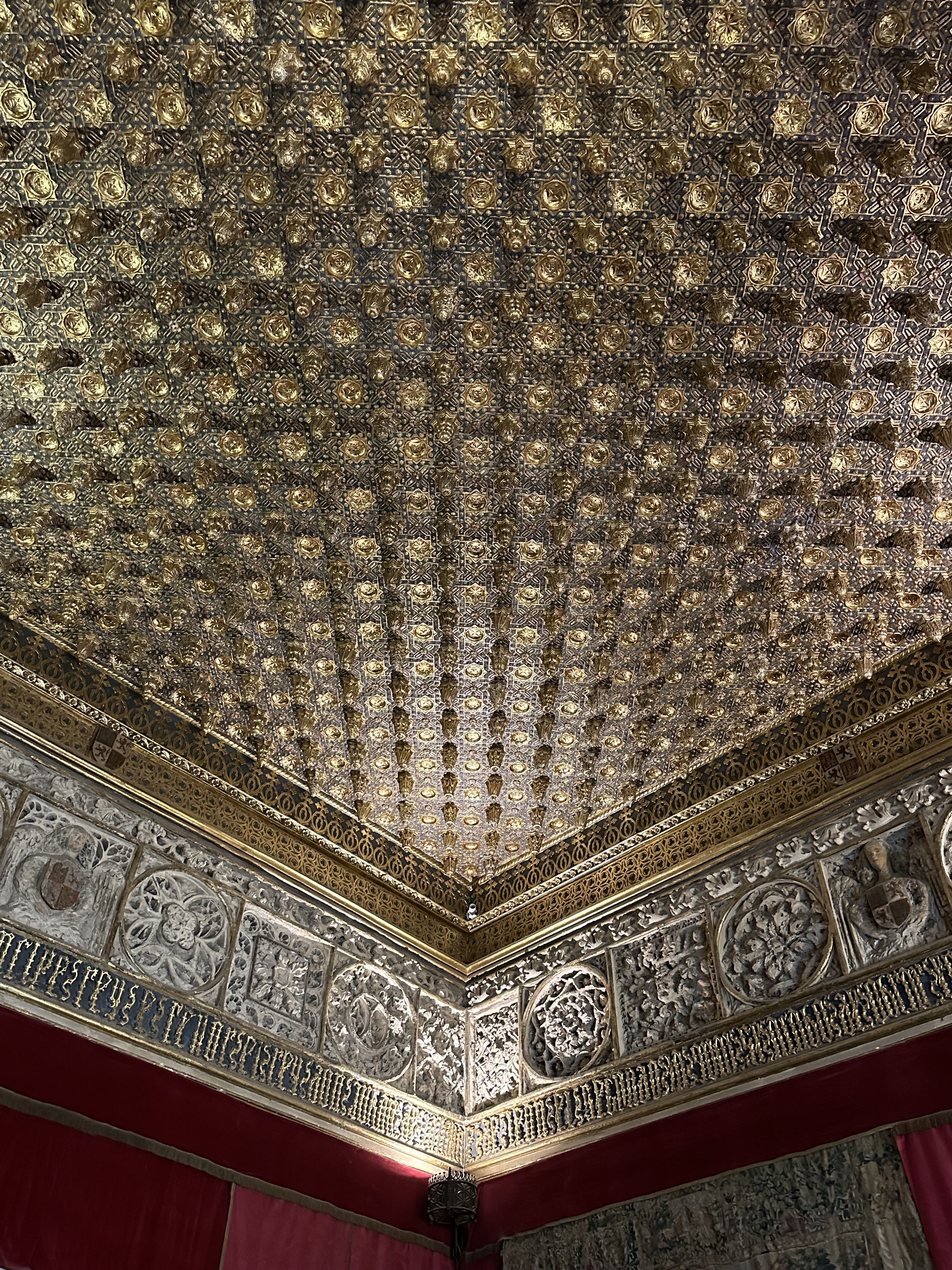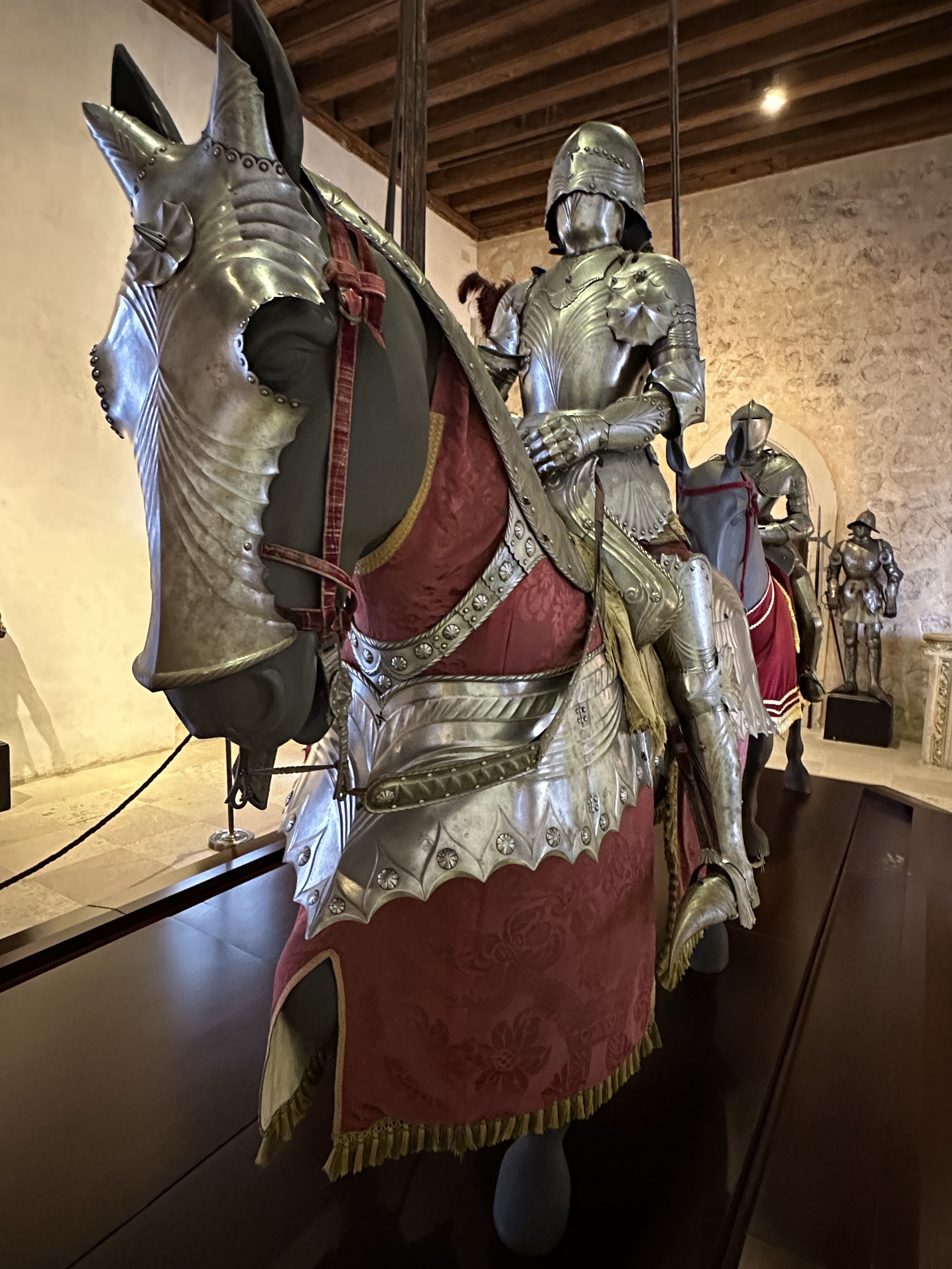 The Alcazar is purportedly an inspiration for Disney’s castles. There were some Austrian influences in its building and there is certainly some similarity. Built in the 1100’s with Roman foundations, the Witches Hat towers are gorgeous, piercing the blue sky. Internally the rooms are lovely, not in the league of the Alhambra with hardly any Moorish influence and less carving and tiling but The Kings Room, The Throne Room and The Pinecone Room were ornate, every pinecone being different, not bad at 392 of them. Climbing the 132 stairs took us to the tower with views of the surrounding countryside and back towards the mighty Cathedral. We were glad we didn’t need to get into costume for Mr Disney, the suits looked a bit tricky.