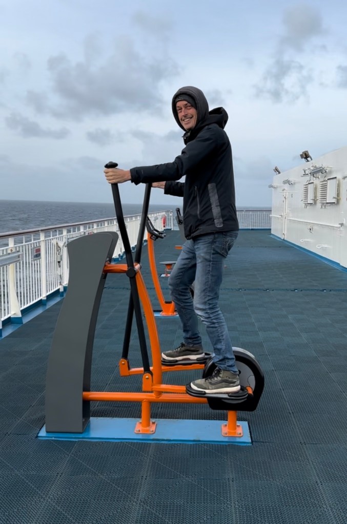The sailing to Bilbao was 36 hours so Jigsaw wiled away the hours penning her sequel play “Cat on a Long Thin Lead”. We’re not sure it’ll have the same box office takings as her first “Cat on a Hot Tin Roof” but we can hope. Nick continued to work on his photo’s for his website which may stand us more chance of an earning… I in the meantime Duolingo’d and watched TV 😉 We did some exercise out on the deck too.