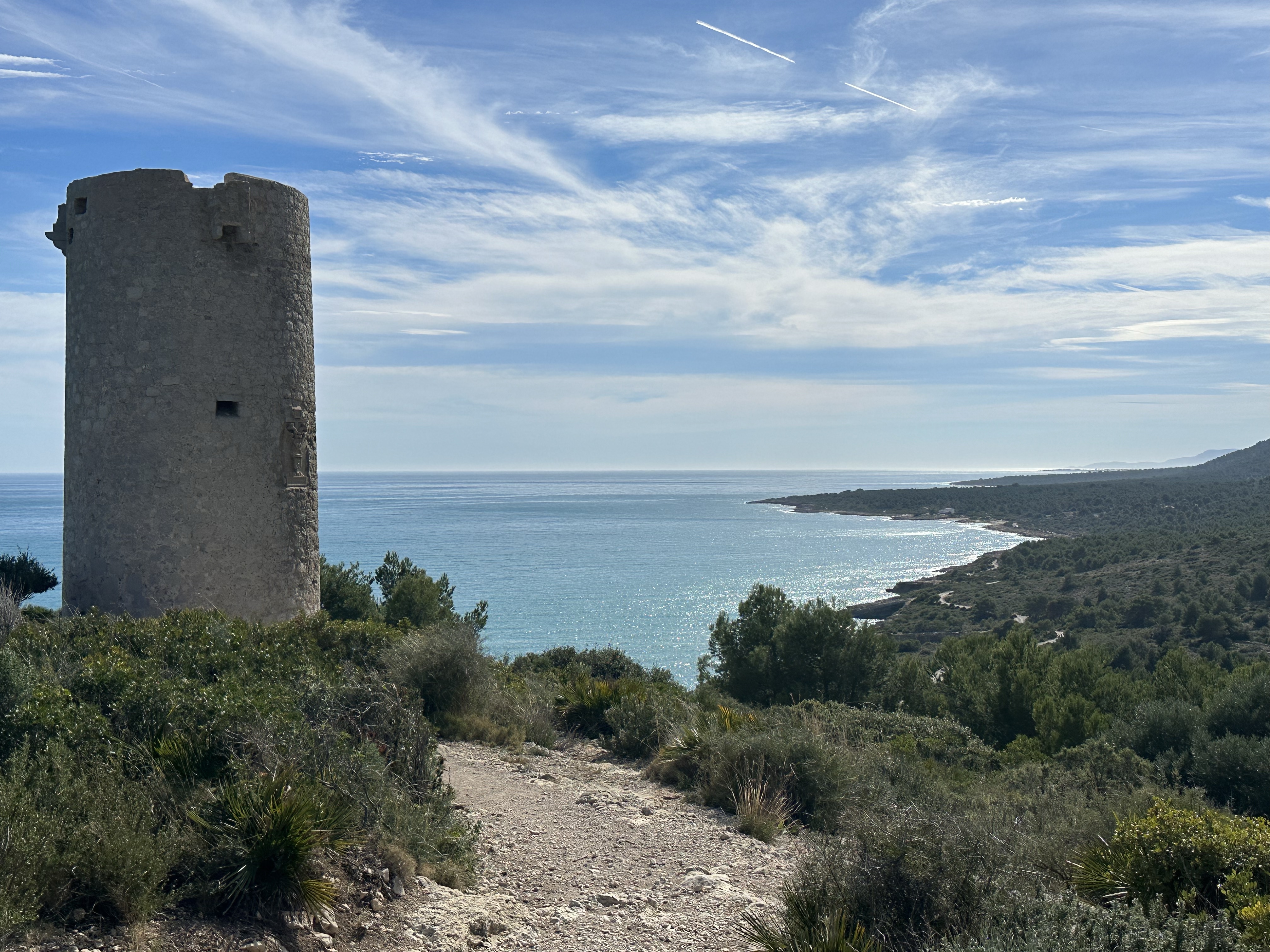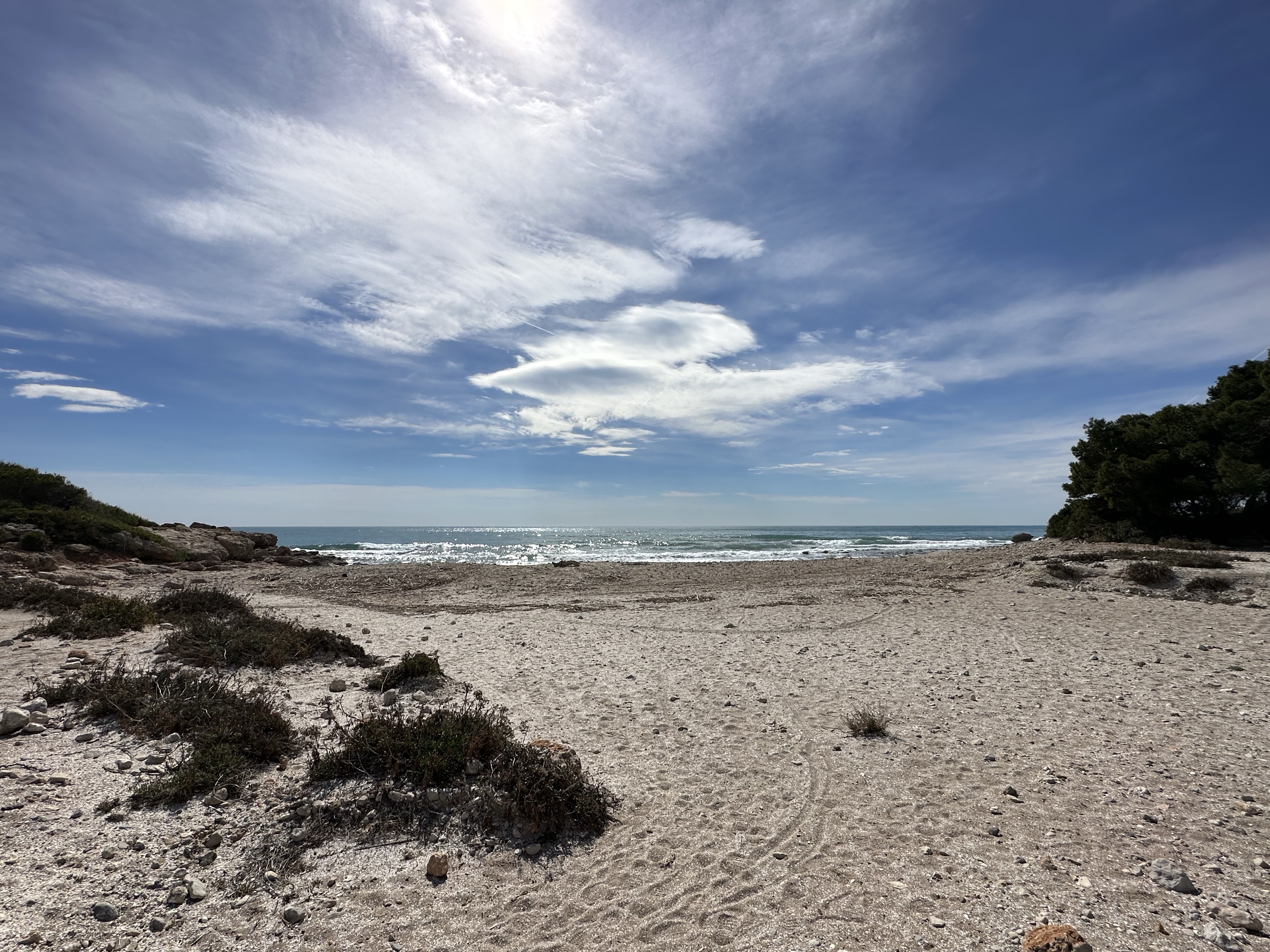 The South is a different proposition entirely. Most likely in part because it is a rocky environment so hasn’t really been built on, plus, it’s now protected, it makes for a fabulous ride. Parc Natural Sierra d’Irta follows the coastline, dipping in and out of sandy, isolated coves from pine forested tracks. Even though I quite like the idea of seeing the ‘Tall One’ in lycra, this wasn’t the terrain for those namby pamby road bike folks, so we were in our element. Nor did I fall off, he gave me a quick cycling proficiency test before we left 🙂