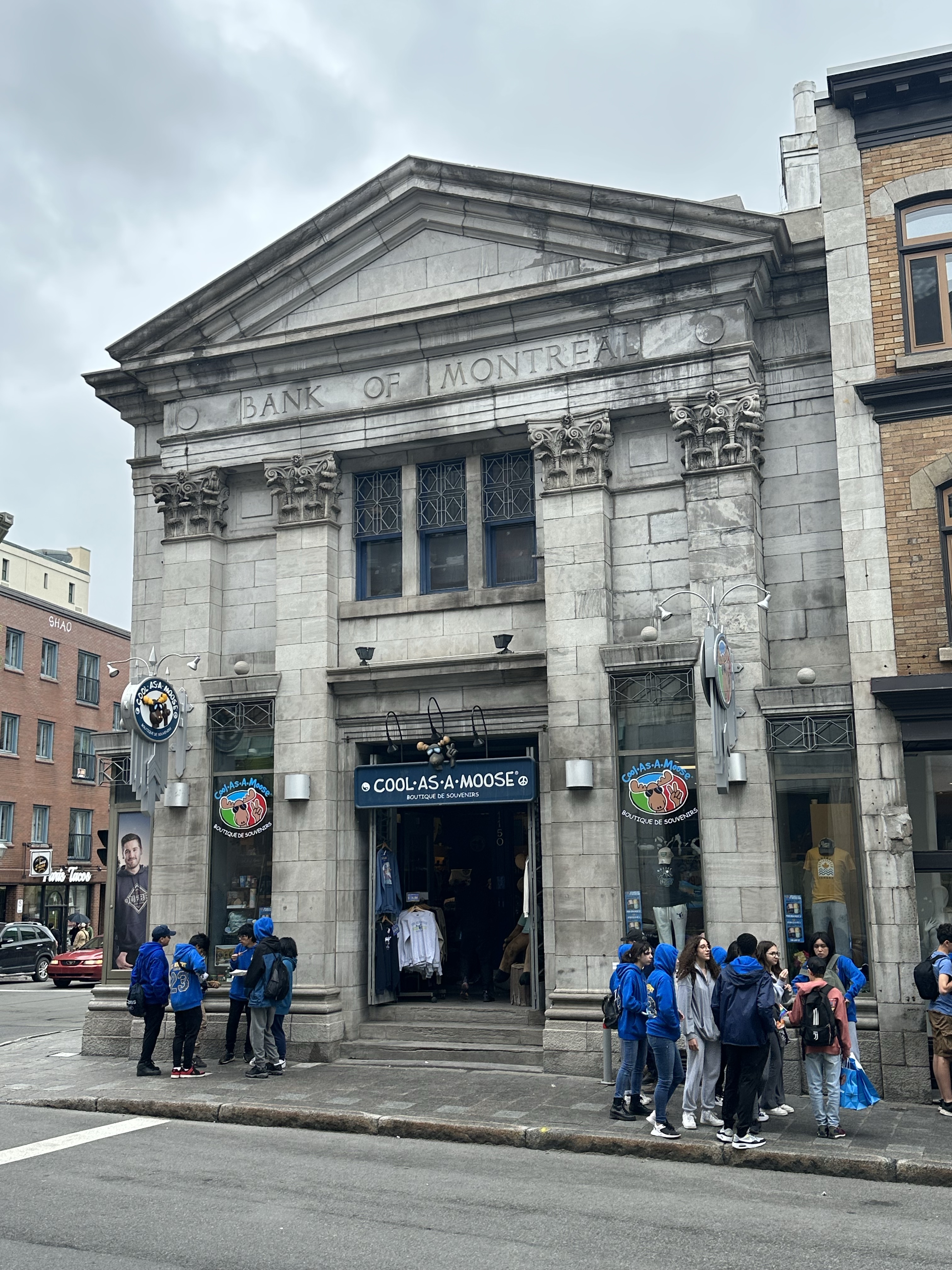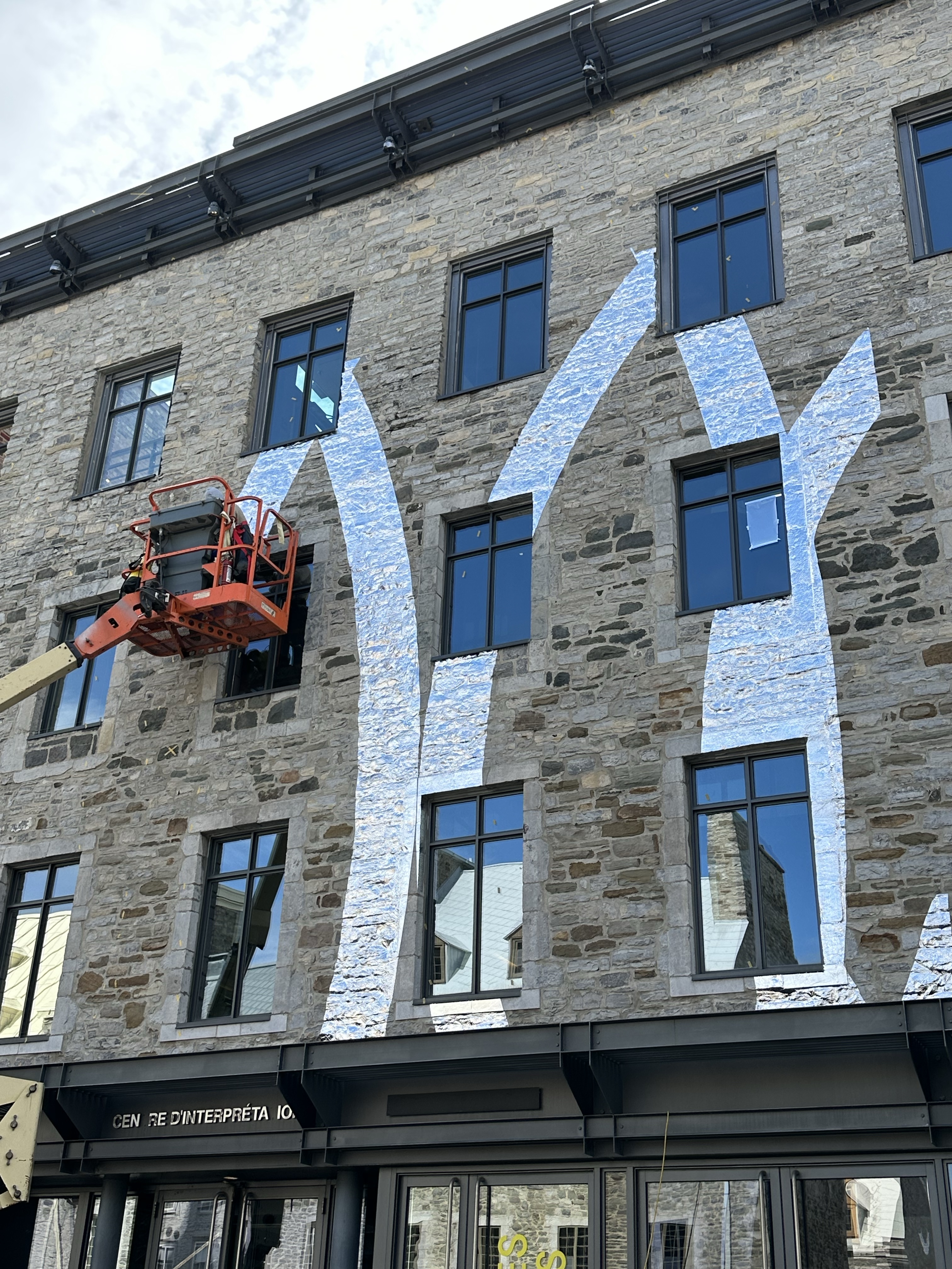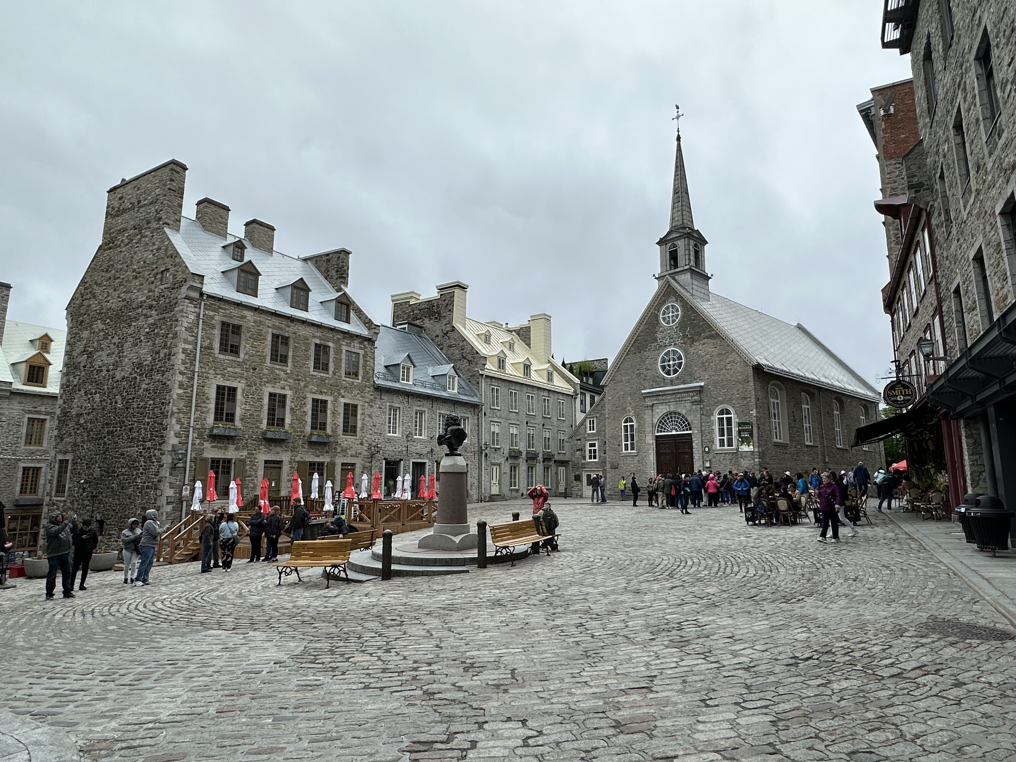 Immediately, as we’d seen already on our Québec journey, it’s very French, and why not?! The French fought hard and even tried to gain independence in 1970’s so Scotland isn’t the only one, nor the Catalan’s and Basque’s regions in Spain. From the port we headed initially for the lower part of the Old Town in what was to become a day of steps. Place Royale was full of non-locals, so the square was immaculate. To be honest, all of the Old Town was, and pretty gentrified. Buildings, reminiscent of French style with their sloping roofs were so smart they looked new. Québec City mural had been painted on the side of one and for some reason, a fella was sticking tin foil to another. Such a variety of styles already and real mix of new and old, especially at the Hotel de Ville. Being the area that it was, it was abound with cafes and ‘gift shops’ (to use the term lightly) The ‘Bank of Montreal’ must have had some issues as it’s now “Cool as a Moose” 😊