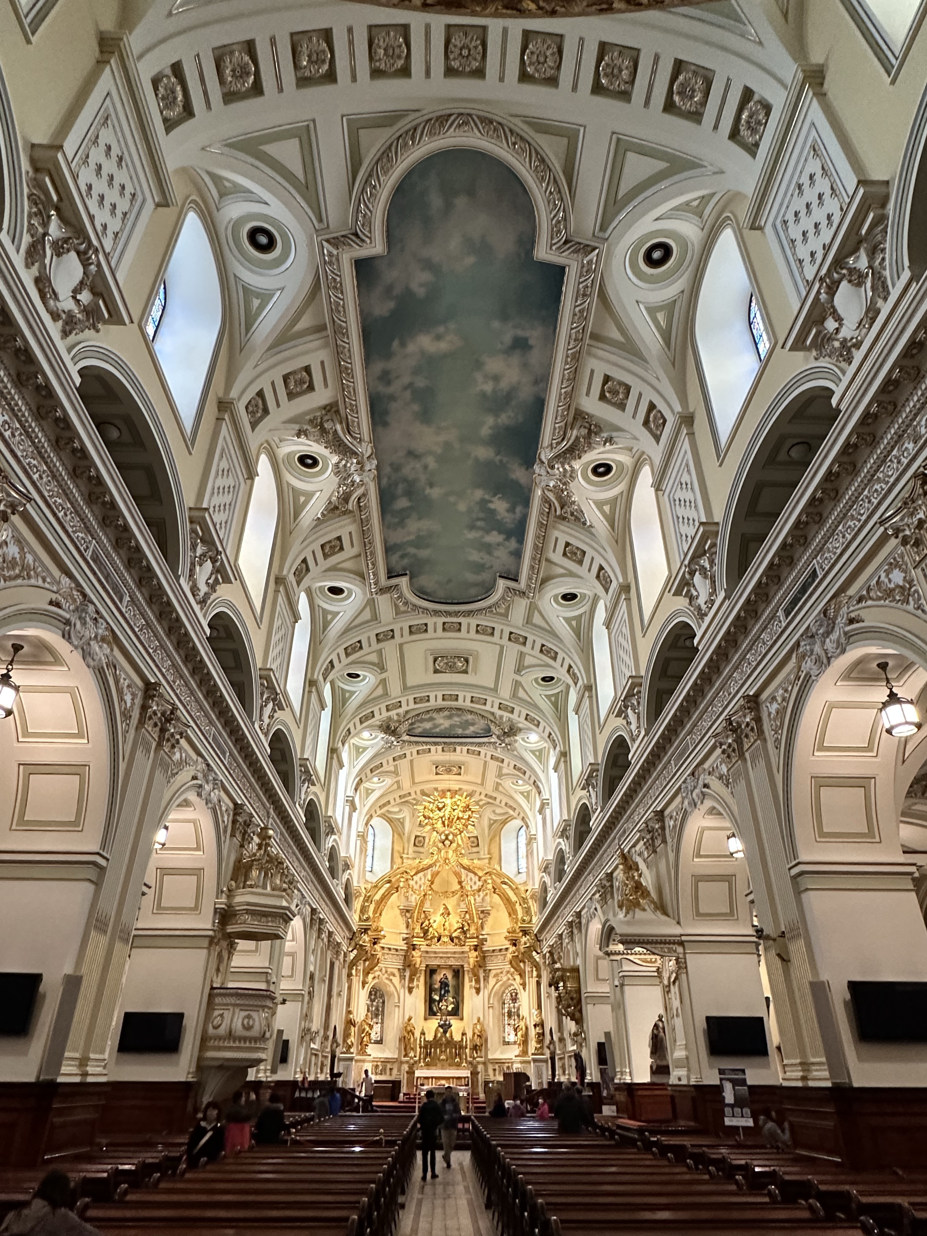 We meandered our way to Notre Dame Basilica de Québec, dating back to 1647, an opulent building that has been rebuilt a few times but is home to a spectacular 3D fixture at the altar. Very French in feel with muted colour paintings and wall art to offset the gold.