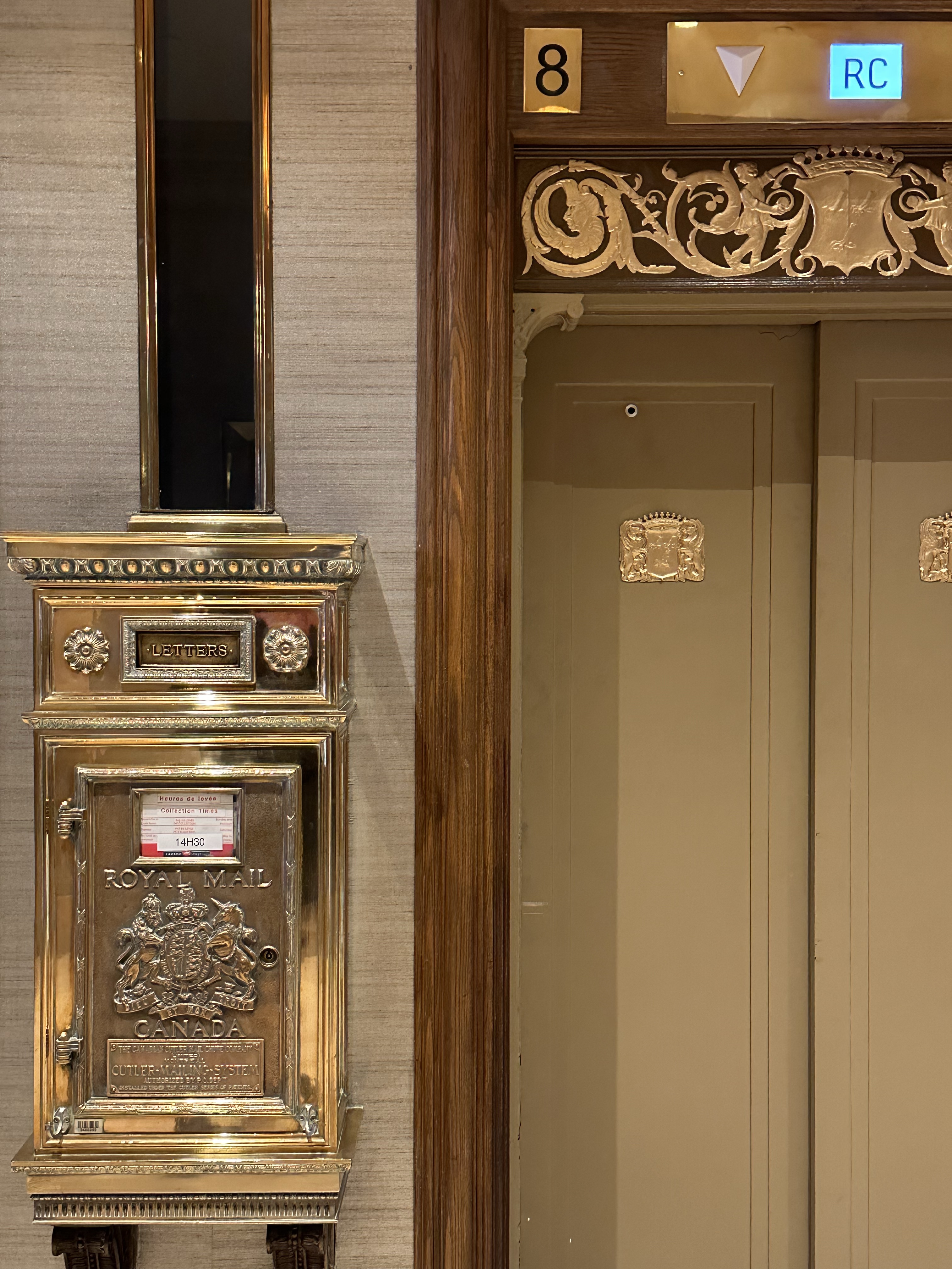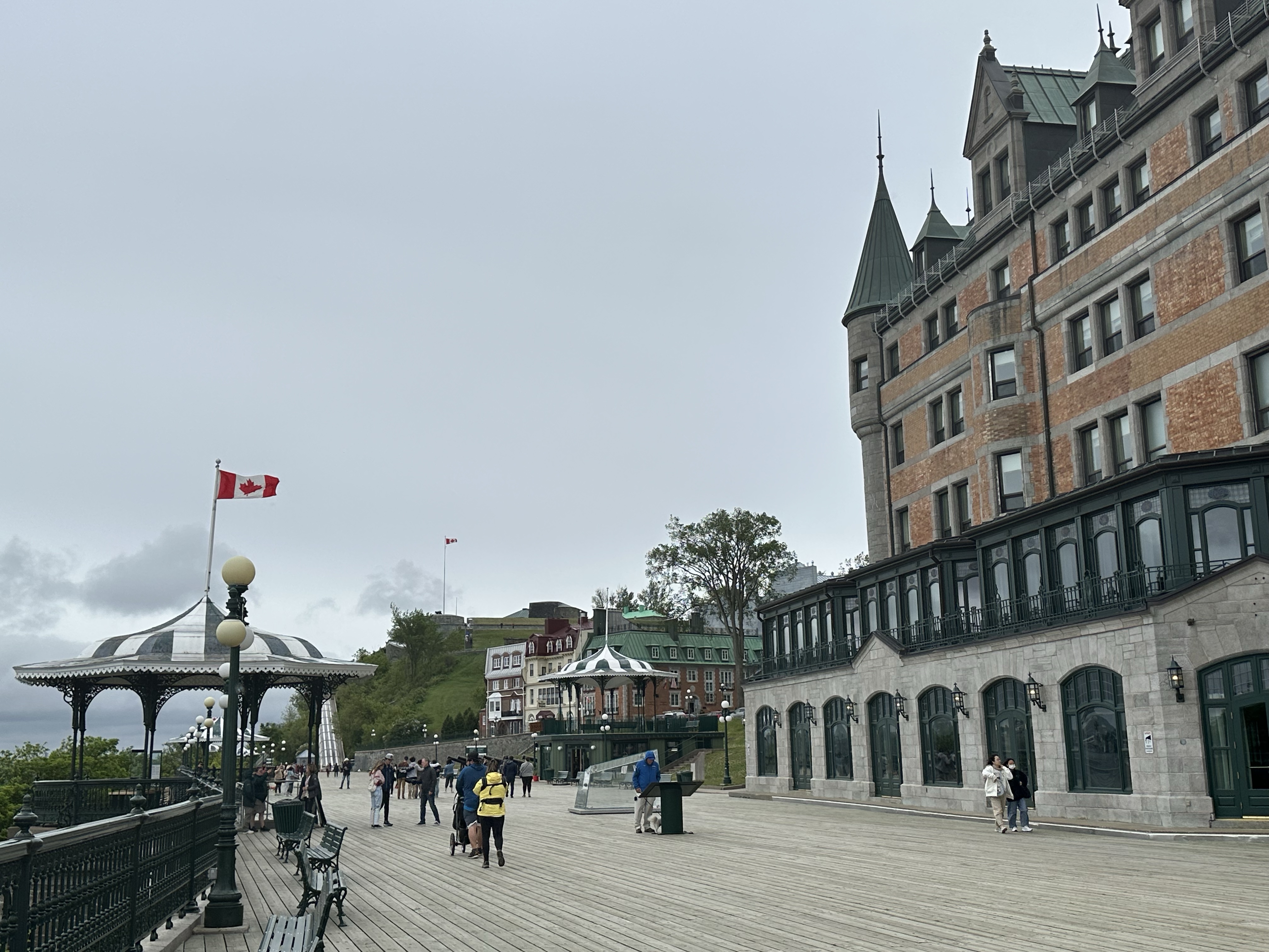 Having walked our socks off the first day we decided to do it again… however we headed further out of the Old Town for a look around. Enthusiastically (not!) climbing the multiple sets of steps up from the port again, we went into Le Chateau Frontenac. It’s the iconic, overwhelmingly dominant building of the Québec City skyline. To be fair, it is the archetypal, grand, turn of the century hotel that suits tour groups and Starbucks lovers (the only one in town thankfully!) We saw plenty of folks with the paper cups, why not try something different, we thinks! When in Rome etc, oops Québec…😊 Anyhow, some quaint Royal Mail post boxes, an ostentatious bar and designer shops, what more could you need? It was the place Roosevelt and Churchill planned war tactics though, not sure if that was in the bar or not! The first UN agency was also established there in 1945, though knowing the UN, they probably couldn’t decide which room to use.