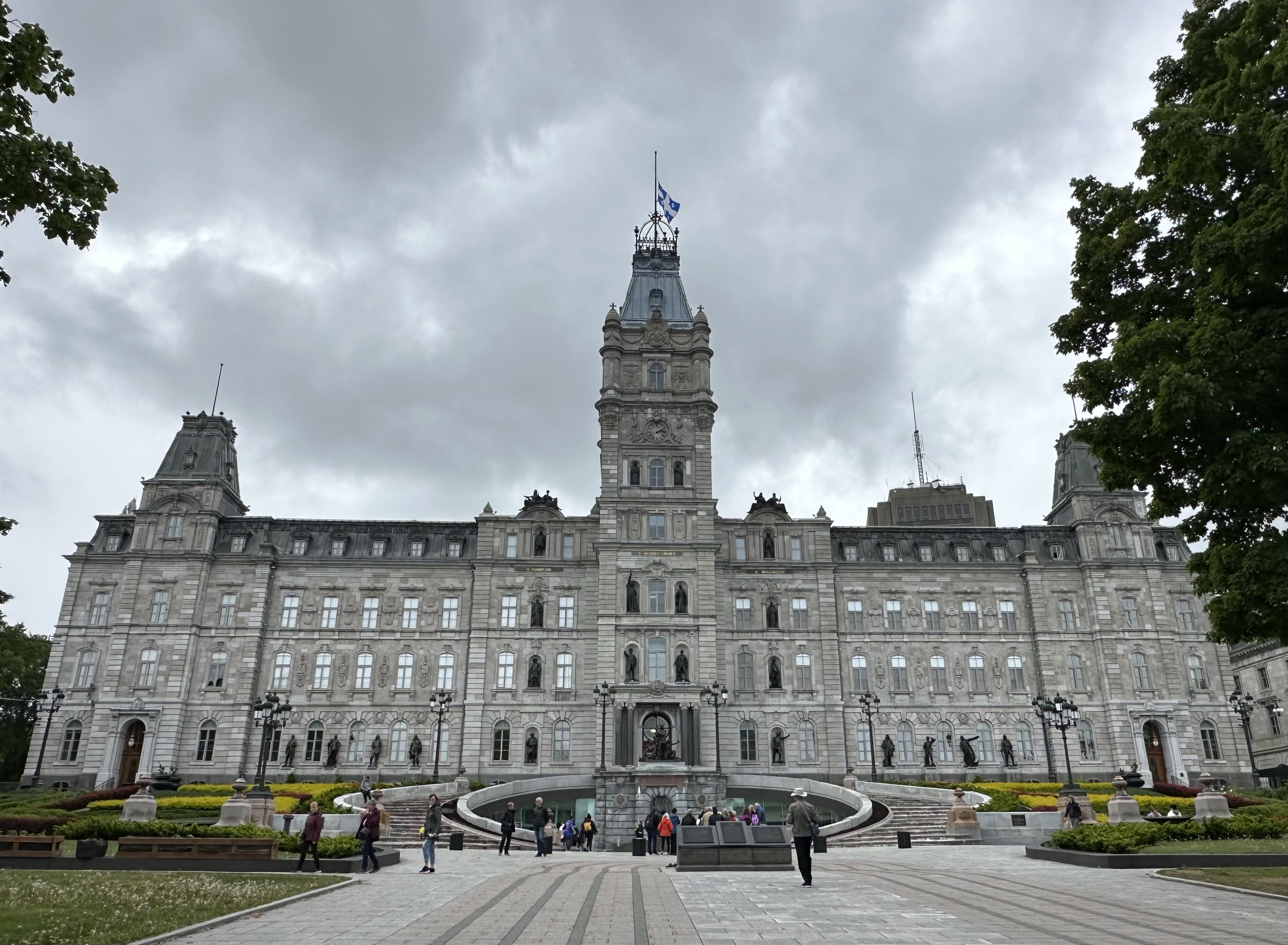 I mentioned steps earlier, there’s the horizontal ones (paces) and the vertical ones otherwise known as stairs…. The Governors Promenade has a lot of stairs/steps… 310 in fact. Commemoratively built in 1958 to reflect 350 years founding, they join the Dufferin Terrace to the Plains of Abraham and yes, we walked them, up. I couldn’t help notice that the runners were tending to be heading the opposite direction, not that I’m one to brag about fitness! Anyhow, after a rest at the top and a catch of the view as well as breath, we wandered back through the plains where they were setting up for an almighty music festival, with a line up to challenge Glastonbury, to the Québec Parliament Building. What a building! Built in the style of The Louvre it’s home to the Québec National Assembly (and I don’t mean a room of school kids sitting crossed legged before the headteacher) Completed in 1886, just outside the Old Walls it is spectacular, it’s frontage adorned with 26 statues of significant people through the ages and it’s good to see First Nation recognised here.