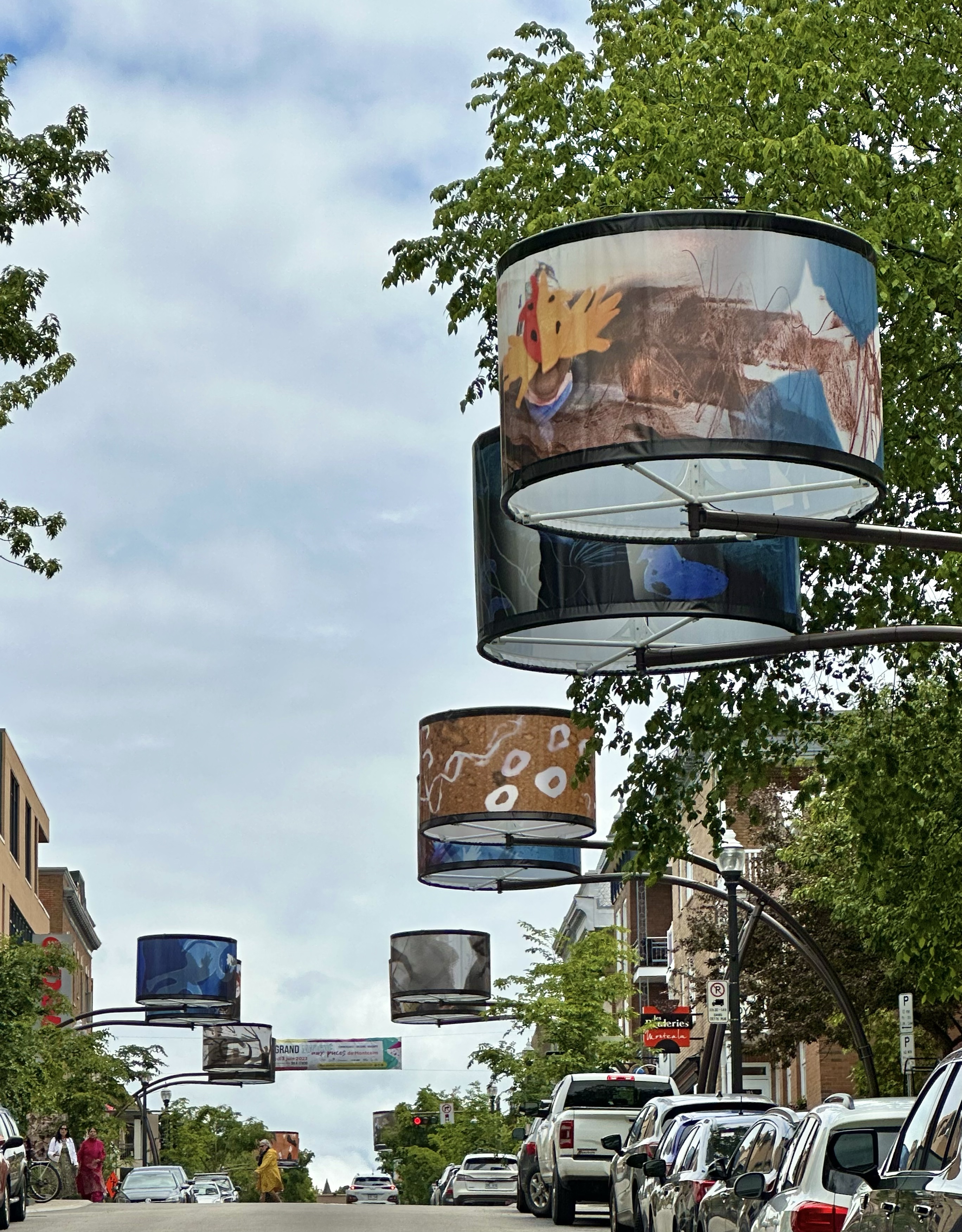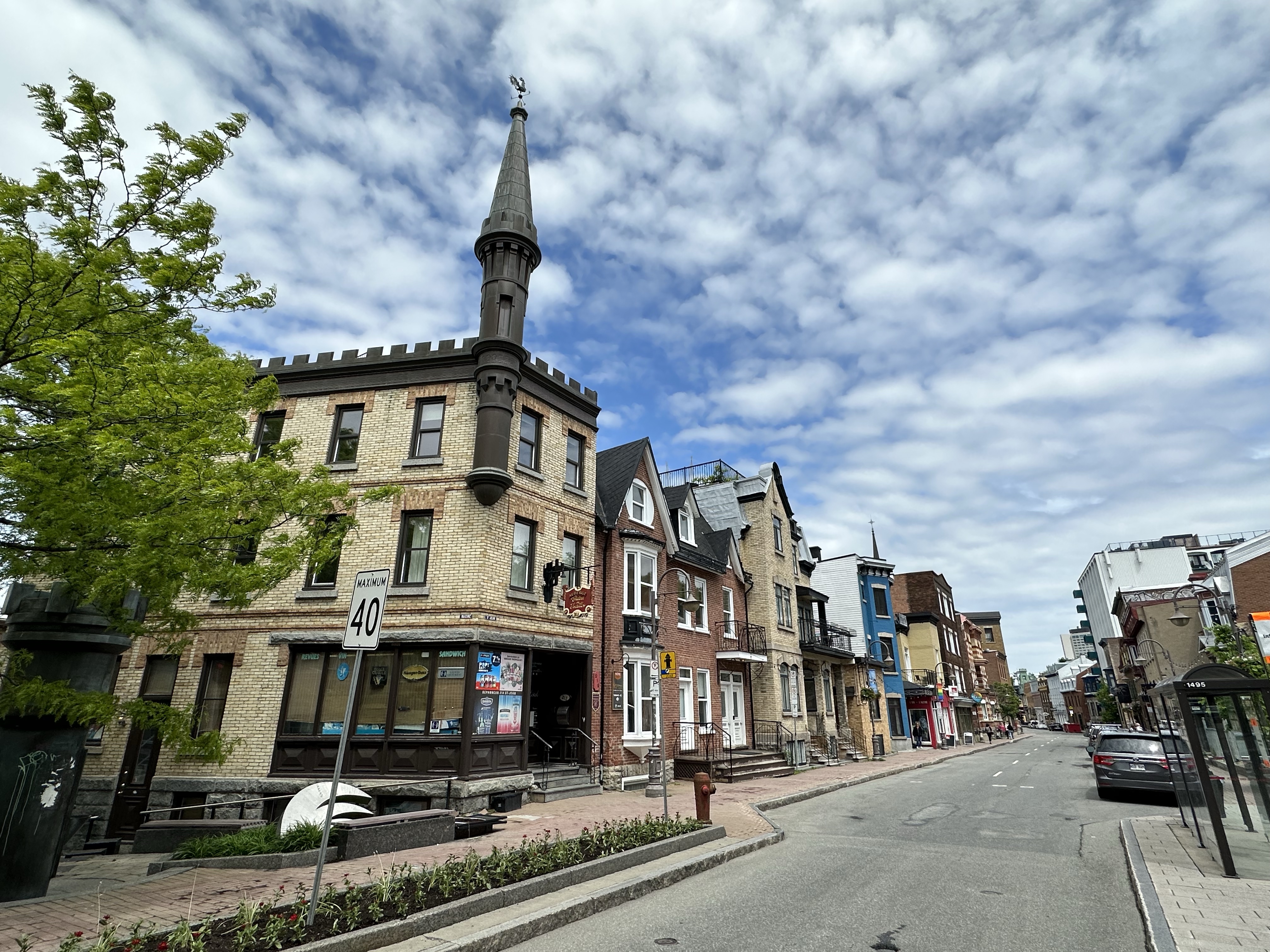 Out in the suburbs we headed to the ‘arts district’ of Montcalm. On the walk we came across a great variety of architecture, everything was different and the designs, really interesting. Cartier Street is it’s hub, an eclectic feel and no doubt a buzz in the evening, when their 34 giant hanging lightshades must cast a lovely hue over the street scene. Walking through Fauberg (we learned Fauberg means a poorer district outside the walls of a defended city, makes sense now with Fauberg Marigney in N’orlins) it actually felt quite San Francisco’esq as many of the roads off the main, were steep down to the water, with flat streets crossing. A surprise find was a church converted to a modern library, Biblioteque Clair-Martin (famous Canadian writer) and a gold Jesus to rival Rio’s!